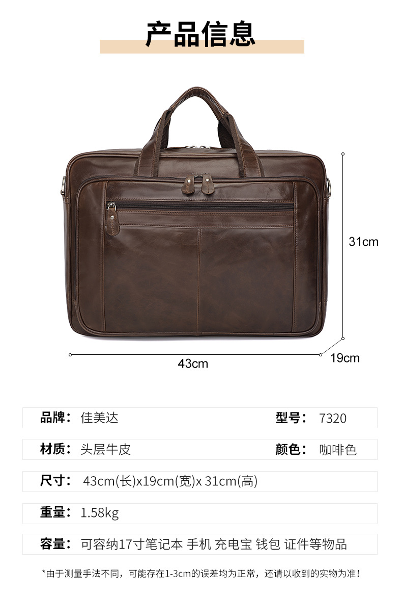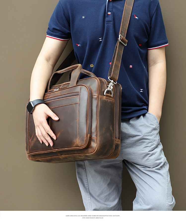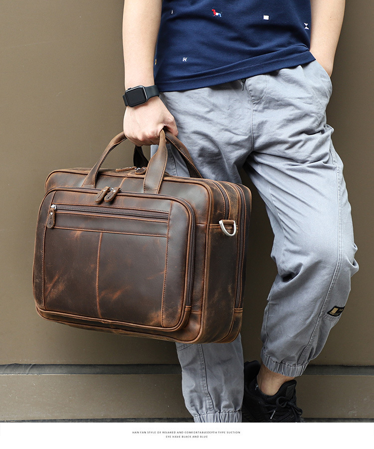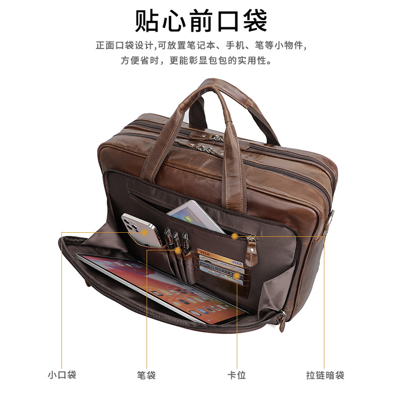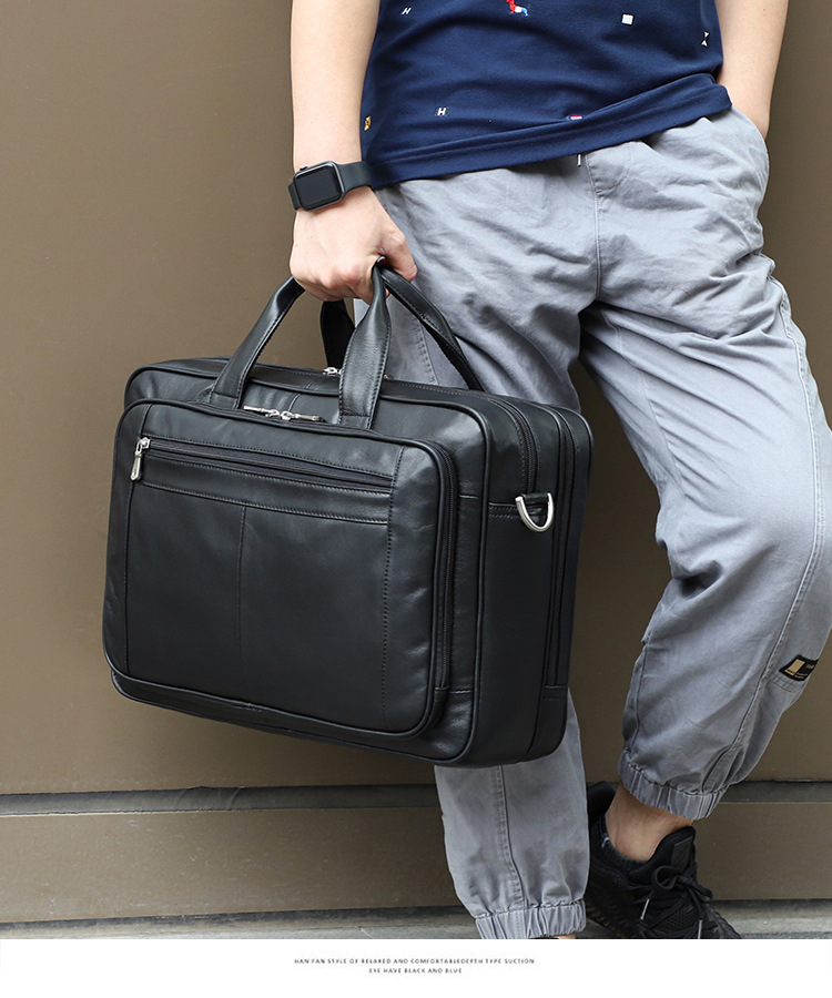 Chiếc cặp da thật dành cho nam, lấy cảm hứng từ phong cách cổ điển châu Âu. Sản phẩm có kiểu dáng công sở, đi cùng thời gian, phù hợp cho công việc hằng ngày. Bên trong rộng rãi, được thiết kế ngăn nắp riêng biệt để đựp vừa máy tính xách tay 17 inch cùng các tài liệu, phụ kiện cá nhân. Bạn có thể xách tay bằng qu cầm chắc chắn hoặc sử dụng như một chiếc túi đeo chéo tiện lợi. | Tên sản phẩm: Túi Xách Nam Chất Liệu Da Bò Túi Đựng Máy Tính Phong Cách Âu Mỹ - Túi Xách Ví Nam | Mã sản phẩm: A6121 - Giá: 3.560.000đ | Mã nhà sản xuất: SHDER-G06Hình ảnh sản phẩm