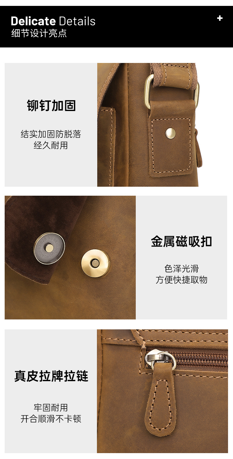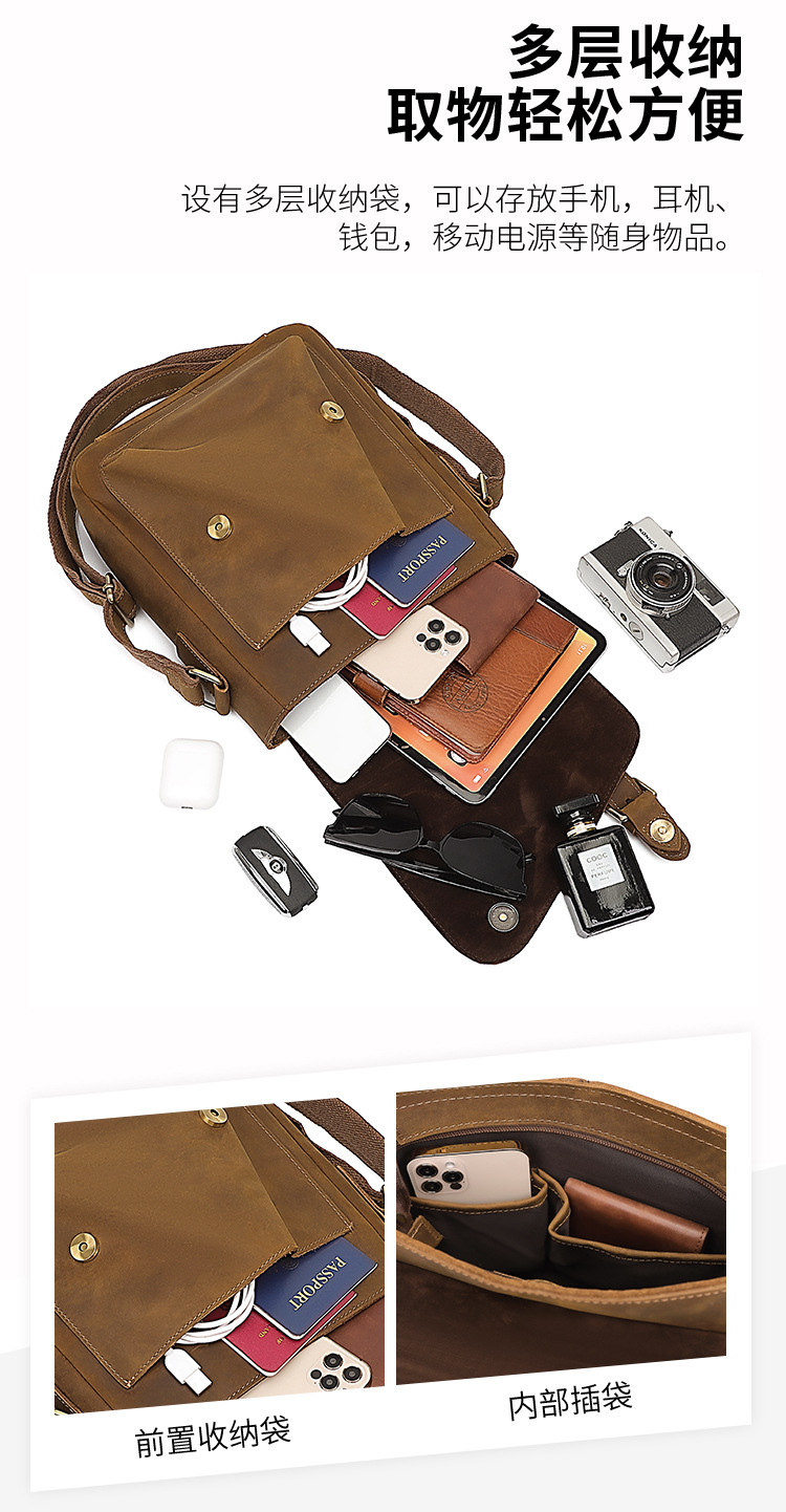 Chiếc túi đeo chéo này dành cho nam giới, được làm từ chất liệu da bò thật tự nhiên, có vân mềm mại và độ bền cao. Kiểu dáng hiện đại theo xu hướng mới, có ngăn chính rộng rãi cùng ngăn phụ tiện lợi phía trước. Dây đeo có thể điều chỉnh linh hoạt, giúp mang thoải mái khi di chuyển. Sản phẩm phù hợp để đựy điện thoại, ví, chìa khóa và các vật dụng cá nhân khi đi làm, đi chơi hay du lịch. | Tên sản phẩm: Túi Đeo Vai Nam Chất Liệu Da Bò Phong Cách Âu Mỹ - Túi Xách Ví Nam | Mã sản phẩm: A6142 - Giá: 2.010.000đ | Mã nhà sản xuất: SHDER-G05Hình ảnh sản phẩm