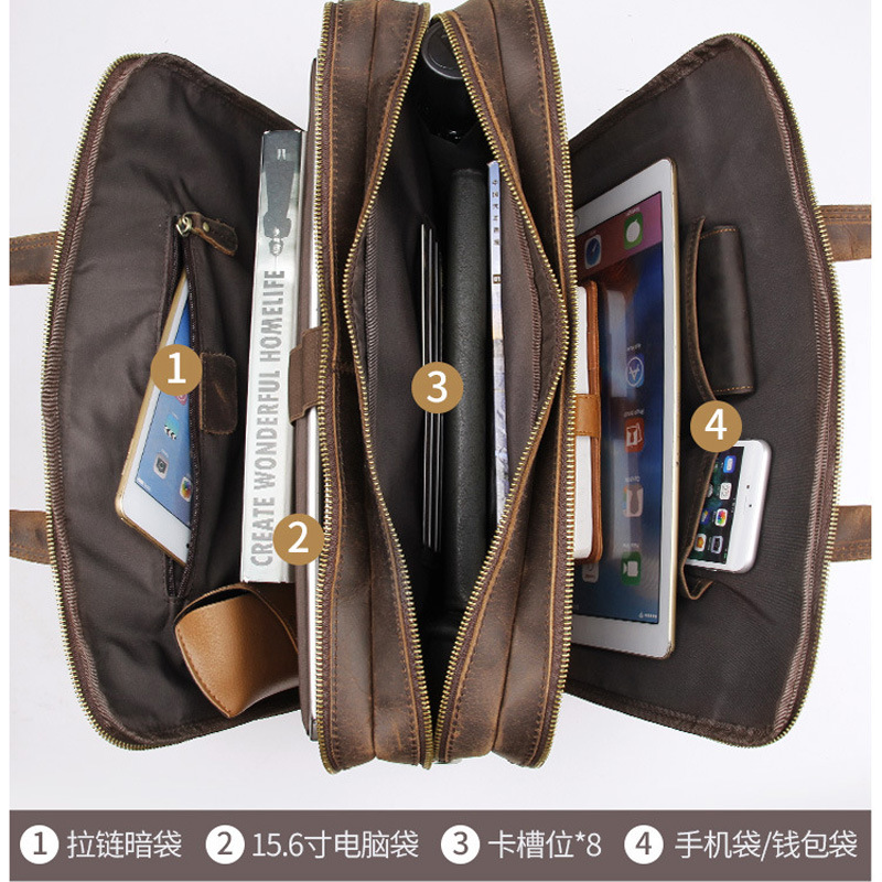Chiếc cặp làm từ chất liệu da bò tự nhiên, có bề mặt vân mềm mại tạo vẻ đẹp cổ điển. Thiết kế dáng đứng, bên trong rộng rãi vừa đặt máy tính và tài liệu. Qu xách chắc chắn cùng khóa kéo mượt mà giúp bảo quản đồ dùng an toàn. Sản phẩm phù hợp mang đi làm hoặc dùng trong các chuyến công tác. Khi dùng nên tránh tiếp xúc với nước mưa và hóa chất để giữ được độ bền đẹp tự nhiên của chất da. | Tên sản phẩm: Túi Xách Nam Chất Liệu Da Bò Túi Đựng Máy Tính Phục Cổ Cổ Điển - Túi Xách Ví Nam | Mã sản phẩm: A6143 - Giá: 3.650.000đ | Mã nhà sản xuất: SHDER-G06Hình ảnh sản phẩm