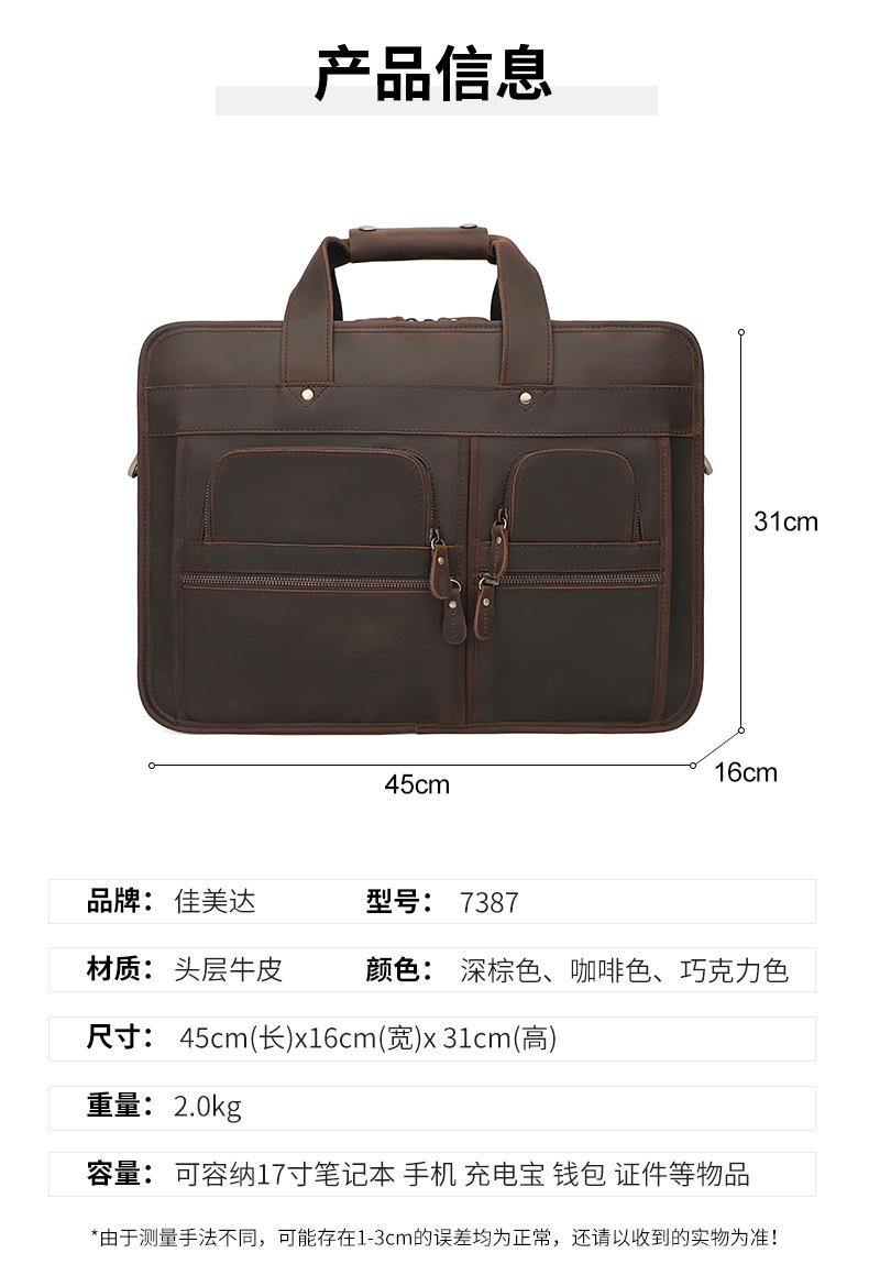 Chiếc cặp công sở này được làm từ chất liệu da bò mềm bền, có vân tự nhiên tạo vẻ đẹp mạnh mẽ. Thiết kế dành riêng cho nam giới, kích thước rộng rãi vừa vặn laptop 17 inch cùng tài liệu làm việc. Ngăn chính rộng rãi kèm ngăn phụ tiện lợi, dây đeo chắc chắn giúp mang theo dễ dàng. Sản phẩm phù hợp cho các chuyến công tác hay sử dụng hằng ngày. | Tên sản phẩm: Túi Xách Nam Chất Liệu Da Bò Túi Đựng Máy Tính - Túi Xách Ví Nam | Mã sản phẩm: A6191 - Giá: 3.870.000đ | Mã nhà sản xuất: SHDER-G06Hình ảnh sản phẩm