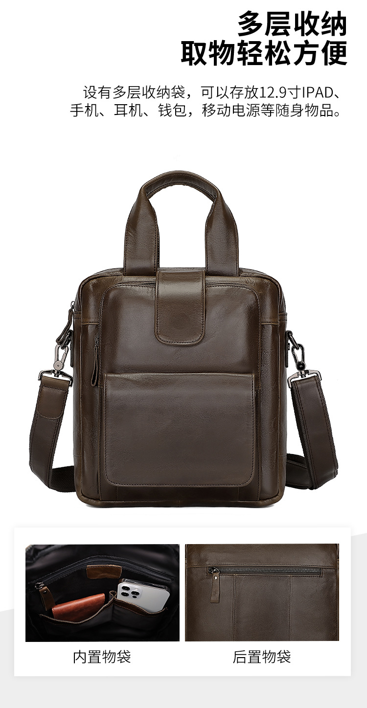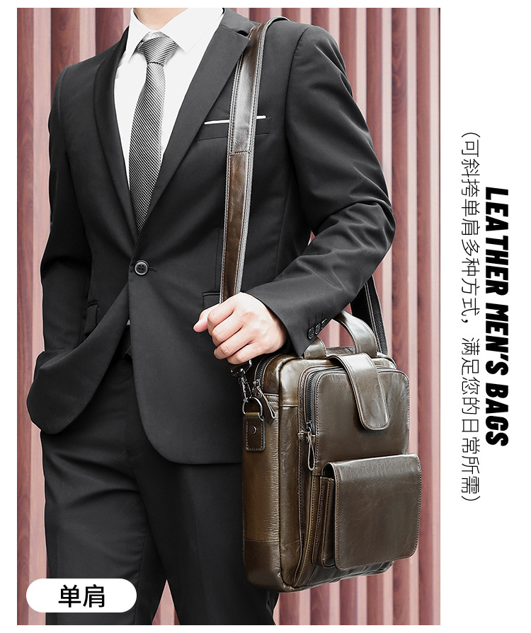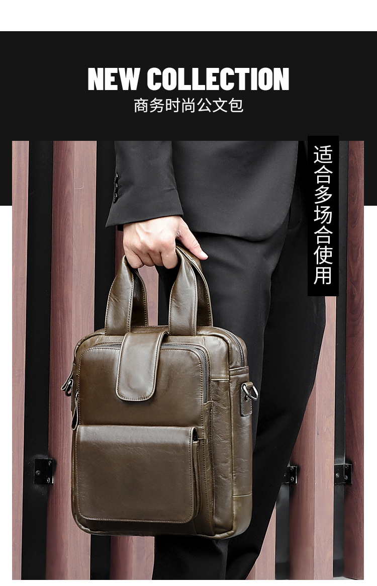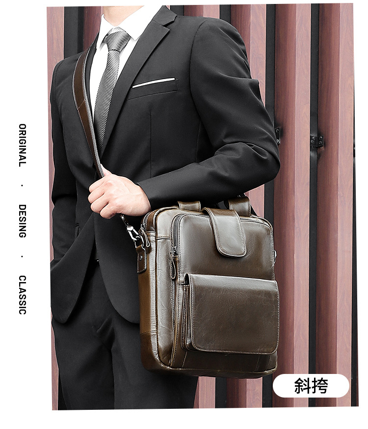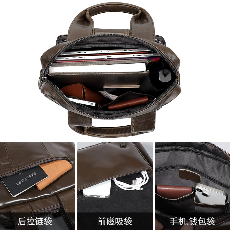 Chiếc cặp này được làm từ chất liệu da bò mềm mại, có khả năng chống nước nhẹ nhờ lớp phủ đặc biệt. Kiểu dáng nam tính với qu xách chắc chắn, thiết kế nhiều ngăn giúp sắp xếp đồ dùng gọn gàng. Cặp chứa vừa máy tính bảng cỡ lớn, tài liệu khổ A4 và các vật dụng cá nhân khác. Khi sử dụng, bạn chỉ cần cho đồ vào các ngăn được phân chia hợp lý, xách tay hoặc khoác lên v đều thuận tiện. | Tên sản phẩm: Túi Xách Nam Chất Liệu Da Bò Chống Nước - Túi Xách Ví Nam | Mã sản phẩm: A6192 - Giá: 2.150.000đ | Mã nhà sản xuất: SHDER-G05Hình ảnh sản phẩm