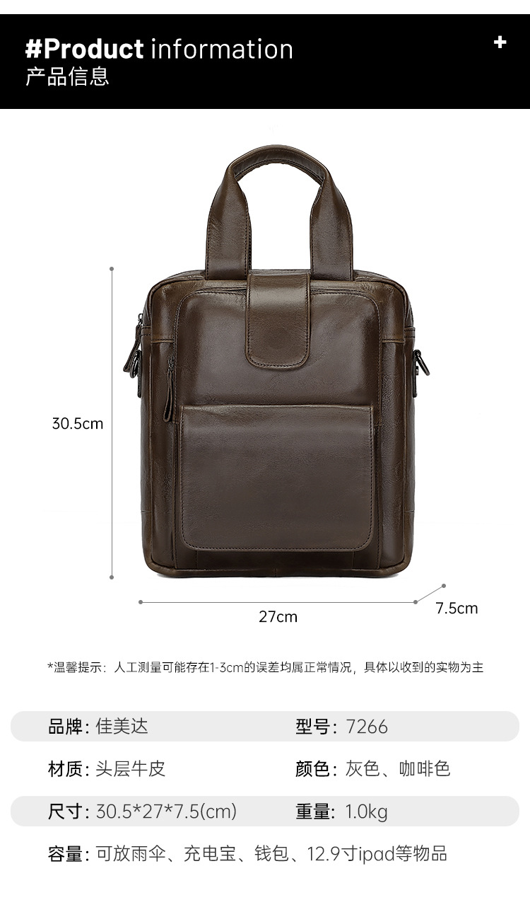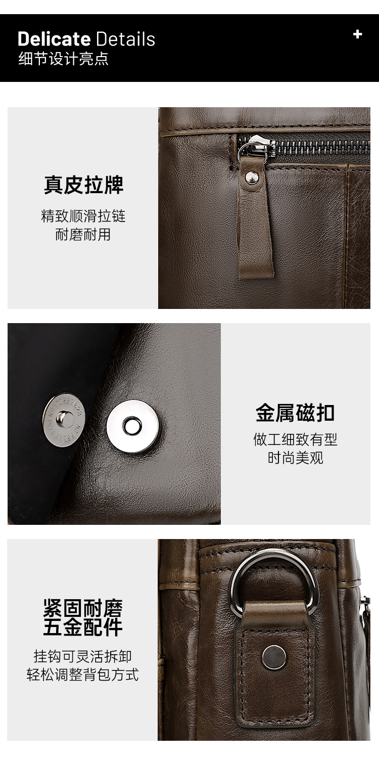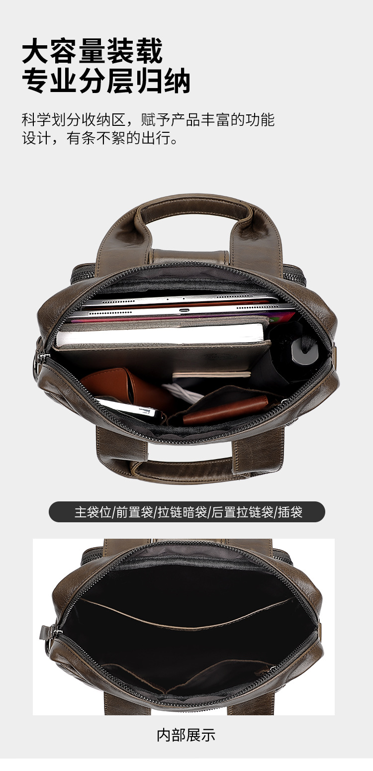 Chiếc cặp này được làm từ chất liệu da bò mềm mại, có khả năng chống nước nhẹ nhờ lớp phủ đặc biệt. Kiểu dáng nam tính với qu xách chắc chắn, thiết kế nhiều ngăn giúp sắp xếp đồ dùng gọn gàng. Cặp chứa vừa máy tính bảng cỡ lớn, tài liệu khổ A4 và các vật dụng cá nhân khác. Khi sử dụng, bạn chỉ cần cho đồ vào các ngăn được phân chia hợp lý, xách tay hoặc khoác lên v đều thuận tiện. | Tên sản phẩm: Túi Xách Nam Chất Liệu Da Bò Chống Nước - Túi Xách Ví Nam | Mã sản phẩm: A6192 - Giá: 2.150.000đ | Mã nhà sản xuất: SHDER-G05Hình ảnh sản phẩm