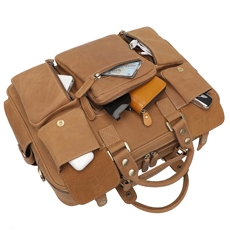 Chiếc túi xách nam này được làm từ loại da bò nguyên tấm tự nhiên, có bề mặt vân mây độc đáo càng thêm đẹp theo thời gian sử dụng. Phong cách thiết kế mang nét cổ điển châu Âu, kết hợp nhiều ngăn túi rộng rãi và tiện lợi. Sản phẩm thích hợp để đựng các vật dụng cá nhân khi đi làm hoặc dạo phố. Bạn có thể xách bằng tay hoặc khoác lên v một cách dễ dàng. | Tên sản phẩm: Túi Xách Nam Chất Liệu Da Bò Phong Cách Âu Mỹ - Túi Xách Ví Nam | Mã sản phẩm: A6233 - Giá: 3.690.000đ | Mã nhà sản xuất: SHDER-G06Hình ảnh sản phẩm