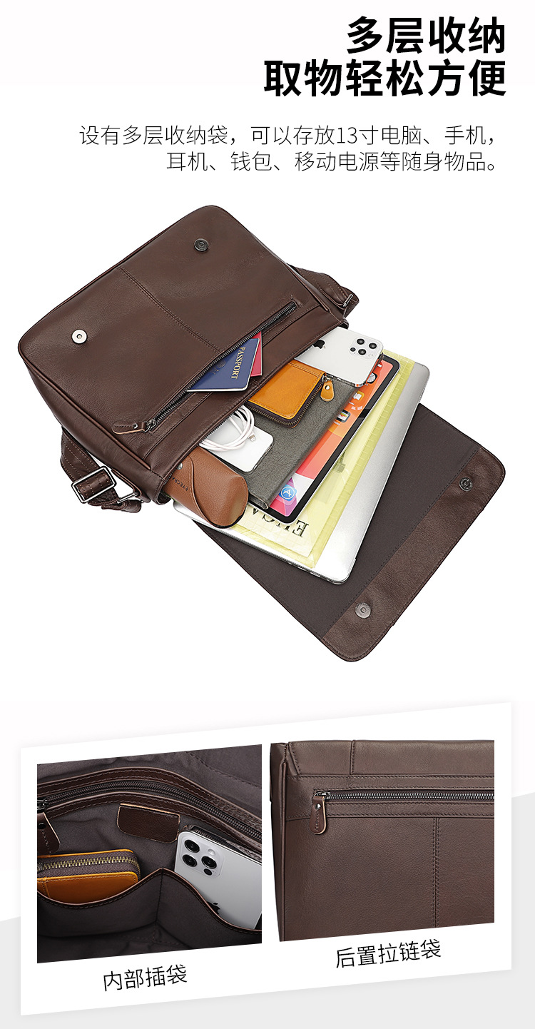 Chiếc túi dành cho nam mang phong cách hoài cổ, được làm từ chất liệu da bò mềm mại. Kiểu dáng túi đưa thư với dây đeo có thể điều chỉnh, mang lại sự tiện lợi khi đeo chéo người hoặc đeo một bên v. Bề mặt da được xử lý kỹ thuật sáp dầu tạo nên vẻ ngoài độc đáo và theo thời gian sẽ lên tông màu rất đẹp. Sản phẩm có nhiều ngăn rộng rãi, phù hợp để đựng các vật dụng cá nhân thường ngày như điện thoại, ví và tài liệu. | Tên sản phẩm: Túi Đeo Vai Nam Chất Liệu Da Bò Phục Cổ Cổ Điển - Túi Xách Ví Nam | Mã sản phẩm: A6359 - Giá: 2.420.000đ | Mã nhà sản xuất: SHDER-G05Hình ảnh sản phẩm