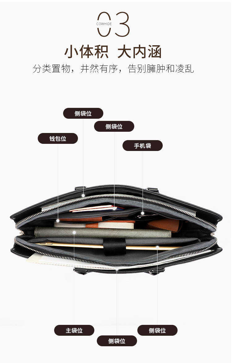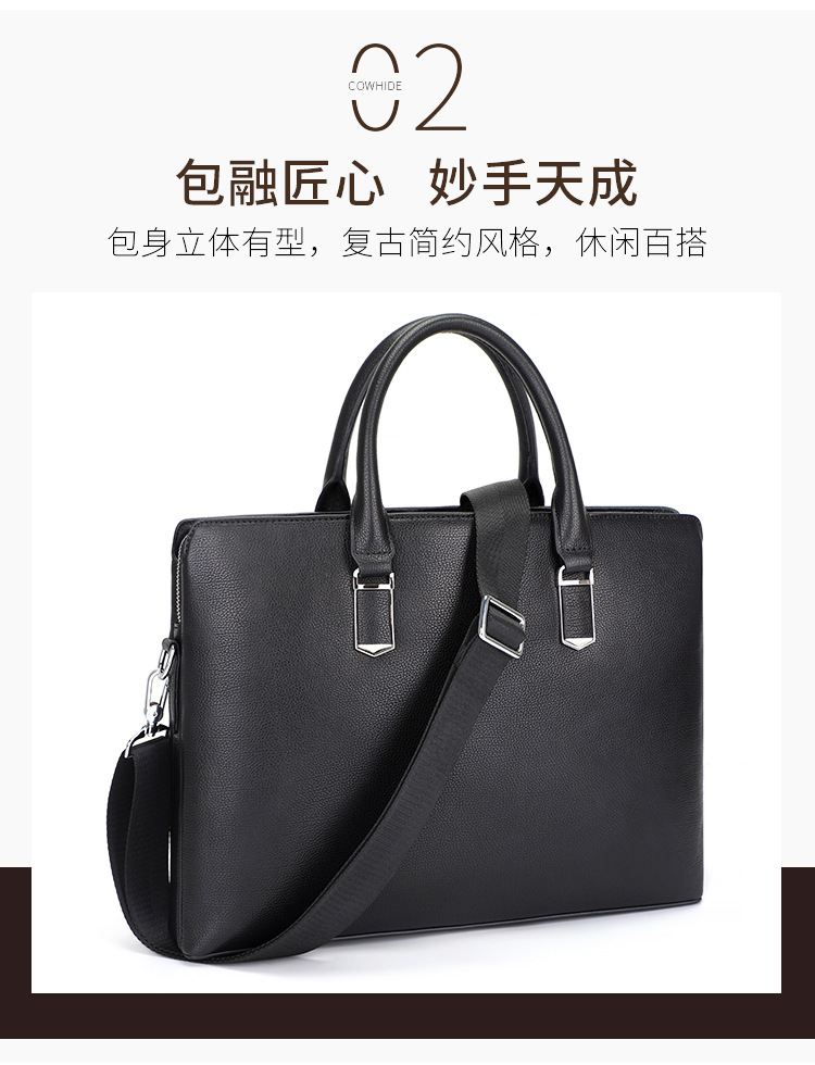 Chiếc cặp công sở dành cho nam giới, được làm từ chất liệu da bò tự nhiên bền đẹp. Thiết kế cứng cáp, có qu xách và qu đeo chéo linh hoạt, phù hợp cho cả công sở và những chuyến đi ngắn ngày. Ngăn rộng rãi giúp sắp xếp máy tính xách tay, tài liệu và các vật dụng cá nhân một cách gọn gàng. Sử dụng hàng ngày, bảo quản nơi khô ráo để giữ được vẻ đẹp lâu bền cho sản phẩm. | Tên sản phẩm: Túi Xách Nam Chất Liệu Da Bò - Túi Xách Ví Nam | Mã sản phẩm: A6407 - Giá: 3.000.000đ | Mã nhà sản xuất: SHDER-G06Hình ảnh sản phẩm