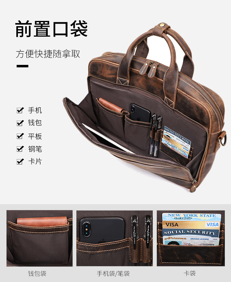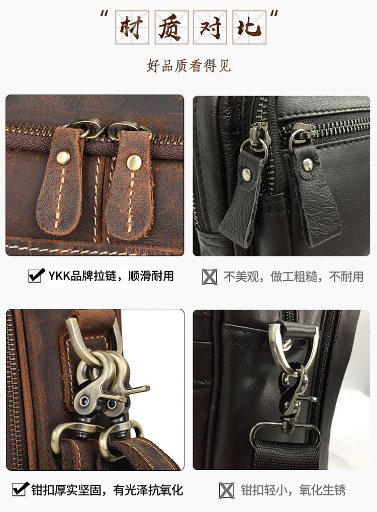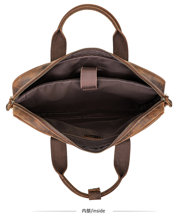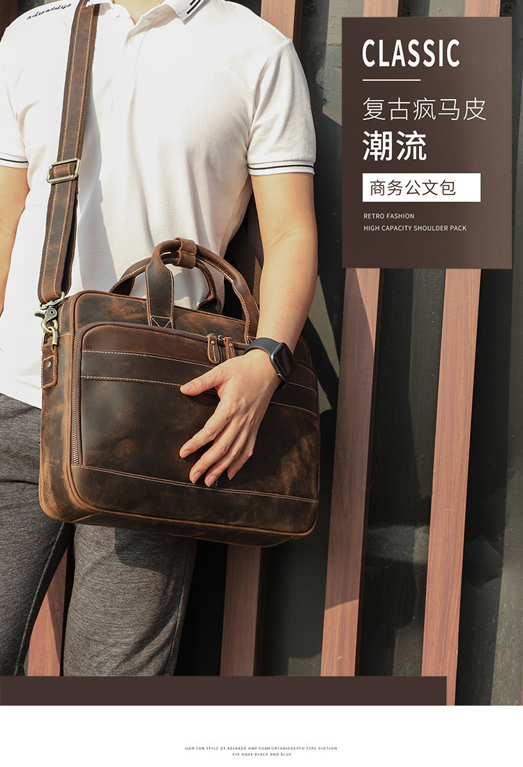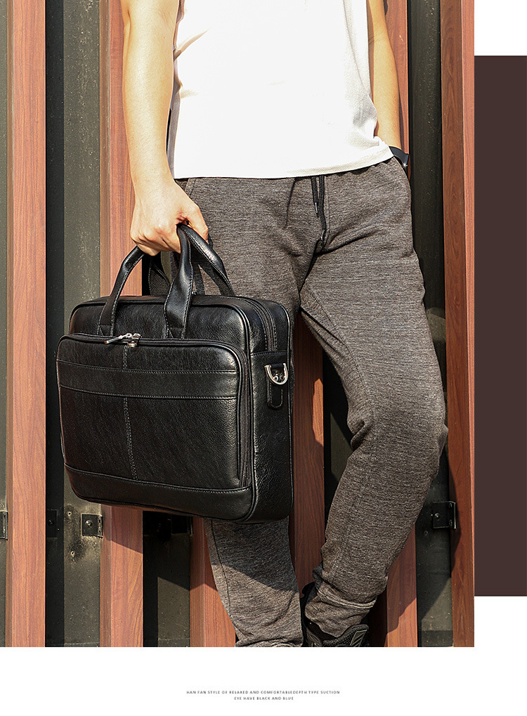 Chiếc cặp da thật dành cho nam, lấy cảm hứng từ phong cách cổ điển phương Tây. Chất liệu da bò nguyên lớp với bề mặt vân tự nhiên tạo vẻ đẹp mạnh mẽ. Thiết kế đa năng vừa xách tay vừa đeo chéo, phù hợp dùng đi làm hoặc dạo phố. Ngăn rộng đựp vừa máy tính, tài liệu cùng các vật dụng cá nhân. Dùng hằng ngày và lau nhẹ bằng khăn mềm để giữ vẻ đẹp tự nhiên của chất da. | Tên sản phẩm: Túi Xách Nam Chất Liệu Da Bò Phong Cách Âu Mỹ - Túi Xách Ví Nam | Mã sản phẩm: A6409 - Giá: 3.190.000đ | Mã nhà sản xuất: SHDER-G06Hình ảnh sản phẩm