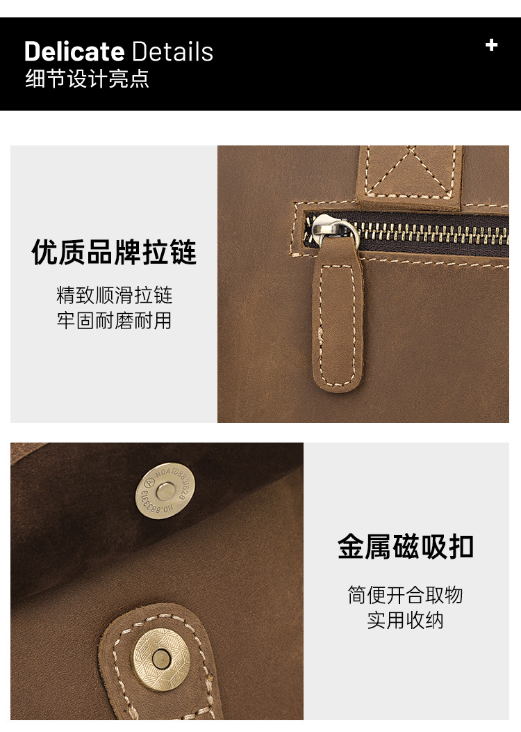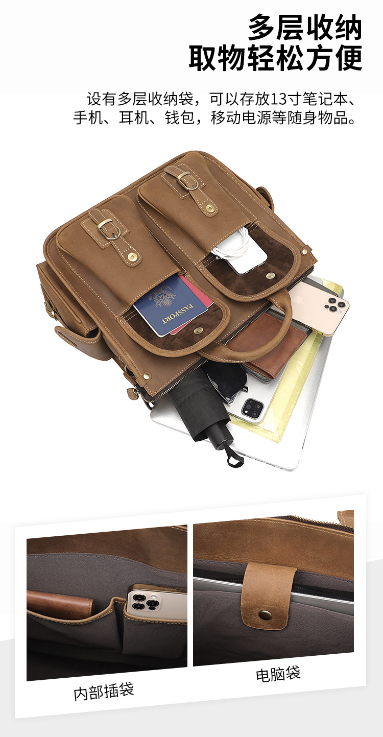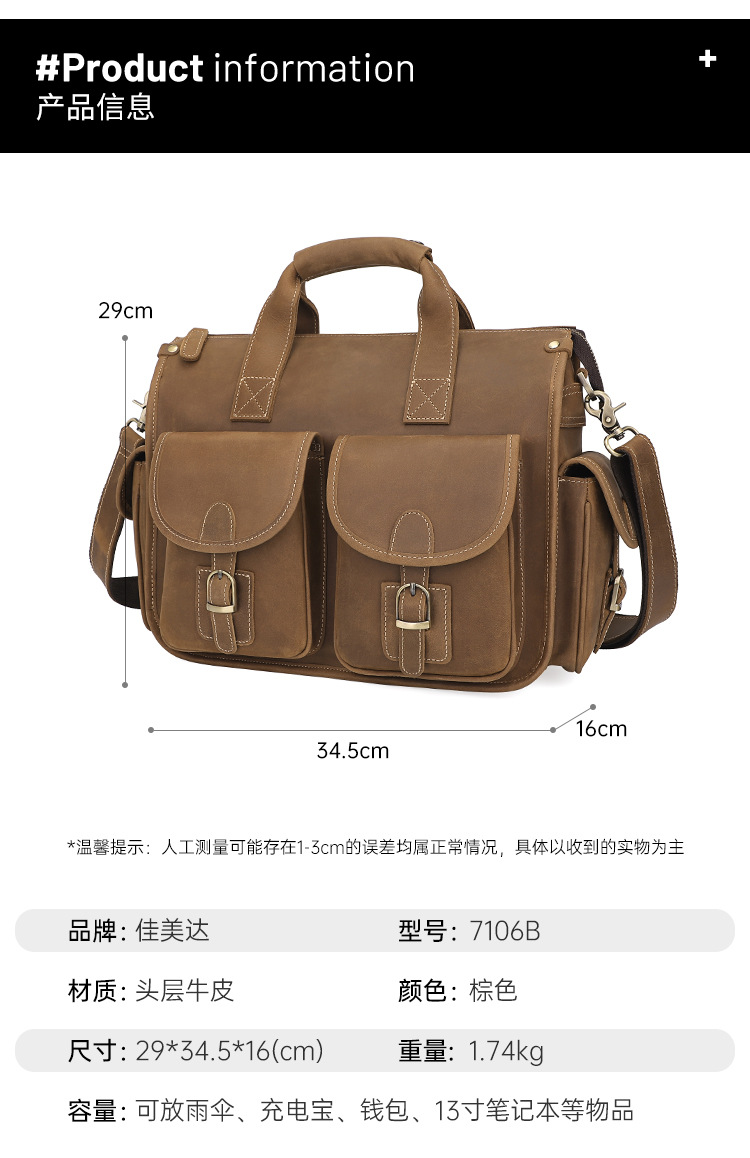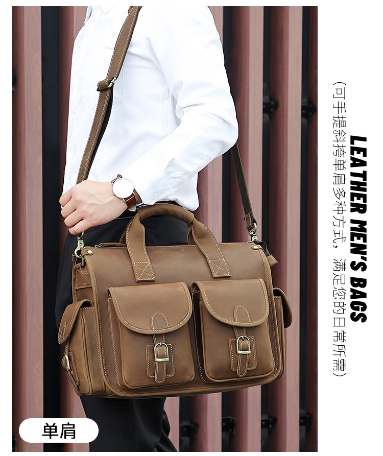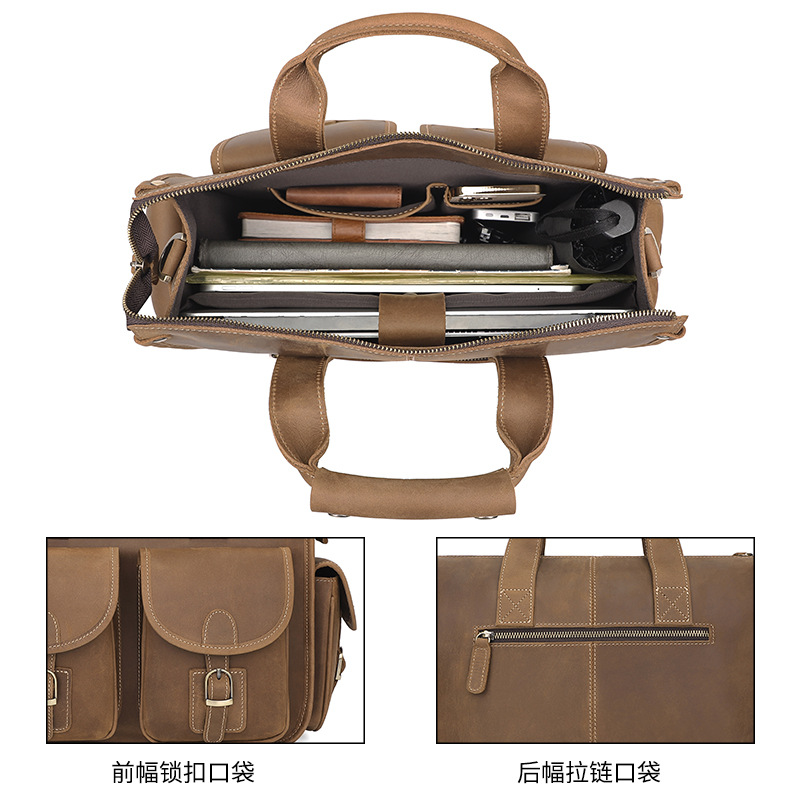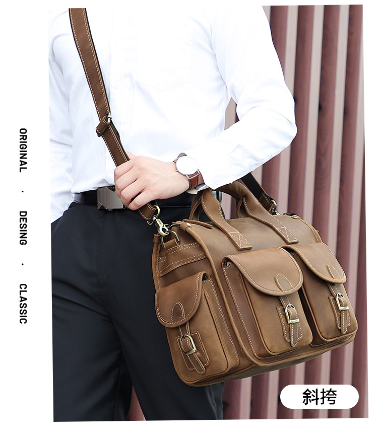 Chiếc túi xách mang phong cách cổ điển châu Âu, được làm từ chất da bò mềm mại có khả năng tự lành vết trầy nhẹ. Thiết kế đơn giản nhưng mạnh mẽ, phù hợp cho nam giới sử dụng đi làm hoặc dạo phố. Bên trong ngăn rộng rãi đựng vừa máy tính xách tay, cùng các vật dụng cá nhân khác. Có thể đeo bằng tay, khoác v hoặc mang chéo người tùy theo sở thích và nhu cầu sử dụng hằng ngày. | Tên sản phẩm: Túi Xách Nam Chất Liệu Da Bò Túi Đựng Máy Tính Phong Cách Âu Mỹ - Túi Xách Ví Nam | Mã sản phẩm: A6452 - Giá: 3.630.000đ | Mã nhà sản xuất: SHDER-G06Hình ảnh sản phẩm