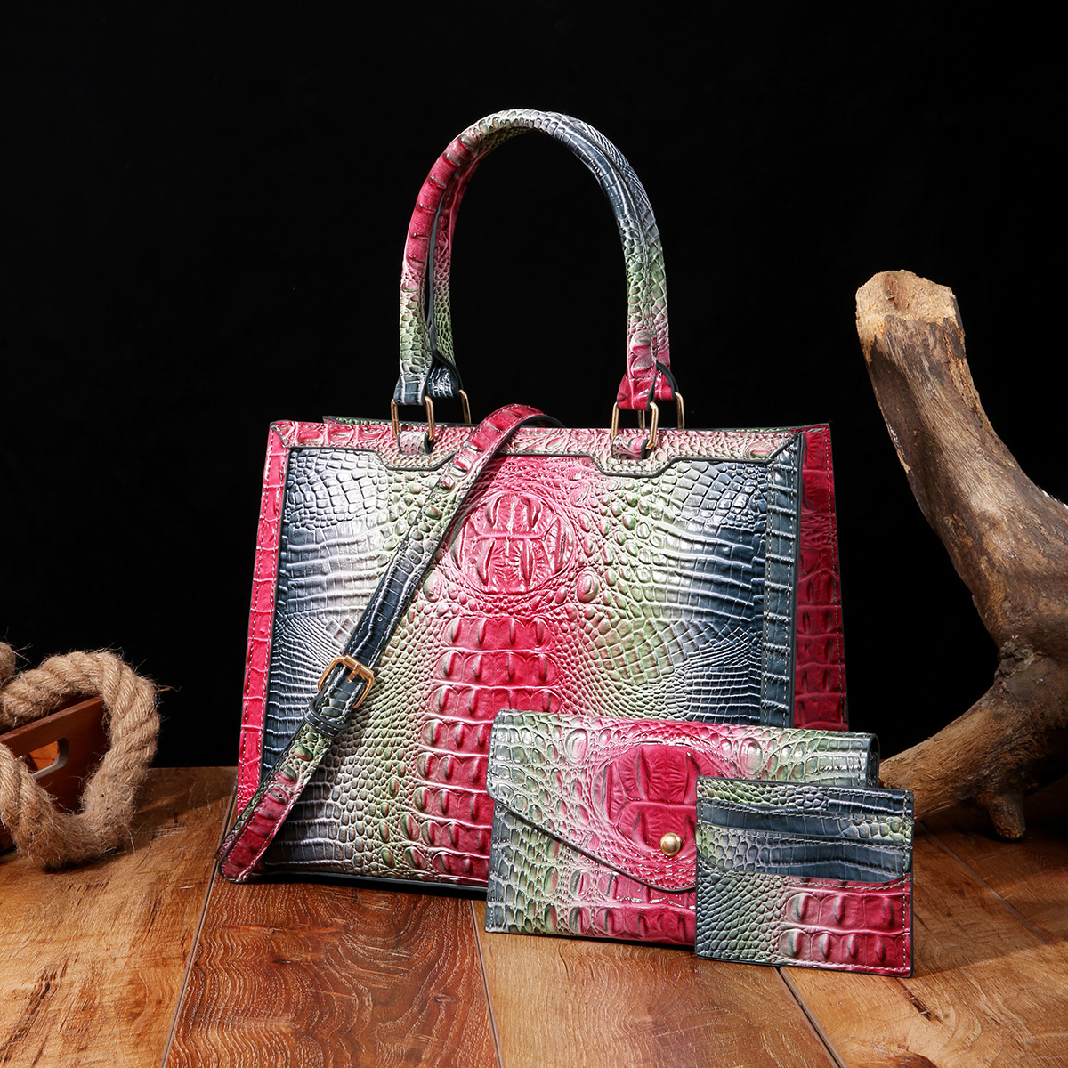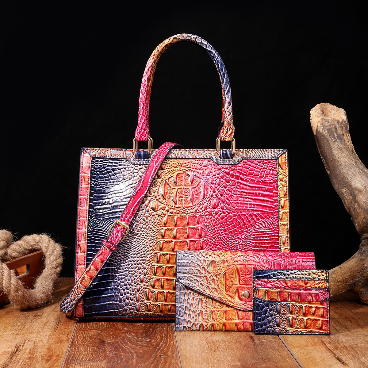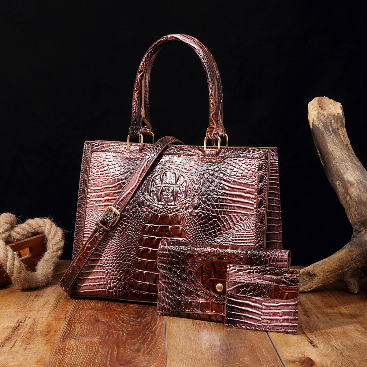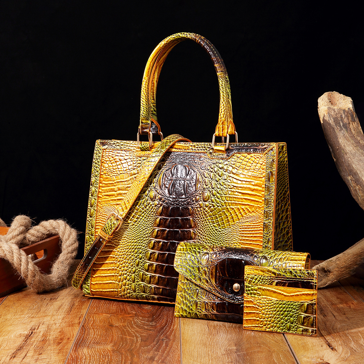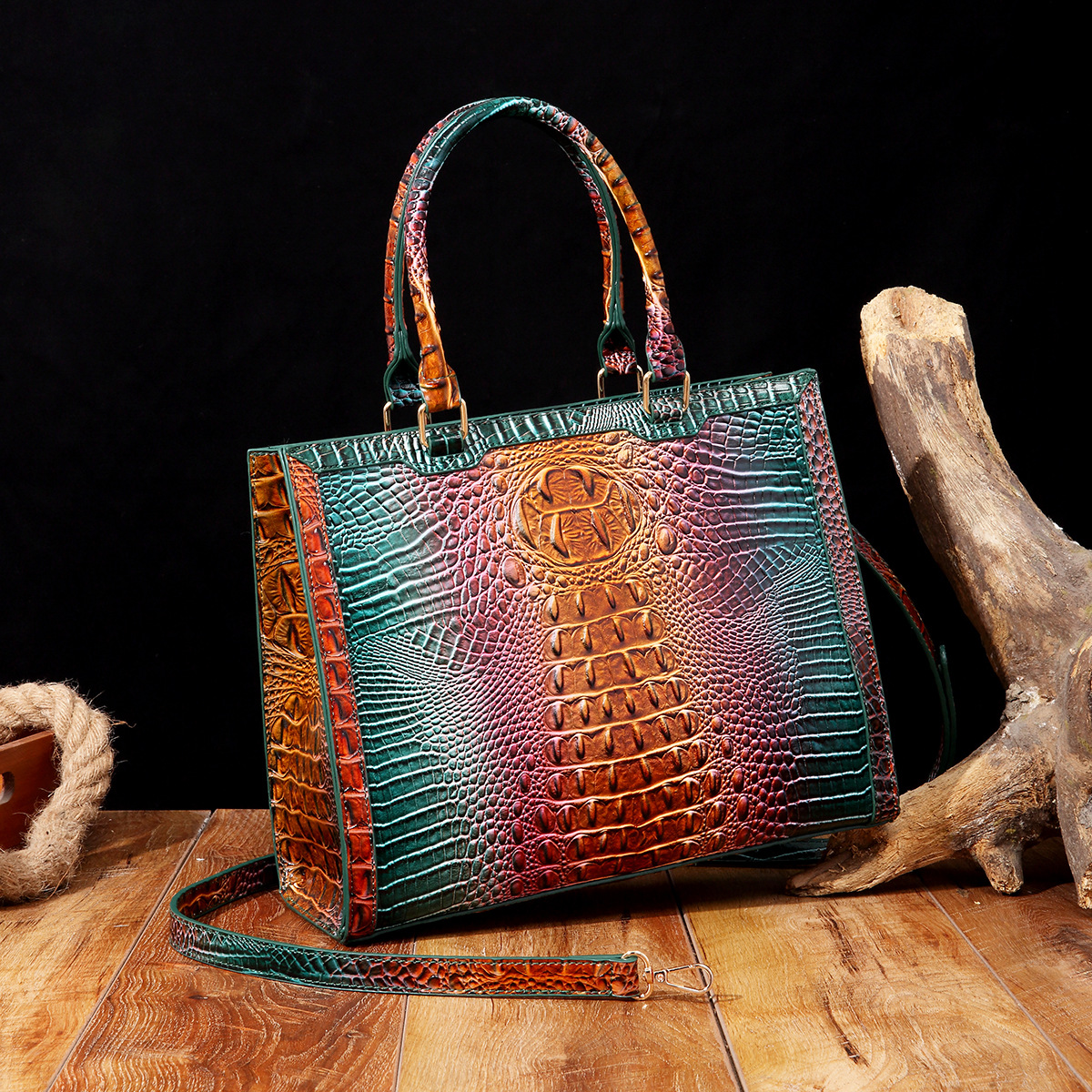Túi xách thiết kế dáng túi tròn cổ điển, phối hợp bộ mẹ và con tiện lợi. Chất liệu bề mặt có vân da cá sấu tinh tế, ánh lên sắc màu nhẹ nhàng. Sản phẩm có qu đeo tay và dây đeo chéo linh hoạt, dễ dàng phối hợp với nhiều trang phục khác nhau. Bên trong ngăn xếp rộng rãi, đựng được ví, điện thoại và các vật dụng cá nhân cần thiết. Sử dụng phù hợp cho các dịp đi chơi, dạo phố hoặc gặp gỡ bạn bè. | Tên sản phẩm: Túi Xách Nữ Vân Da Cá Sấu Phong Cách Âu Mỹ - Túi Ví Nữ | Mã sản phẩm: A6477 - Giá: 870.000đ | Mã nhà sản xuất: GUDAT-G03Hình ảnh sản phẩm