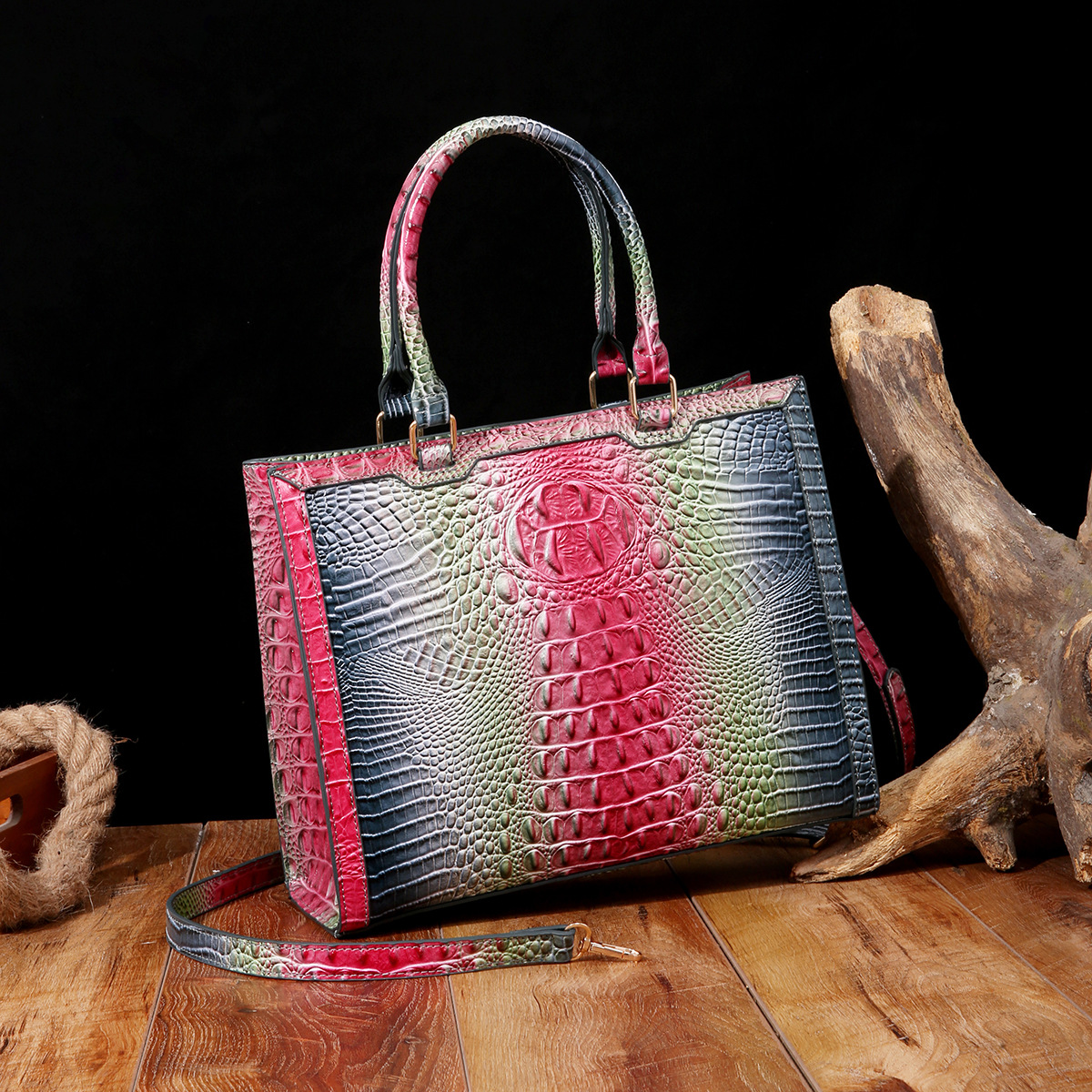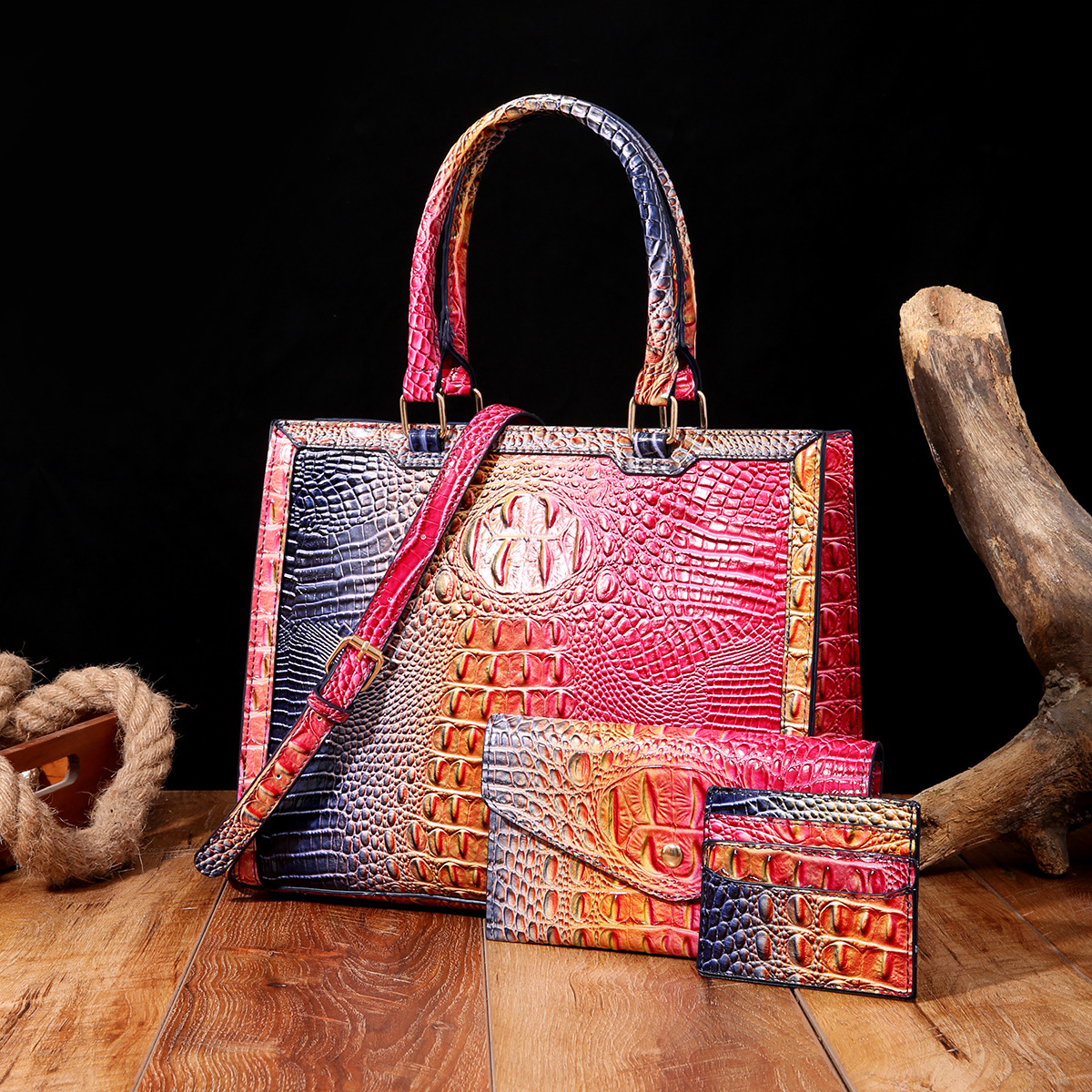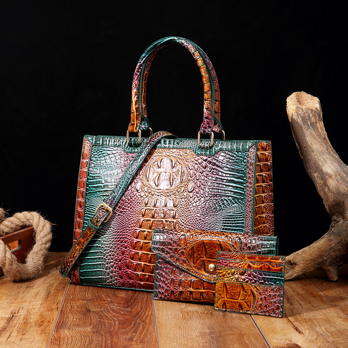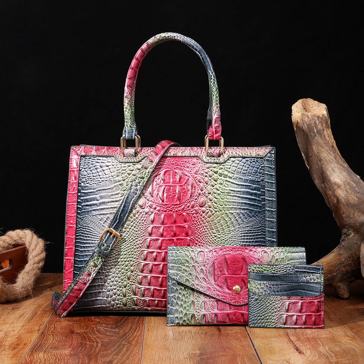 Túi xách thiết kế dáng túi tròn cổ điển, phối hợp bộ mẹ và con tiện lợi. Chất liệu bề mặt có vân da cá sấu tinh tế, ánh lên sắc màu nhẹ nhàng. Sản phẩm có qu đeo tay và dây đeo chéo linh hoạt, dễ dàng phối hợp với nhiều trang phục khác nhau. Bên trong ngăn xếp rộng rãi, đựng được ví, điện thoại và các vật dụng cá nhân cần thiết. Sử dụng phù hợp cho các dịp đi chơi, dạo phố hoặc gặp gỡ bạn bè. | Tên sản phẩm: Túi Xách Nữ Vân Da Cá Sấu Phong Cách Âu Mỹ - Túi Ví Nữ | Mã sản phẩm: A6477 - Giá: 870.000đ | Mã nhà sản xuất: GUDAT-G03Hình ảnh sản phẩm