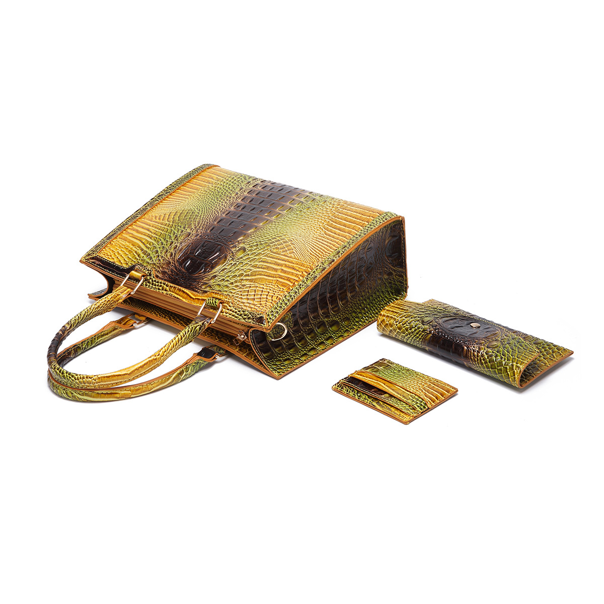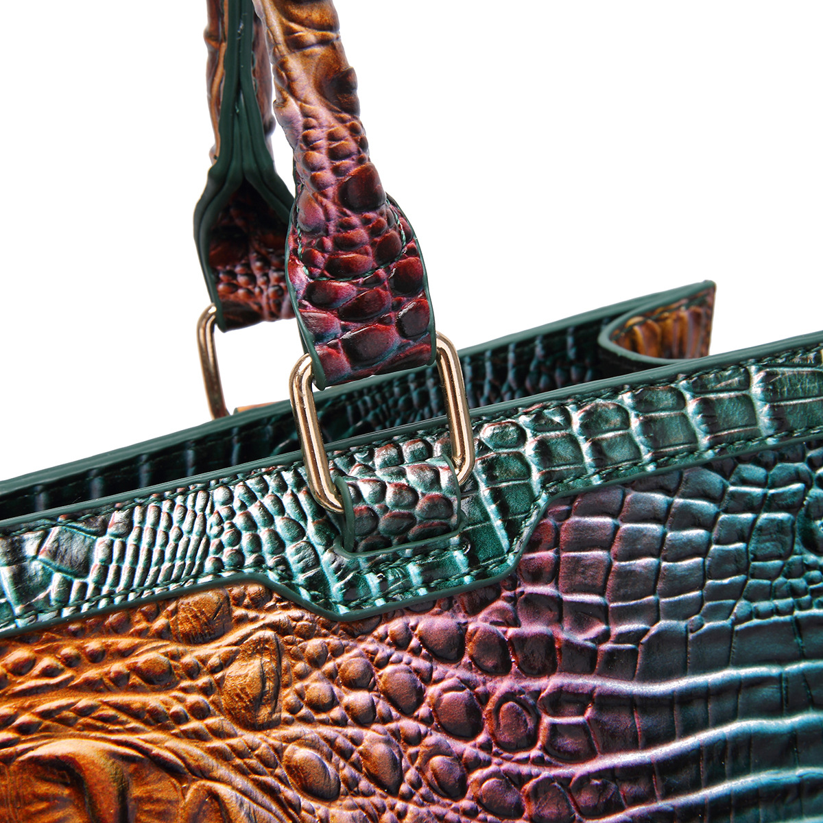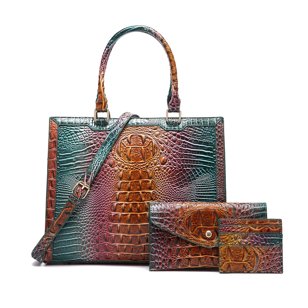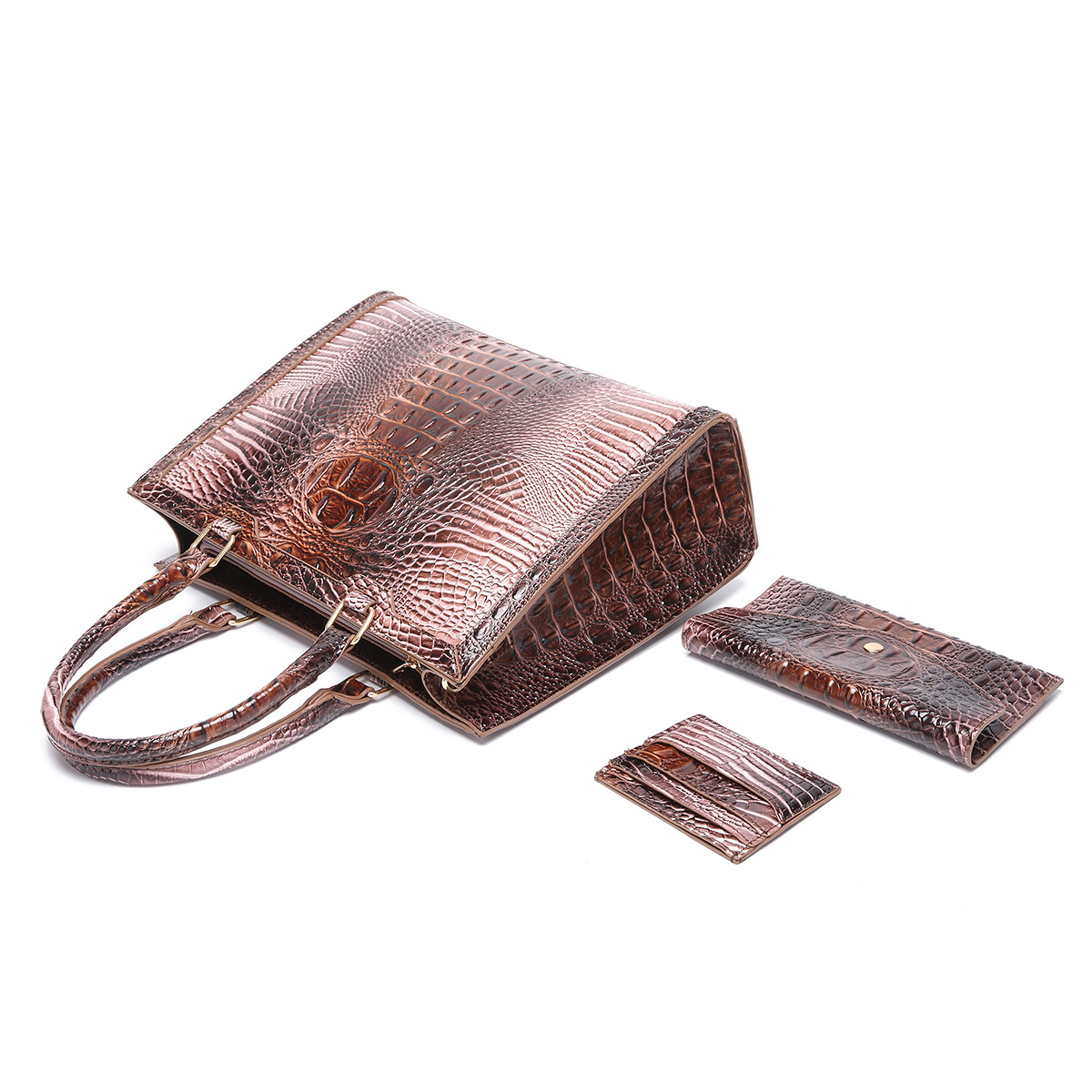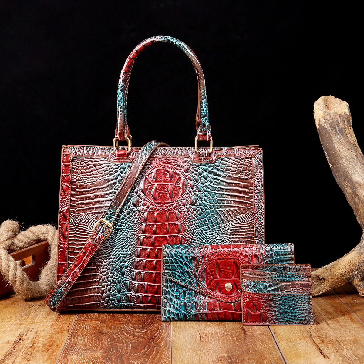 Túi xách thiết kế dáng túi tròn cổ điển, phối hợp bộ mẹ và con tiện lợi. Chất liệu bề mặt có vân da cá sấu tinh tế, ánh lên sắc màu nhẹ nhàng. Sản phẩm có qu đeo tay và dây đeo chéo linh hoạt, dễ dàng phối hợp với nhiều trang phục khác nhau. Bên trong ngăn xếp rộng rãi, đựng được ví, điện thoại và các vật dụng cá nhân cần thiết. Sử dụng phù hợp cho các dịp đi chơi, dạo phố hoặc gặp gỡ bạn bè. | Tên sản phẩm: Túi Xách Nữ Vân Da Cá Sấu Phong Cách Âu Mỹ - Túi Ví Nữ | Mã sản phẩm: A6477 - Giá: 870.000đ | Mã nhà sản xuất: GUDAT-G03Hình ảnh sản phẩm