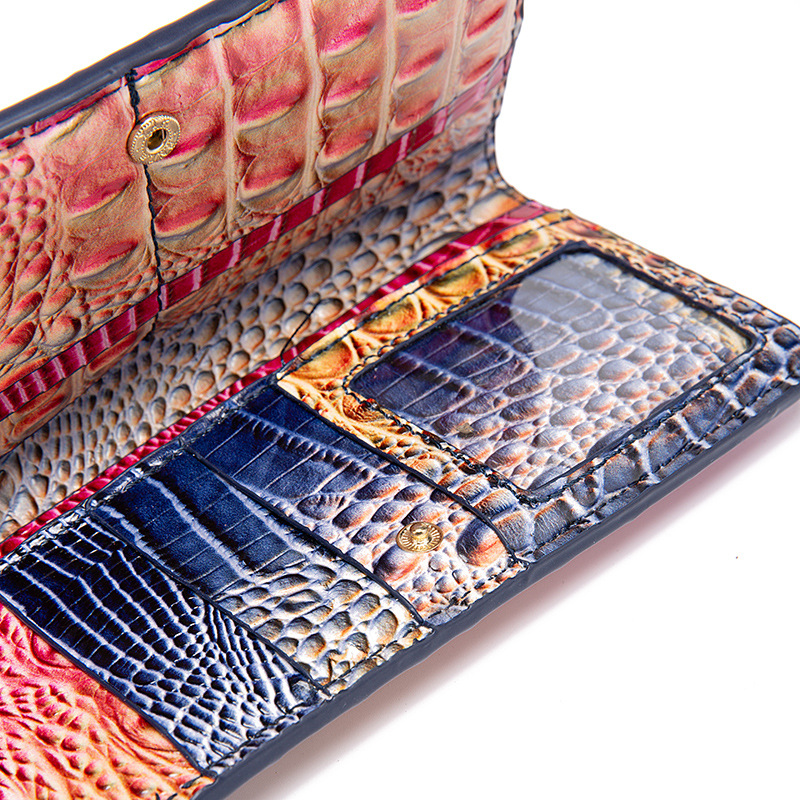 Chiếc ví này mang phong cách thời trang Âu Mỹ cổ điển, được thiết kế như một chiếc ví cầm tay thanh lịch. Bề mặt ví có họa tiết da cá sấu tinh tế, tạo điểm nhấn riêng biệt. Sản phẩm có nhiều màu sắc để bạn dễ dàng phối hợp với các trang phục khác nhau. Bên trong ví có nhiều ngăn rộng rãi, giúp đựng tiền mặt, thẻ và các vật dụng cá nhân gọn gàng. Bạn có thể dùng như ví cầm tay hoặc kết hợp với dây đeo để sử dụng linh hoạt cho nhiều dịp. | Tên sản phẩm: Ví Bóp Cầm Tay Nữ Vân Da Cá Sấu Phong Cách Âu Mỹ - Túi Ví Nữ | Mã sản phẩm: A6482 - Giá: 610.000đ | Mã nhà sản xuất: GUDAT-G02Hình ảnh sản phẩm