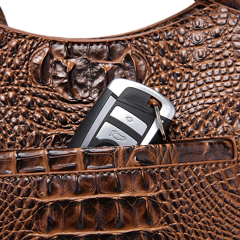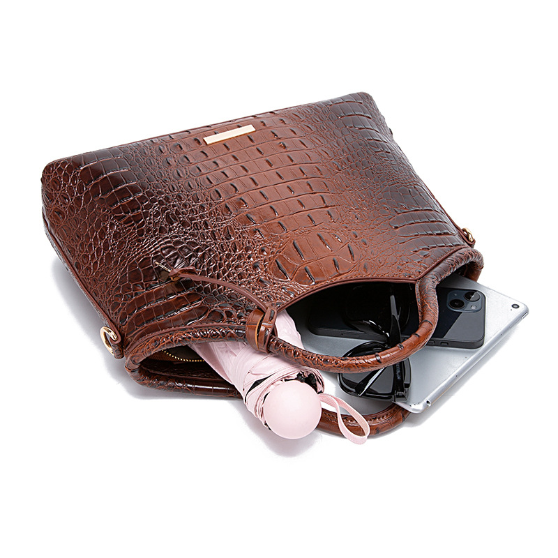 Chiếc túi xách tay và đeo chéo này mang phong cách cổ điển hiện đại, với họa tiết da cá sấu nổi bật tạo nên vẻ đẹp mạnh mẽ và cá tính. Thiết kế nhiều ngăn giúp bạn dễ dàng sắp xếp các vật dụng cá nhân một cách gọn gàng. Dây đeo có thể điều chỉnh linh hoạt, cho phép bạn đeo trên v hoặc khoác chéo một cách thoải mái. Sản phẩm có nhiều màu sắc để bạn lựa chọn, phù hợp để sử dụng hàng ngày, khi đi làm hay dạo phố. | Tên sản phẩm: Túi Xách Nữ Vân Da Cá Sấu Phong Cách Âu Mỹ - Túi Ví Nữ | Mã sản phẩm: A6484 - Giá: 890.000đ | Mã nhà sản xuất: GUDAT-G03Hình ảnh sản phẩm