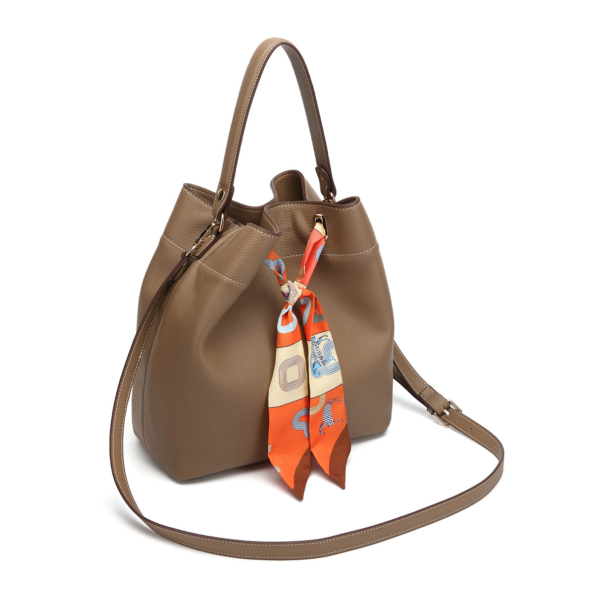 Túi xách kiểu dáng mới lạ, kết hợp hài hòa giữa dáng thùng và hình rổ, tạo nên vẻ ngoài trẻ trung và năng động. Sản phẩm được làm từ chất liệu da mềm mịn, có qu xách và dây đeo v linh hoạt. Bên trong túi có ngăn chính rộng rãi cùng một ngăn phụ nhỏ tiện lợi, giúp bạn sắp xếp đồ dùng cá nhân một cách gọn gàng. Có thể dùng kèm với một chiếc khăn lụa để điểm xuyết thêm phần điệu đà. Rất thích hợp để sử dụng hàng ngày hoặc trong những dịp đặc biệt. | Tên sản phẩm: Túi Xách Nữ Chất Liệu Da Bò Dùng Trong Lễ Cưới - Túi Ví Nữ | Mã sản phẩm: A6491 - Giá: 1.130.000đ | Mã nhà sản xuất: GUDAT-G04Hình ảnh sản phẩm