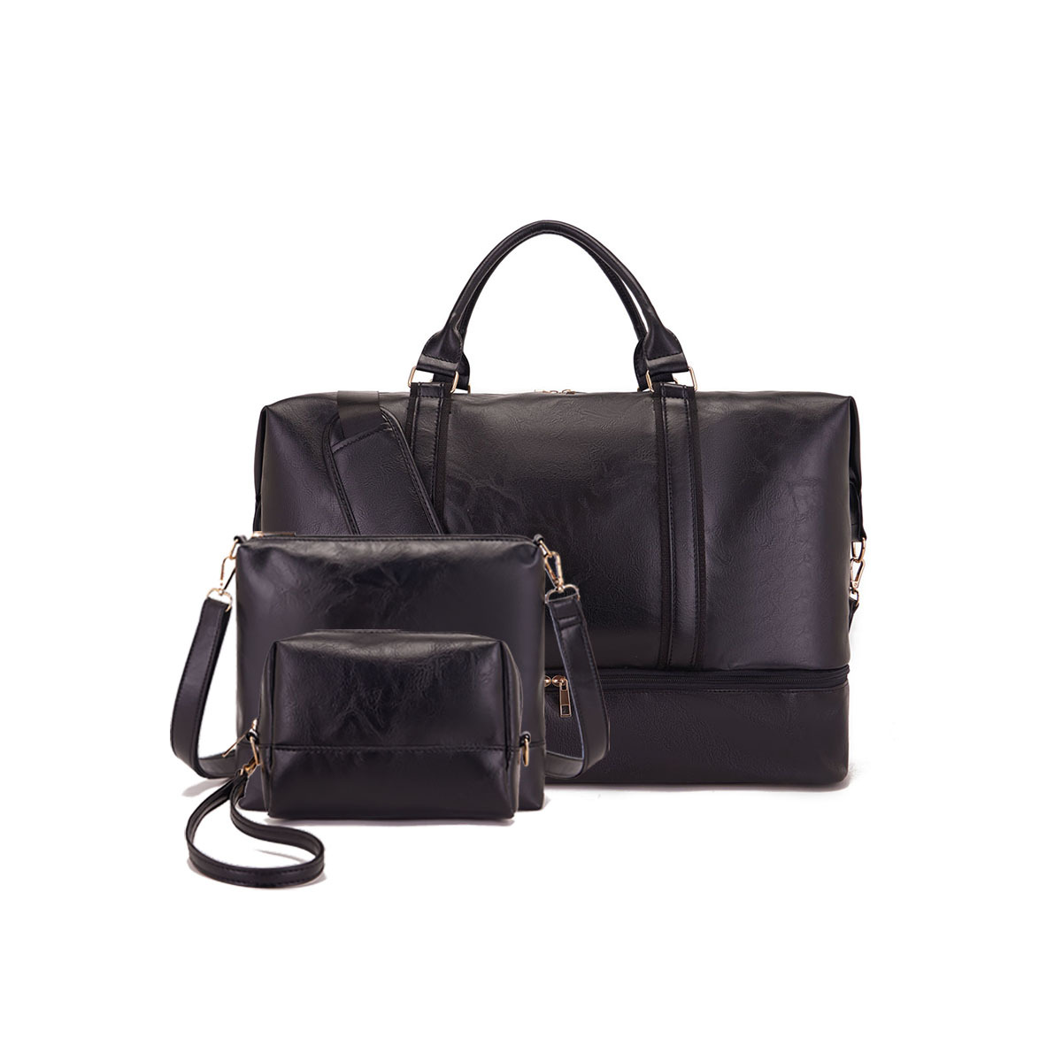 Bộ ba túi du lịch này rất tiện lợi để mang theo mọi lúc mọi nơi. Sản phẩm gồm một túi lớn và hai túi nhỏ hơn, phù hợp cho cả nam và nữ. Chất liệu chính làm từ da tổng hợp bền đẹp, giúp bạn đựng được nhiều đồ dùng cá nhân. Cách dùng đơn giản: xếp quần áo và vật dụng vào các túi tùy theo kích cỡ, khóa kéo lại là có thể mang đi du lịch, công tác hay tập thể dục hàng ngày. | Tên sản phẩm: Túi Xách Nữ Cả Bộ 3 Món - Túi Ví Nữ | Mã sản phẩm: A6503 - Giá: 1.240.000đ | Mã nhà sản xuất: GUDAT-G04Hình ảnh sản phẩm