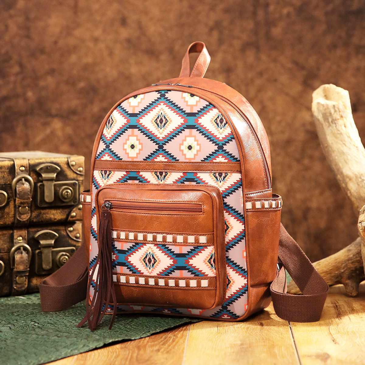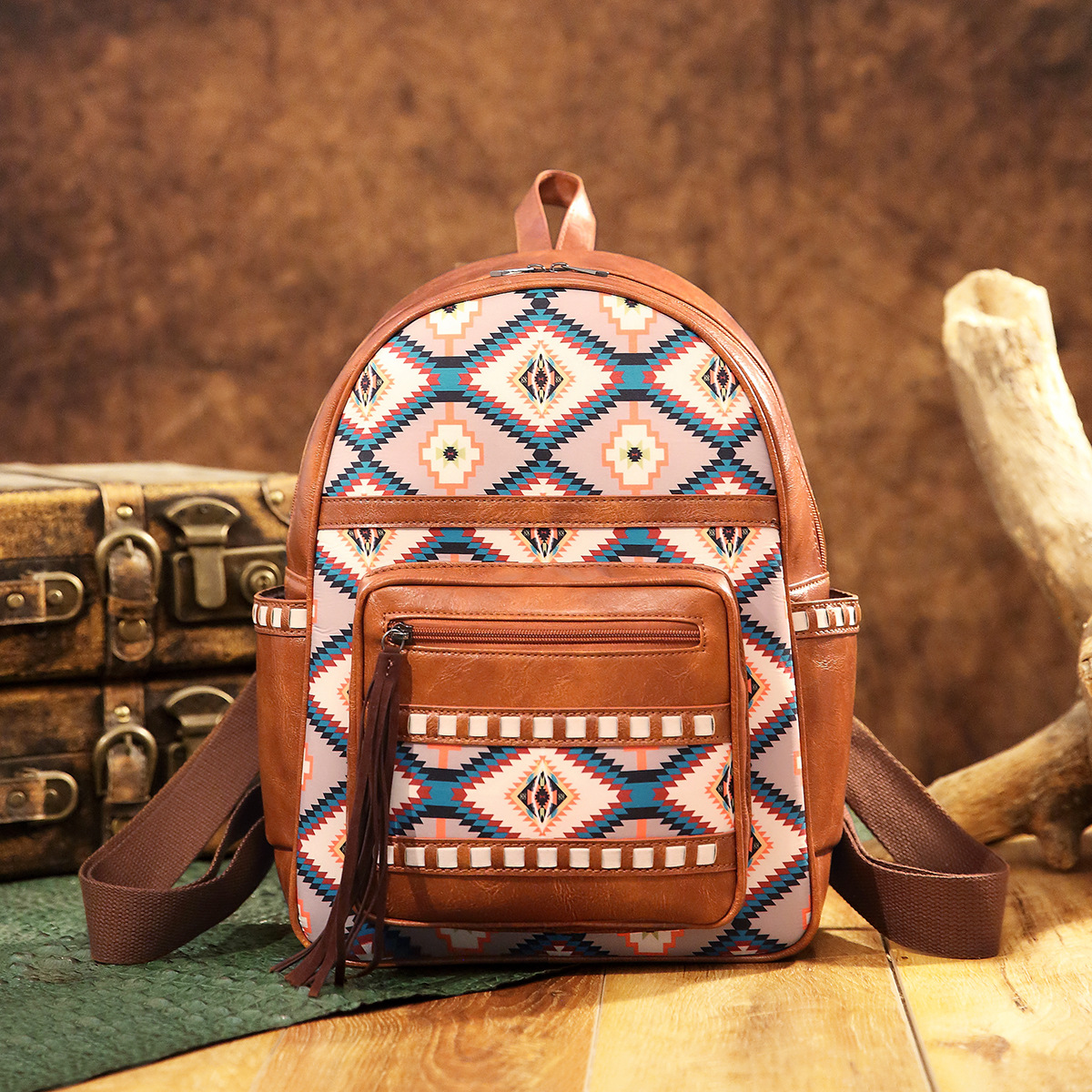 Ba lô nữ mang phong cách dân tộc pha trộn nét tự do phóng khoáng. Kiểu dáng đậm chất nghệ thuật với họa tiết thổ cẩm độc đáo và màu sắc rực rỡ. Thiết kế hai ngăn chính rộng rãi cùng ngăn phụ tiện lợi, chứa được nhiều vật dụng cá nhân khi đi chơi hoặc du lịch. Dây đeo êm ái, điều chỉnh dễ dàng. Sản phẩm phù hợp để sử dụng hằng ngày, kết hợp với các trang phục đơn giản tạo điểm nhấn. | Tên sản phẩm: Túi Đeo Vai Nữ Phong Cách Âu Mỹ - Túi Ví Nữ | Mã sản phẩm: A6506 - Giá: 720.000đ | Mã nhà sản xuất: GUDAT-G02Hình ảnh sản phẩm