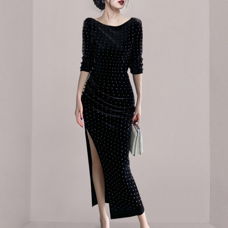 Đầm thun dáng dài cho nữ, kiểu dáng ôn hòa phù hợp nhiều dịp. Chất vải mềm mại, tạo cảm giác dễ chịu khi mặc. Thiết kế cổ tròn kết hợp điểm nhấn bằng hạt ánh sáng tinh tế. Các đường nhún eo và tà xẻ nhẹ giúp tôn dáng người mặc. Sản phẩm dễ phối cùng giày cao gót hoặc giày đế bằng. Phù hợp mặc đi làm, dự tiệc hoặc gặp mặt bạn bè. | Tên sản phẩm: Váy Đầm Liền Thân Nữ Gắn Đá Hàng Mùa Xuân Thu Đông - Thời Trang Nữ | Mã sản phẩm: a6522 - Giá: 780.000đ | Mã nhà sản xuất: ZHOUT-G02Hình ảnh sản phẩm