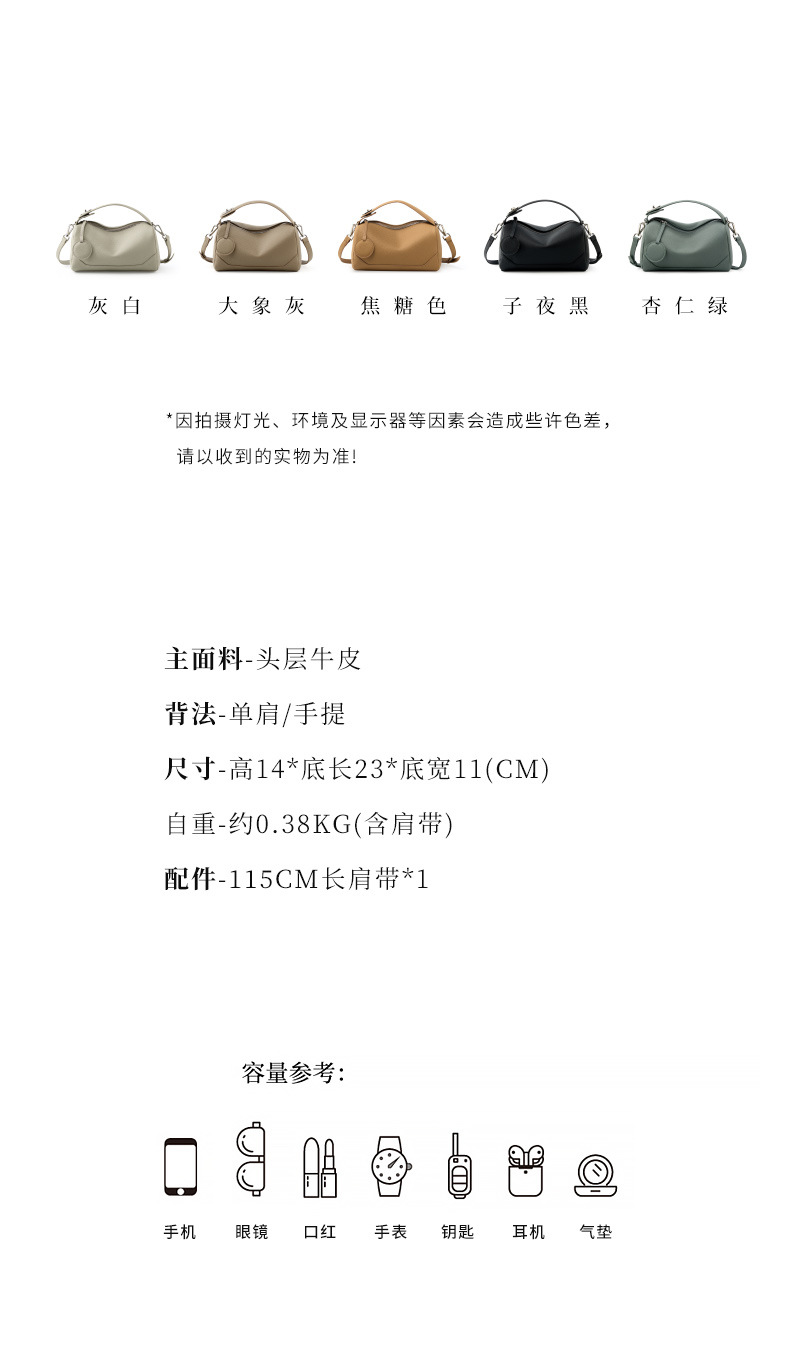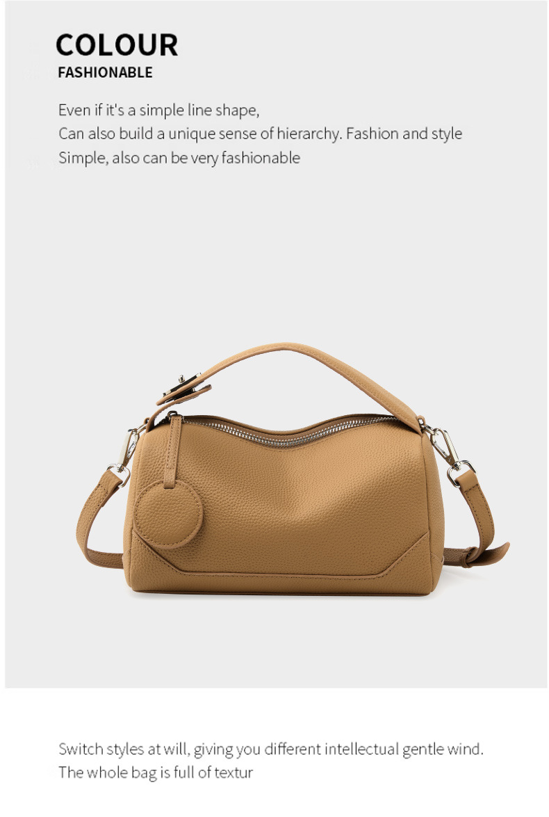 Túi xách nữ được làm từ chất da mềm mại và bền đẹp. Kiểu dáng túi Boston cổ điển kết hợp phong cách thời trang đa dạng, dễ dàng phối đồ. Bạn có thể đeo trên v một cách thoải mái hoặc xách tay một cách thanh lịch. Sản phẩm có không gian rộng rãi bên trong, thích hợp để đựng các vật dụng cá nhân cần thiết cho những chuyến đi chơi hoặc làm việc hằng ngày. | Tên sản phẩm: Túi Xách Nữ Chất Liệu Da Bò - Túi Ví Nữ | Mã sản phẩm: A6557 - Giá: 1.090.000đ | Mã nhà sản xuất: GUDEA-G03Hình ảnh sản phẩm