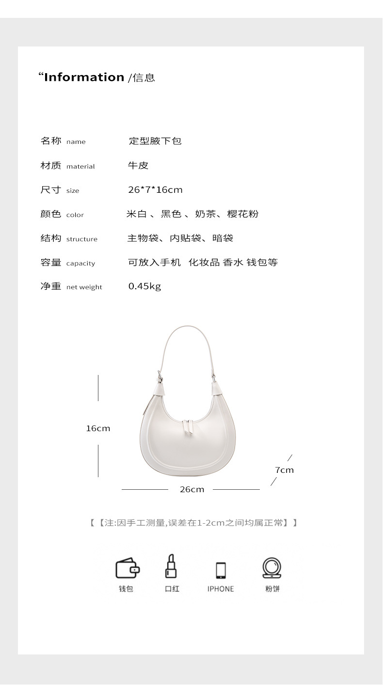 Chiếc túi hình trăng khuyết này được làm từ chất liệu da bò mềm mại, tạo cảm giác vừa vặn dưới cánh tay. Kiểu dáng nửa vầng trăng thời thượng, kết hợp cùng dây đeo có thể điều chỉnh để mang trên v hoặc khoác chéo. Thiết kế nhỏ gọn nhưng vẫn đủ rộng để đựng các vật dụng cần thiết hằng ngày. Bạn có thể dễ dàng phối hợp với nhiều trang phục khác nhau. | Tên sản phẩm: Túi Xách Nữ Chất Liệu Da Bò - Túi Ví Nữ | Mã sản phẩm: A6565 - Giá: 1.280.000đ | Mã nhà sản xuất: GUDEA-G04Hình ảnh sản phẩm