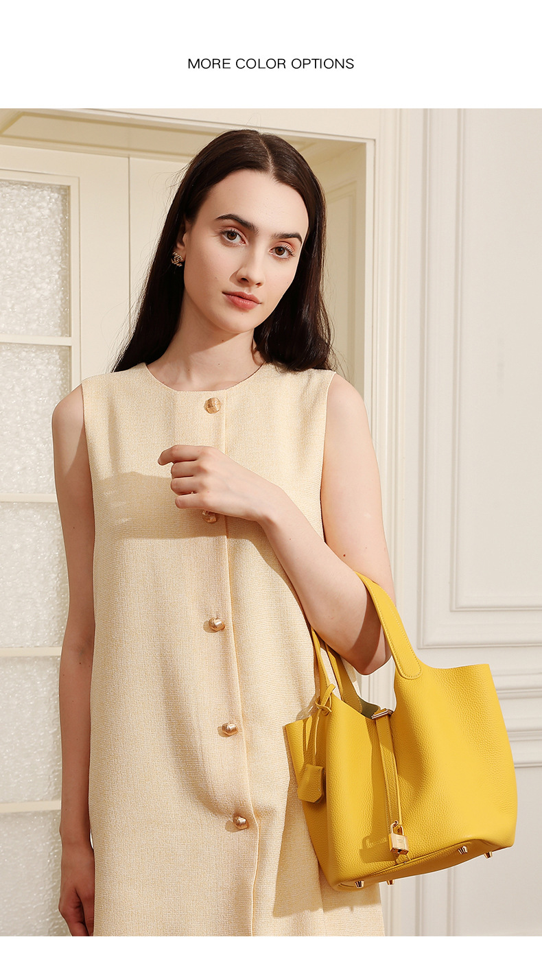 Chiếc túi xách tay kiểu giỏ đi chợ này có kích thước lớn, đựng được nhiều đồ dùng cá nhân. Túi được làm từ chất liệu da thật bền đẹp, bề mặt mịn màng và có độ bóng tự nhiên. Kiểu dáng thùng nước cùng qu xách chắc chắn tạo nên vẻ đẹp tinh tế, phù hợp cho nhiều dịp sử dụng. Bạn có thể dùng tay xách hoặc khoác lên v một cách dễ dàng. Đây là người bạn đồng hành tiện lợi và thiết thực cho những hoạt động thường ngày. | Tên sản phẩm: Túi Xách Nữ Chất Liệu Da Bò - Túi Ví Nữ | Mã sản phẩm: A6570 - Giá: 1.220.000đ | Mã nhà sản xuất: GUDEA-G04Hình ảnh sản phẩm