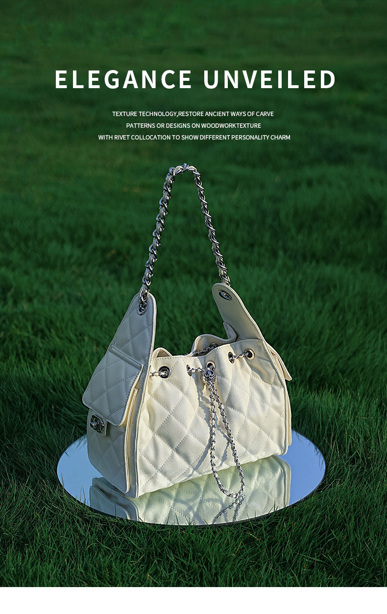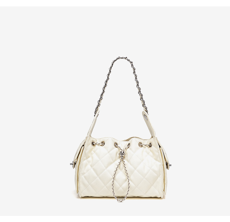 Chiếc túi này có kiểu dáng thùng tròn dễ thương, kèm dây rút điều chỉnh miệng túi và dây đeo chuỗi có thể tháo rời. Mặt ngoài túi được tạo hình vân trứng cá và họa tiết hình thoi nổi rất tinh tế. Chất liệu da thật mang đến cảm giác mềm mại và bền chắc. Bạn có thể đeo chéo người, khoác trên v hoặc xách tay một cách linh hoạt. Thiết kế rộng rãi bên trong giúp chứa được nhiều món đồ dùng cá nhân cần thiết hằng ngày. | Tên sản phẩm: Túi Xách Nữ Chất Liệu Da Bò Kẻ Caro Kẻ Caro - Túi Ví Nữ | Mã sản phẩm: A6582 - Giá: 1.420.000đ | Mã nhà sản xuất: GUDEA-G04Hình ảnh sản phẩm