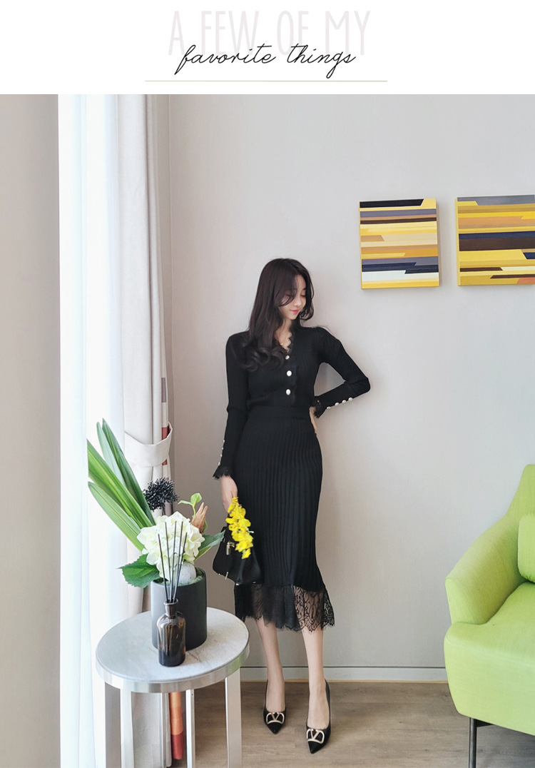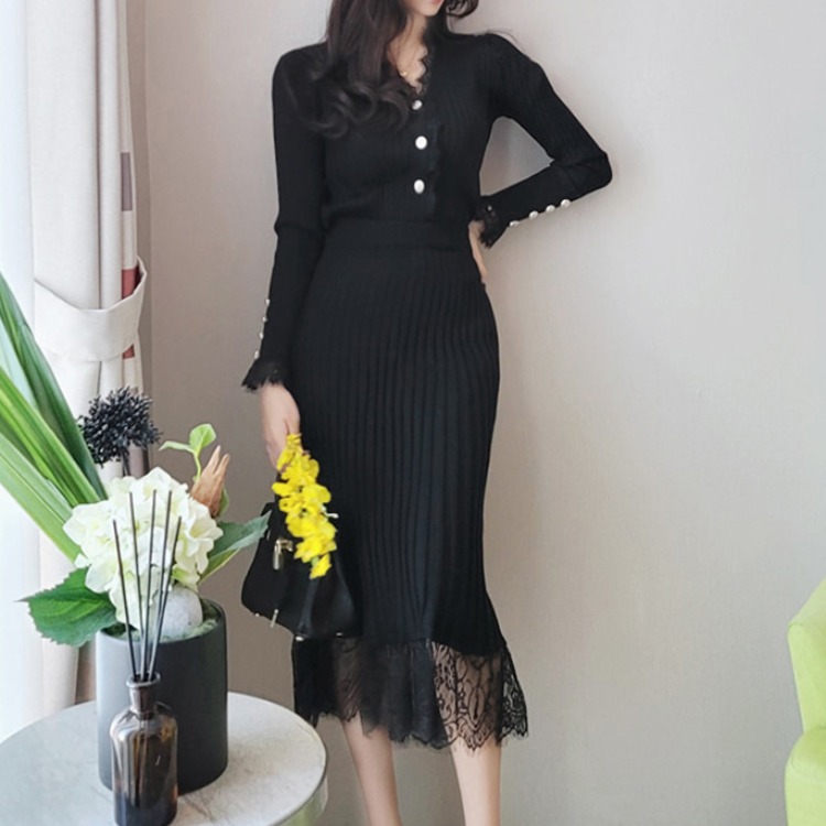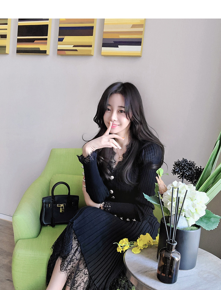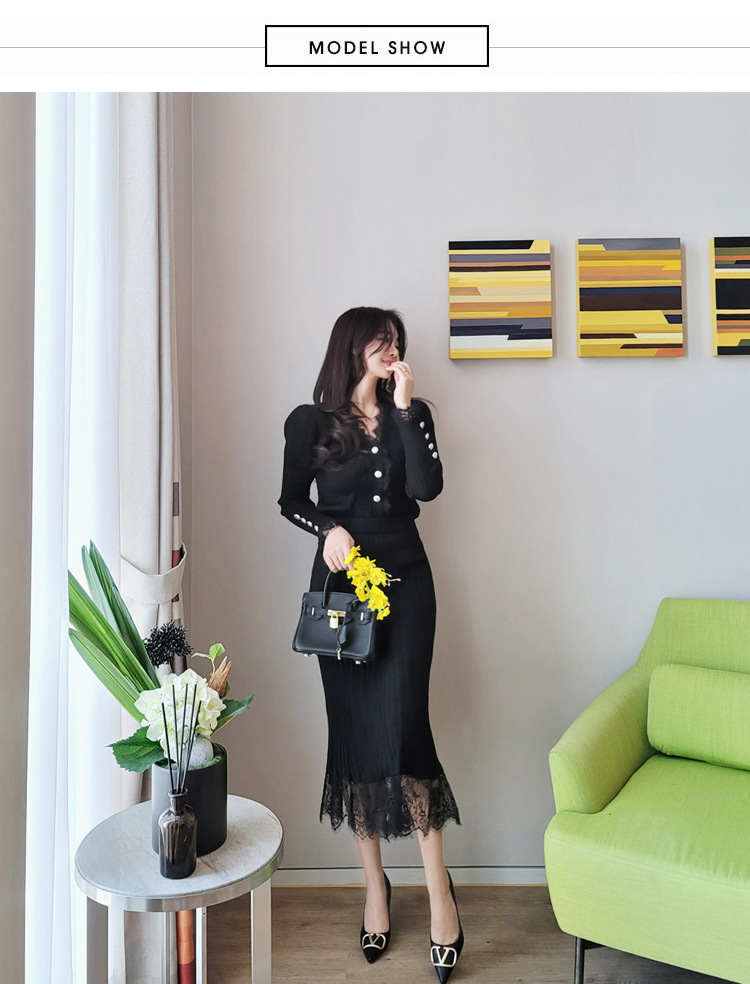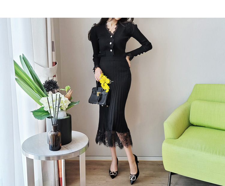 Bộ trang phục nữ tính này gồm áo len cổ chữ V và chân váy dài ngang bắp chân. Chất liệu áo len mềm mại, kết hợp cùng chiếc váy có điểm nhấn là đường viền đăng ten tinh tế. Kiểu dáng phù hợp cho những ngày thu se lạnh, dễ dàng phối đồ và mang đến vẻ ngoại hình thanh lịch. Bạn có thể mặc đi làm, đi chơi hoặc dự những buổi gặp mặt thân mật. | Tên sản phẩm: Áo Len Nữ Chất Liệu Ren Họa Tiết Hoa Cổ Chữ V Hàng Mùa Xuân Thu Đông - Thời Trang Nữ | Mã sản phẩm: a6605 - Giá: 830.000đ | Mã nhà sản xuất: ZHOUT-G03Hình ảnh sản phẩm