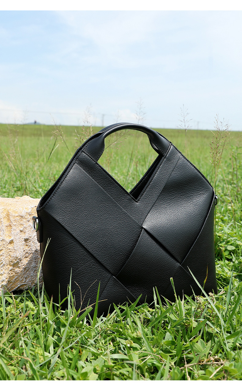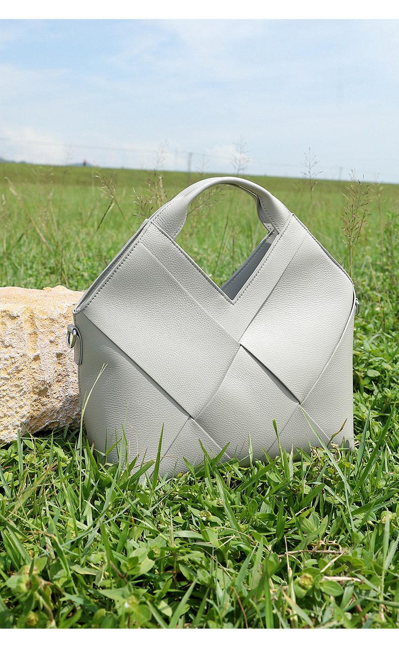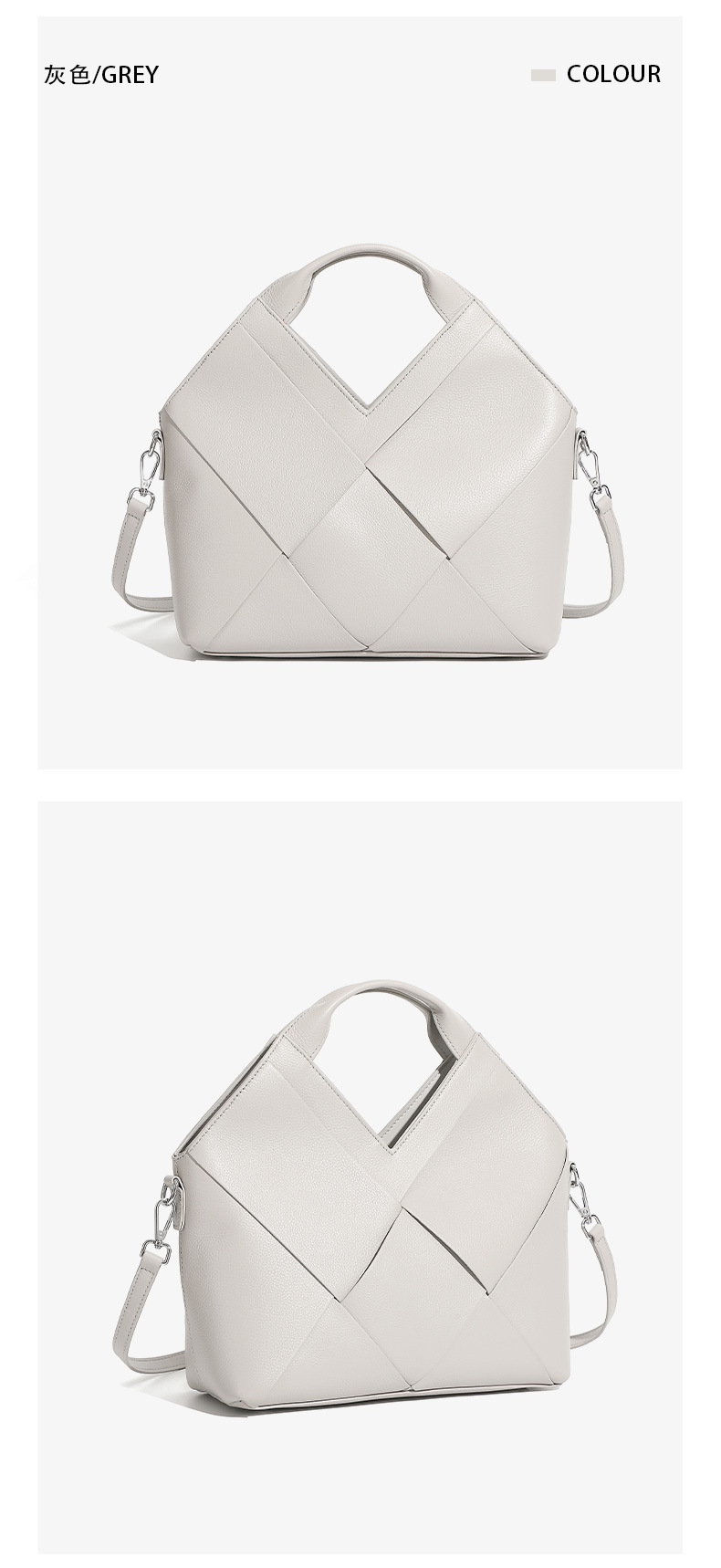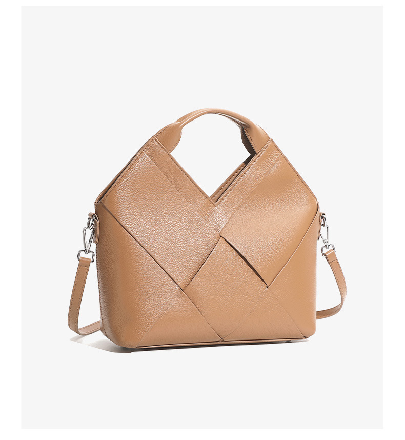 Túi xách tay và đeo chéo dành cho nữ với kiểu dáng đan bện tinh tế. Điểm nhấn nổi bật là phần thiết kế hình tam giác ngược độc đáo phía trước. Sản phẩm được làm từ chất da thật mềm mại, cho cảm giác cầm nắm dễ chịu. Bạn có thể dùng như túi xách tay hoặc đeo chéo một cách linh hoạt. Kiểu dáng thời trang, phù hợp để sử dụng trong nhiều hoàn cảnh khác nhau. | Tên sản phẩm: Túi Xách Nữ Chất Liệu Da Bò - Túi Ví Nữ | Mã sản phẩm: A6644 - Giá: 1.520.000đ | Mã nhà sản xuất: GUDEA-G04Hình ảnh sản phẩm