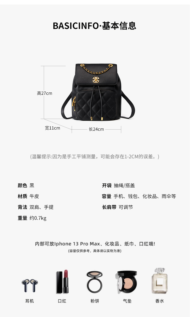 Ba lô đeo v kiểu dáng nhỏ gọn, mang phong cách thanh lịch, phù hợp cho cả đi làm và những chuyến du lịch. Chất vải bền đẹp cùng điểm nhấn là dây đeo chuỗi hạt tạo vẻ tinh tế. Ngăn chính rộng rãi đựng được ví và các vật dụng cần thiết. Có thể đeo như balo thông thường hoặc xách tay bằng dây chuỗi. Một món phụ kiện tiện lợi và nhẹ nhàng dành cho bạn. | Tên sản phẩm: Túi Đeo Vai Nữ - Túi Ví Nữ | Mã sản phẩm: A6660 - Giá: 1.350.000đ | Mã nhà sản xuất: GUDEA-G04Hình ảnh sản phẩm
