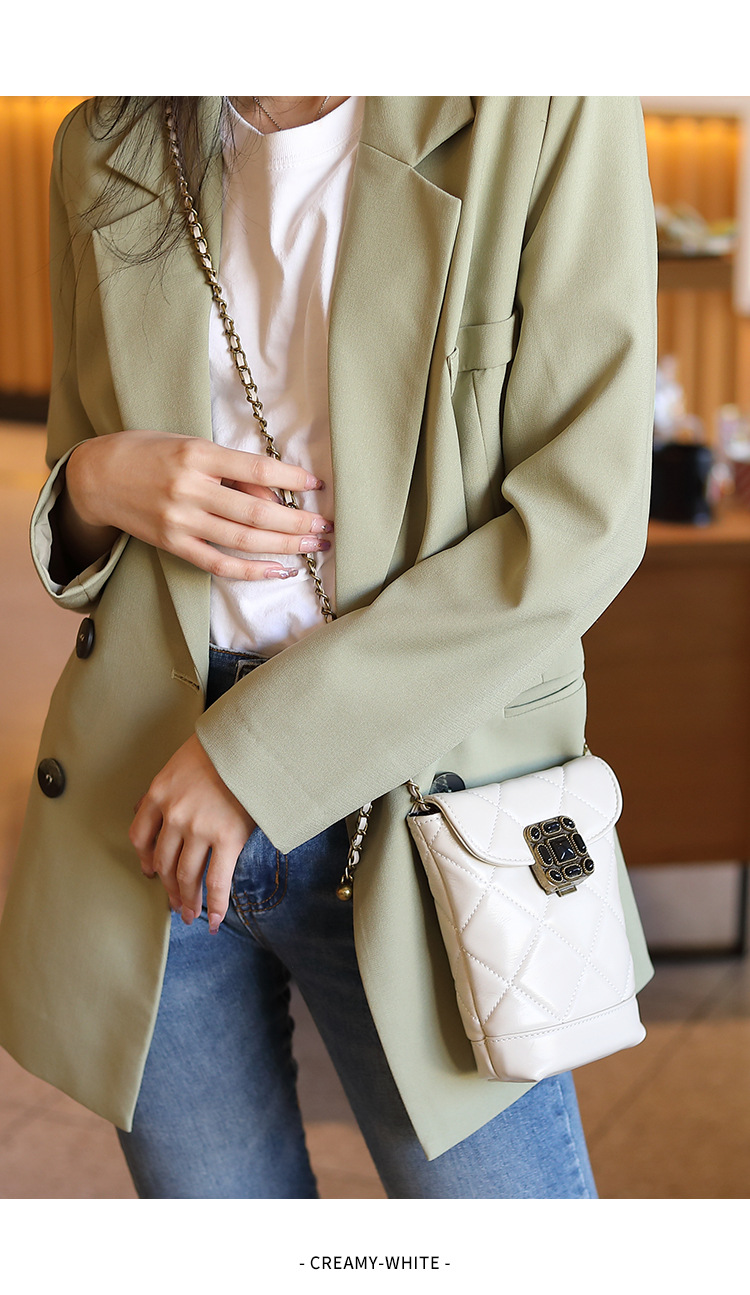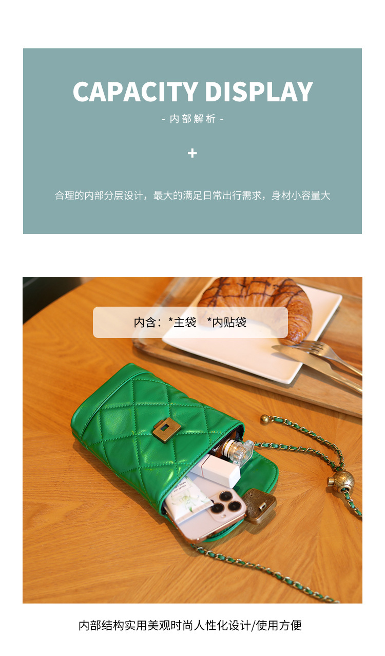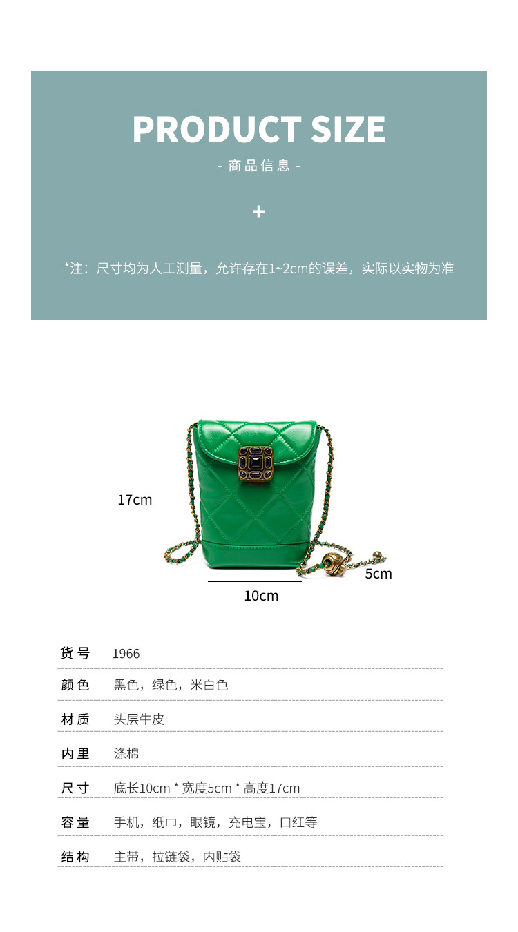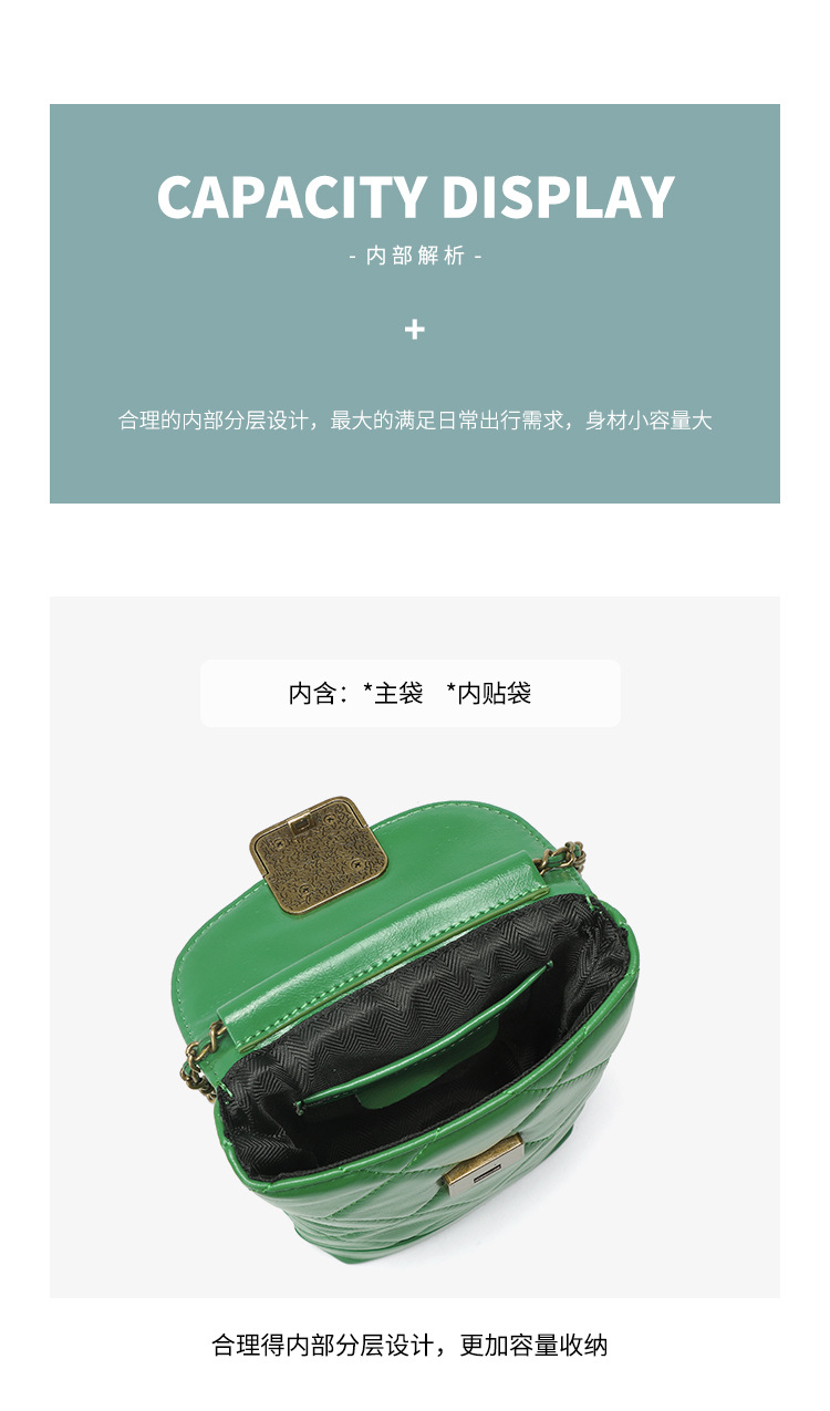 Túi đeo chéo dành cho nữ với dây xích và khóa cài hình viên ngọc tr nhỏ xinh. Mặt túi được điểm xuyết bằng đường may hình viên ngọc cùng họa tiết vân kim cương tinh tế. Chất liệu da mềm mịn, bền đẹp theo thời gian. Thiết kế nhỏ gọn, vừa vặn cho điện thoại và một số vật dụng cá nhân. Chỉ cần đeo dây túi lên v hoặc khoác chéo người là đã sẵn sàng để sử dụng. | Tên sản phẩm: Túi Xách Nữ Chất Liệu Da Bò Kẻ Caro Kẻ Caro - Túi Ví Nữ | Mã sản phẩm: A6715 - Giá: 870.000đ | Mã nhà sản xuất: GUDEA-G03Hình ảnh sản phẩm