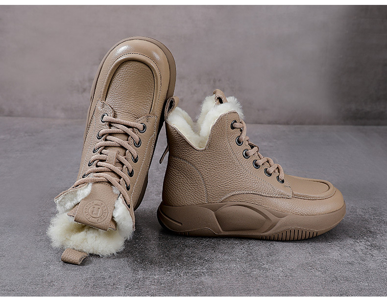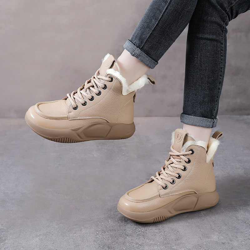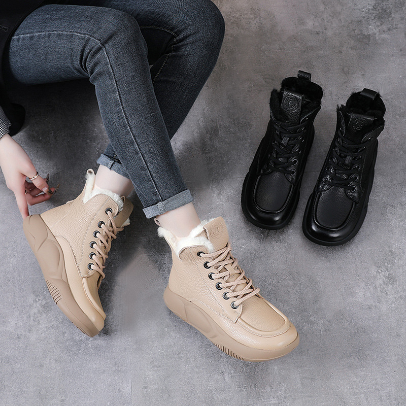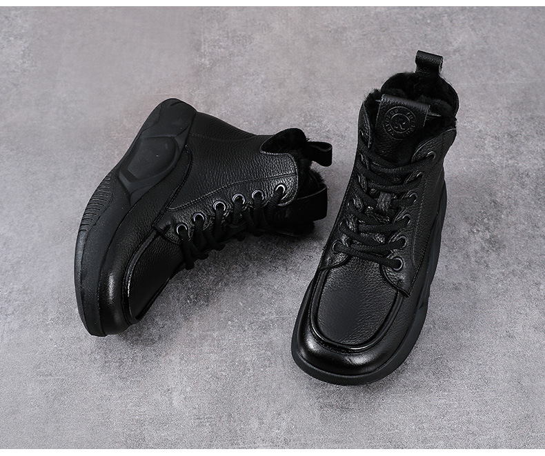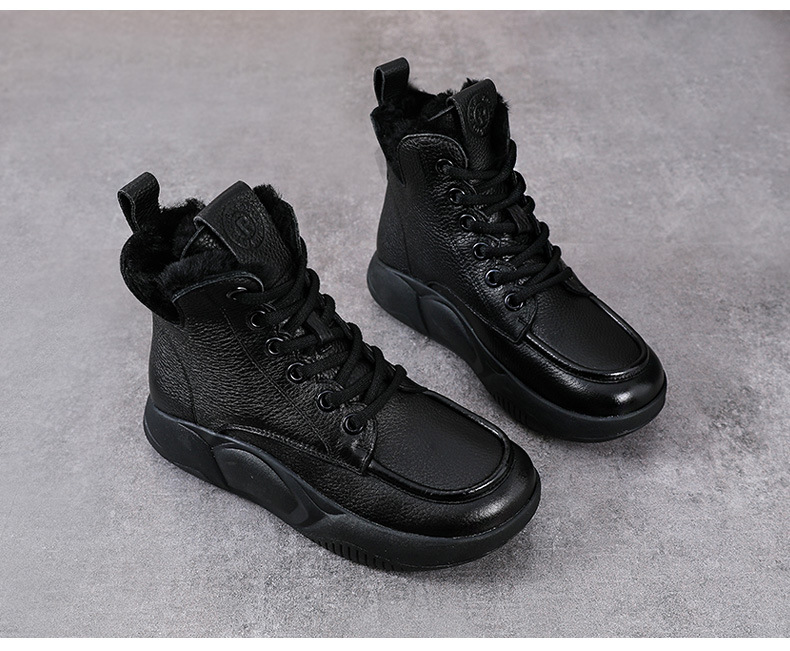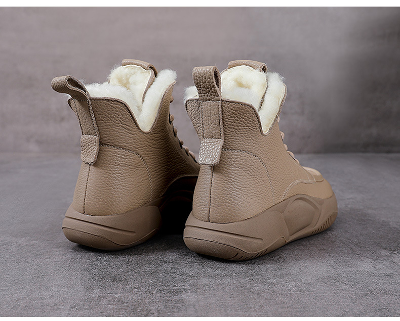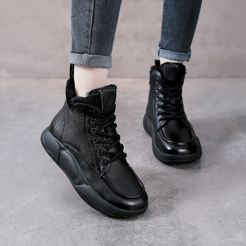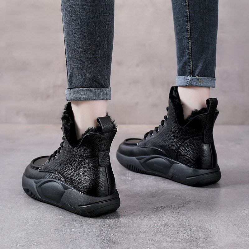 Giày được làm từ chất liệu da thật mềm mại kết hợp lớp lót bên trong bằng len ấm áp, giúp giữ nhiệt tốt trong tiết trời lạnh. Kiểu dáng cổ cao kèm dây buộc truyền thống tạo điểm nhấn năng động. Phần đế dày giúp bảo vệ đôi chân và tăng độ bền. Sản phẩm phù hợp mang khi dạo phố, đi làm hoặc kết hợp với nhiều trang phục khác nhau. Có thể vệ sinh bề mặt bằng khăn ẩm và để nơi khô ráo. | Tên sản phẩm: Giày Boot Martin Nữ Chất Liệu Vải Bông Đế Cao Hàng Mùa Xuân Thu Đông - Giày Dép Nữ | Mã sản phẩm: a6755 - Giá: 1.970.000đ | Mã nhà sản xuất: WEDS-G05Hình ảnh sản phẩm