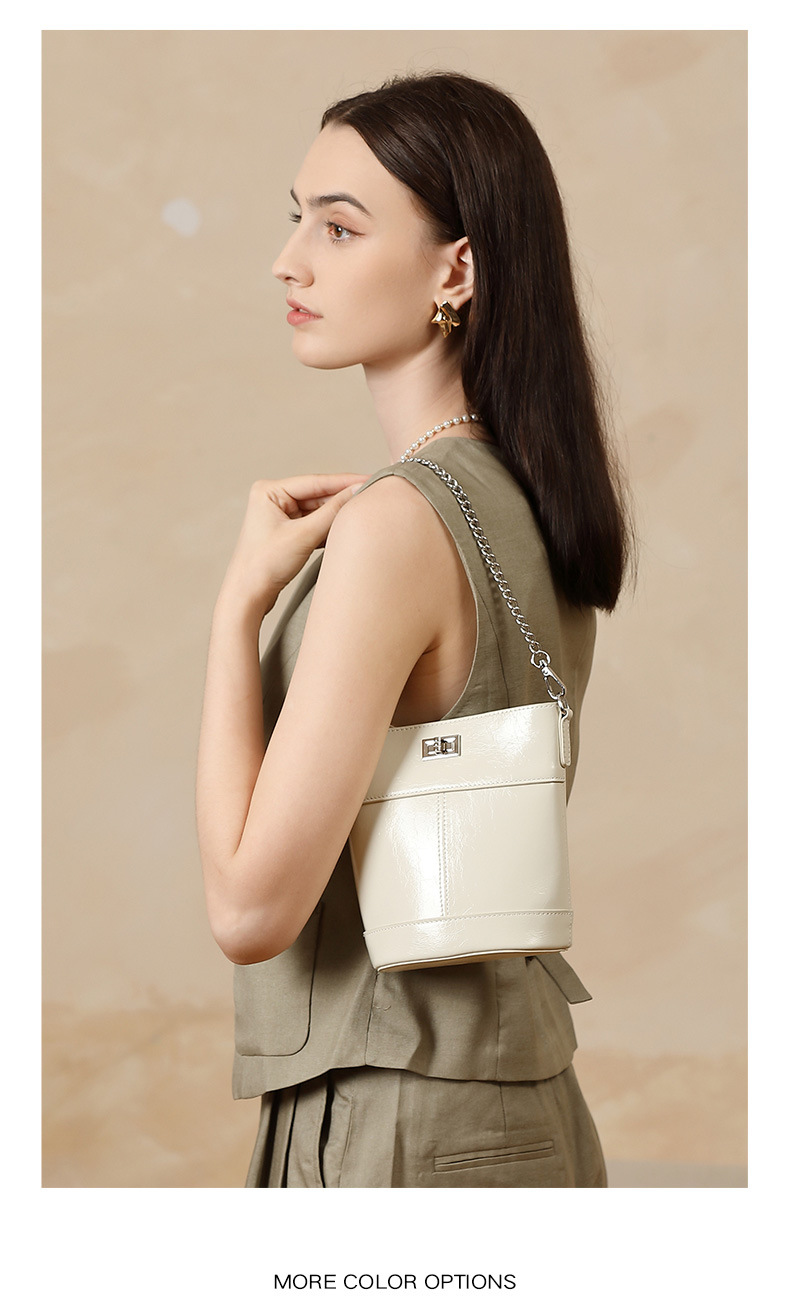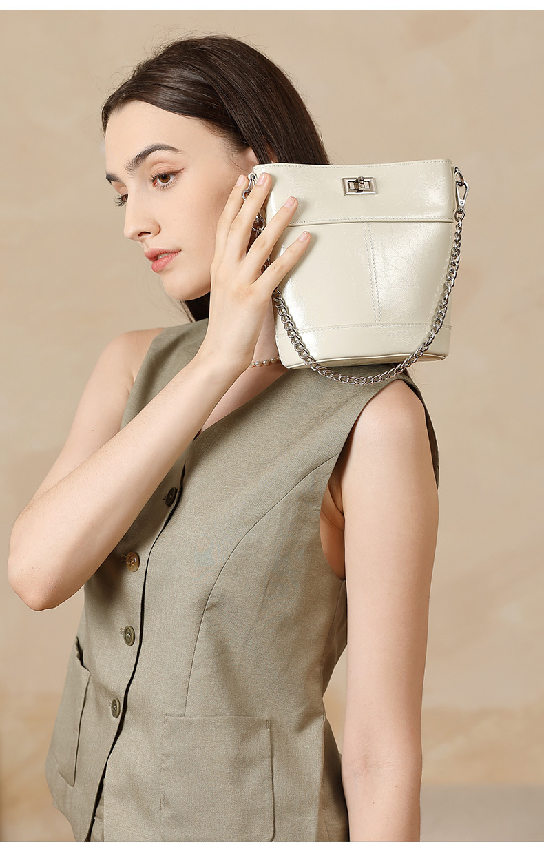 Chiếc túi xách kiểu dáng thùng nước nhỏ gọn, được làm từ chất da bò mềm mại có lớp phủ dầu sáp tự nhiên. Thiết kế đơn giản nhưng thời thượng, dễ dàng phối hợp với nhiều trang phục. Bên trong đủ rộng để đựng điện thoại, ví tiền và các vật dụng cá nhân cần thiết. Có thể đeo trên v hoặc xách tay một cách thoải mái, rất tiện lợi cho những chuyến đi chơi trong ngày. | Tên sản phẩm: Túi Xách Nữ Chất Liệu Da Bò - Túi Ví Nữ | Mã sản phẩm: A6771 - Giá: 1.050.000đ | Mã nhà sản xuất: GUDEA-G03Hình ảnh sản phẩm