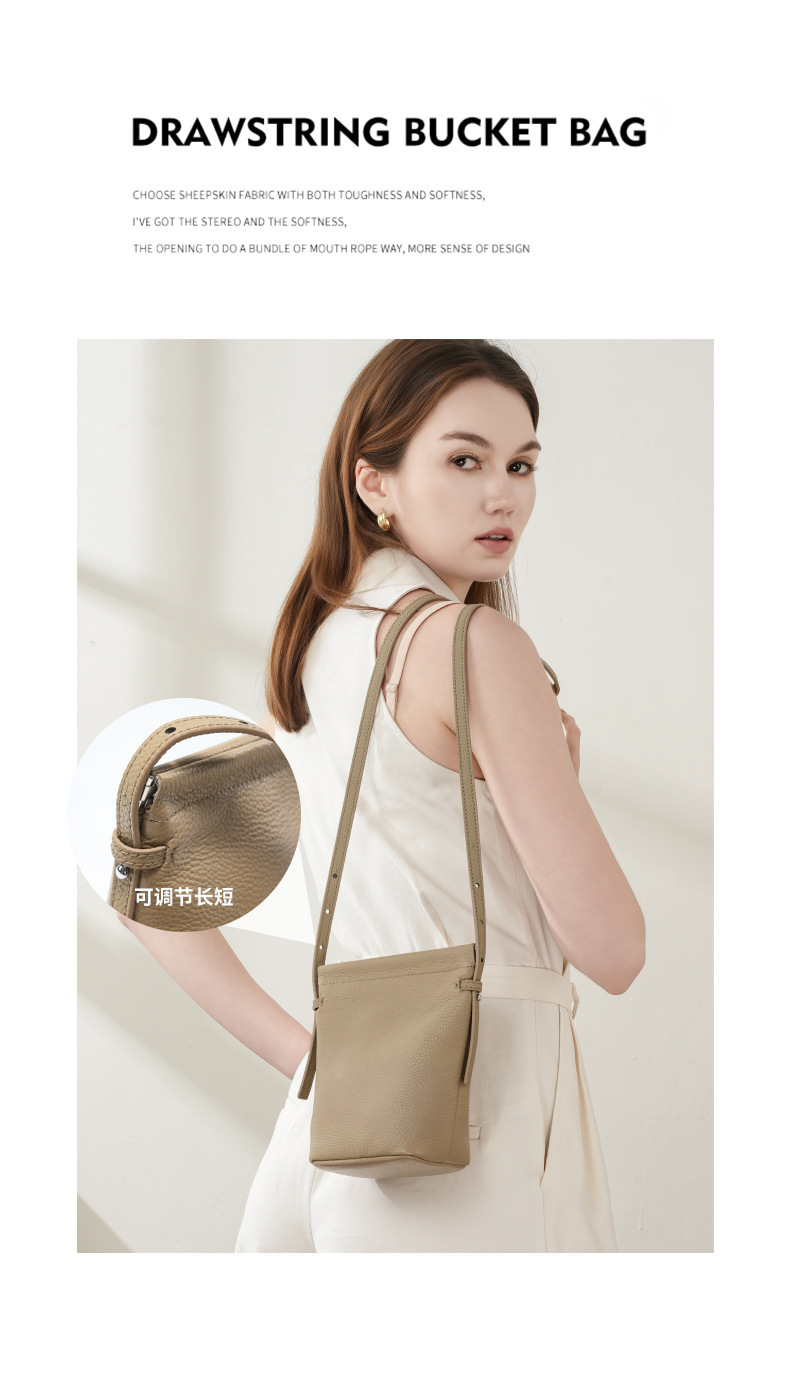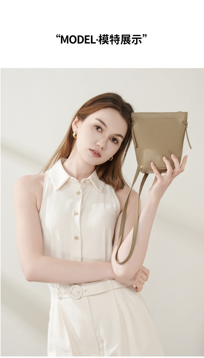 Chiếc túi này có kiểu dáng thùng nước nhỏ gọn, dây đeo chéo tiện lợi, rất phù hợp để mang theo. Túi được làm từ chất liệu da bò mềm mại, bền chắc theo thời gian. Thiết kế túi nhỏ nhắn, trông thanh lịch và rất nhẹ nhàng khi sử dụng. Bạn có thể đeo túi chéo qua người hoặc xách tay đều rất hợp thời. Dung tích túi vừa đủ để đựng điện thoại màn hình lớn, ví nhỏ và một số vật dụng cá nhân cần thiết khác. | Tên sản phẩm: Túi Xách Nữ Chất Liệu Da Bò - Túi Ví Nữ | Mã sản phẩm: A6783 - Giá: 750.000đ | Mã nhà sản xuất: GUDEA-G02Hình ảnh sản phẩm
