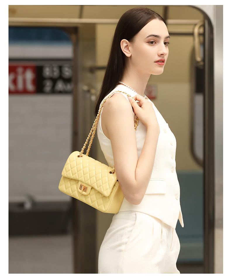 Túi xách nữ thiết kế kiểu dáng lưới tổ ong đan nổi, kết hợp dây đeo chuỗi hạt lấp lánh. Chất liệu từ da bò thật mềm mại, cho cảm giác cầm chắc chắn. Sản phẩm mang phong cách thanh lịch, phù hợp nhiều dịp sử dụng. Có thể đeo v hoặc mang chéo người một cách linh hoạt. Dễ dàng phối cùng các trang phục khác nhau để tạo điểm nhấn. Kích thước vừa phải, đựng được các vật dụng cần thiết như ví, điện thoại. | Tên sản phẩm: Túi Xách Nữ Chất Liệu Da Bò Kẻ Caro Kẻ Caro - Túi Ví Nữ | Mã sản phẩm: A6785 - Giá: 1.390.000đ | Mã nhà sản xuất: GUDEA-G04Hình ảnh sản phẩm