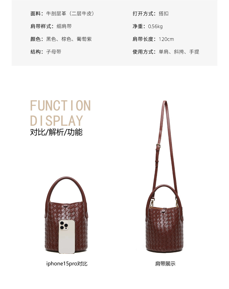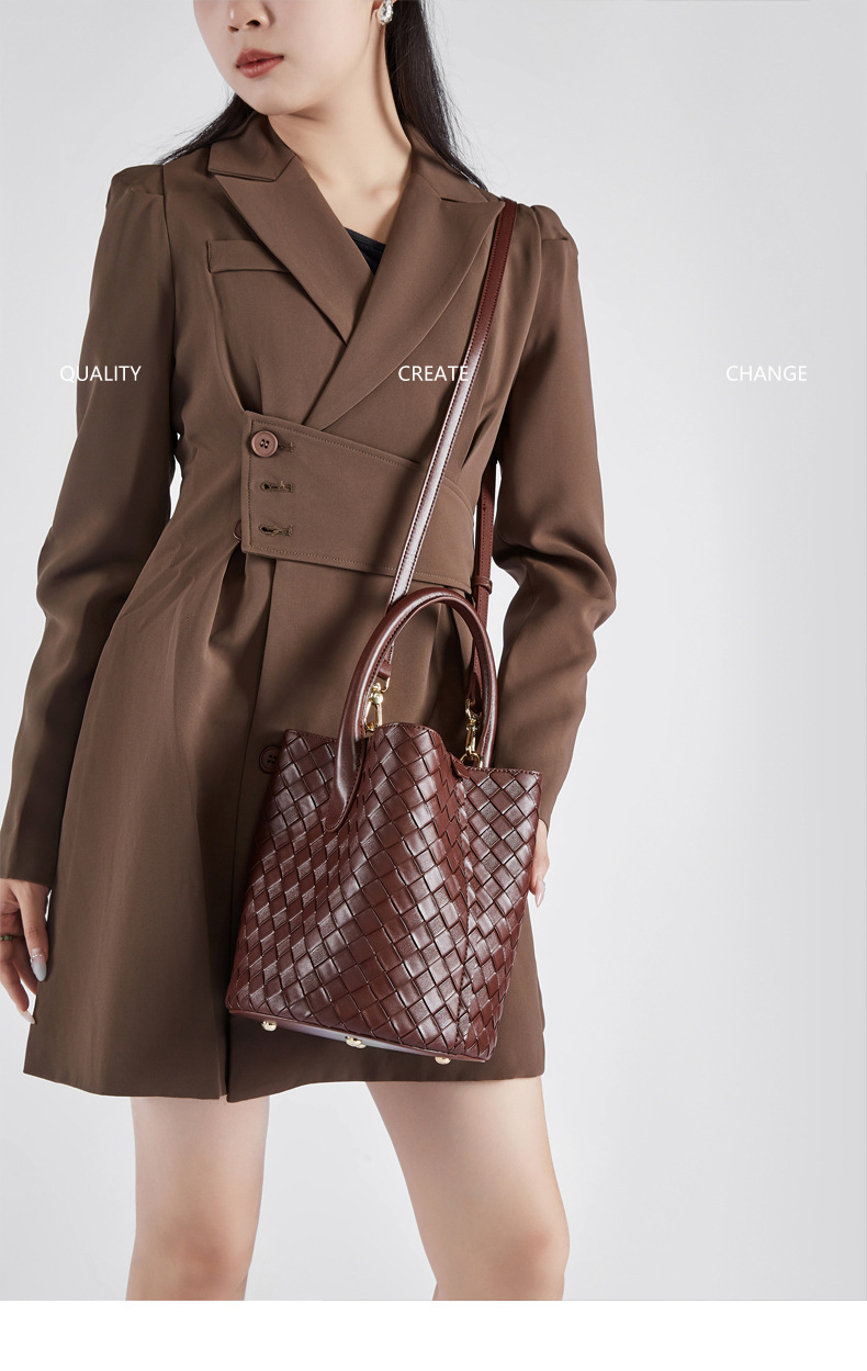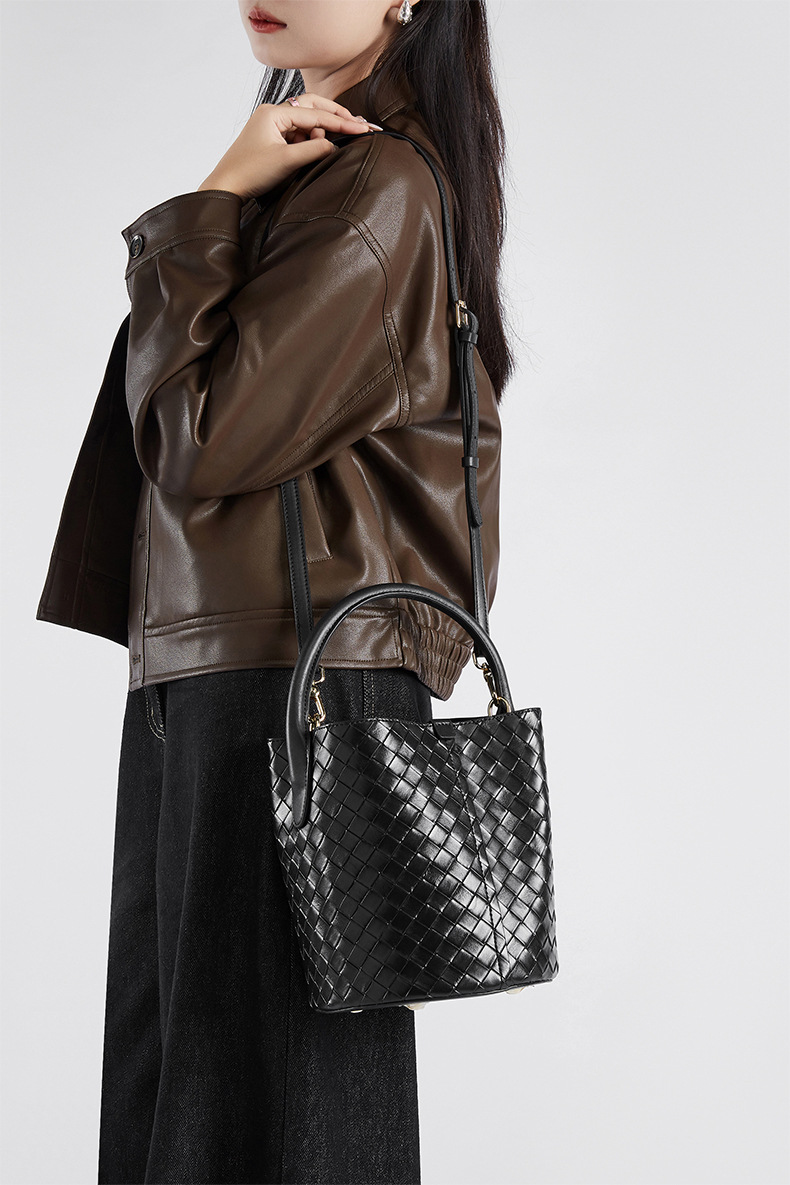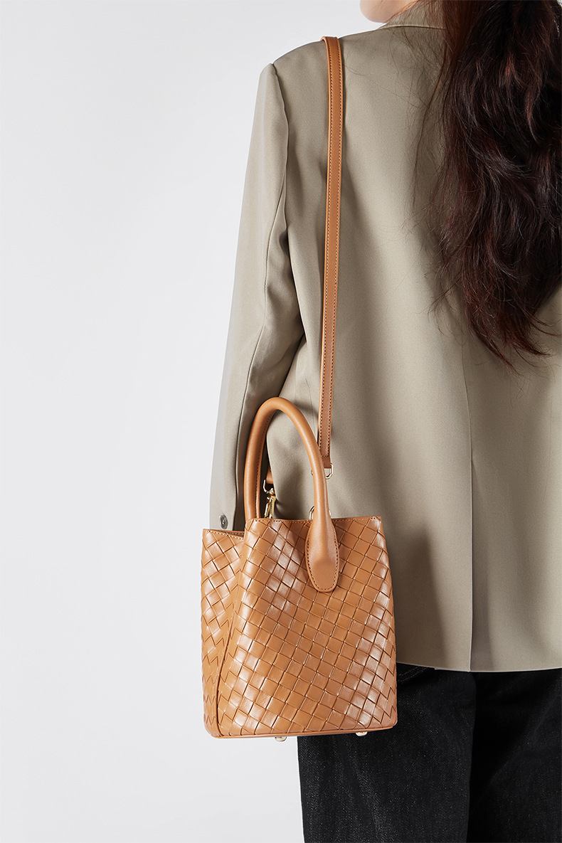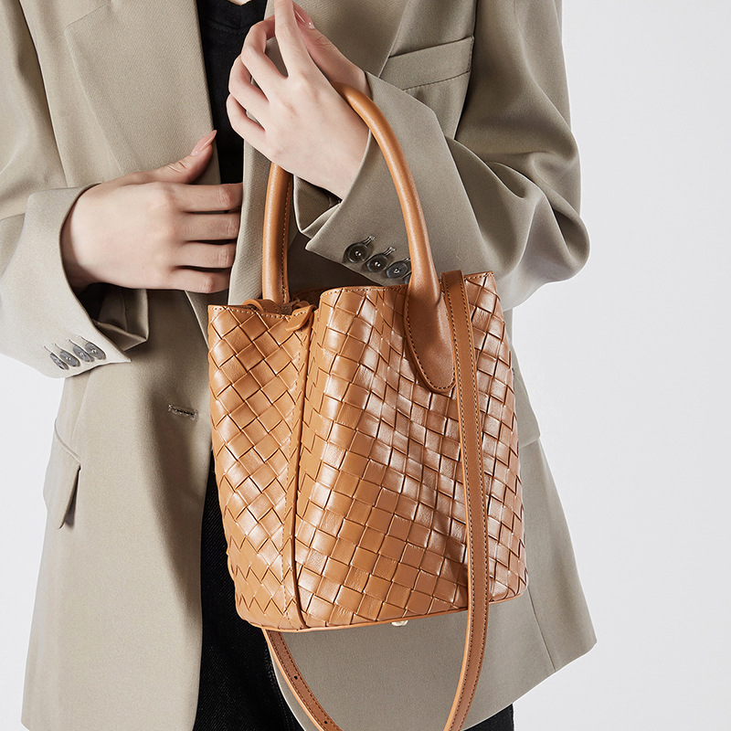 Túi xách tay và đeo chéo dành cho nữ, kiểu dáng túi thùng kết hợp họa tiết đan bện tinh tế. Sản phẩm làm từ chất liệu da thật, mang đến cảm giác mềm mại và bền chắc. Thiết kế này rất dễ phối hợp với nhiều loại trang phục khác nhau. Bạn có thể xách tay hoặc đeo chéo một cách linh hoạt cho những hoạt động thường ngày, từ đi làm đến dạo phố. Đây là mẫu túi mới, phù hợp để sử dụng trong nhiều dịp. | Tên sản phẩm: Túi Xách Nữ Chất Liệu Da Bò - Túi Ví Nữ | Mã sản phẩm: A6792 - Giá: 1.090.000đ | Mã nhà sản xuất: GUDEA-G03Hình ảnh sản phẩm