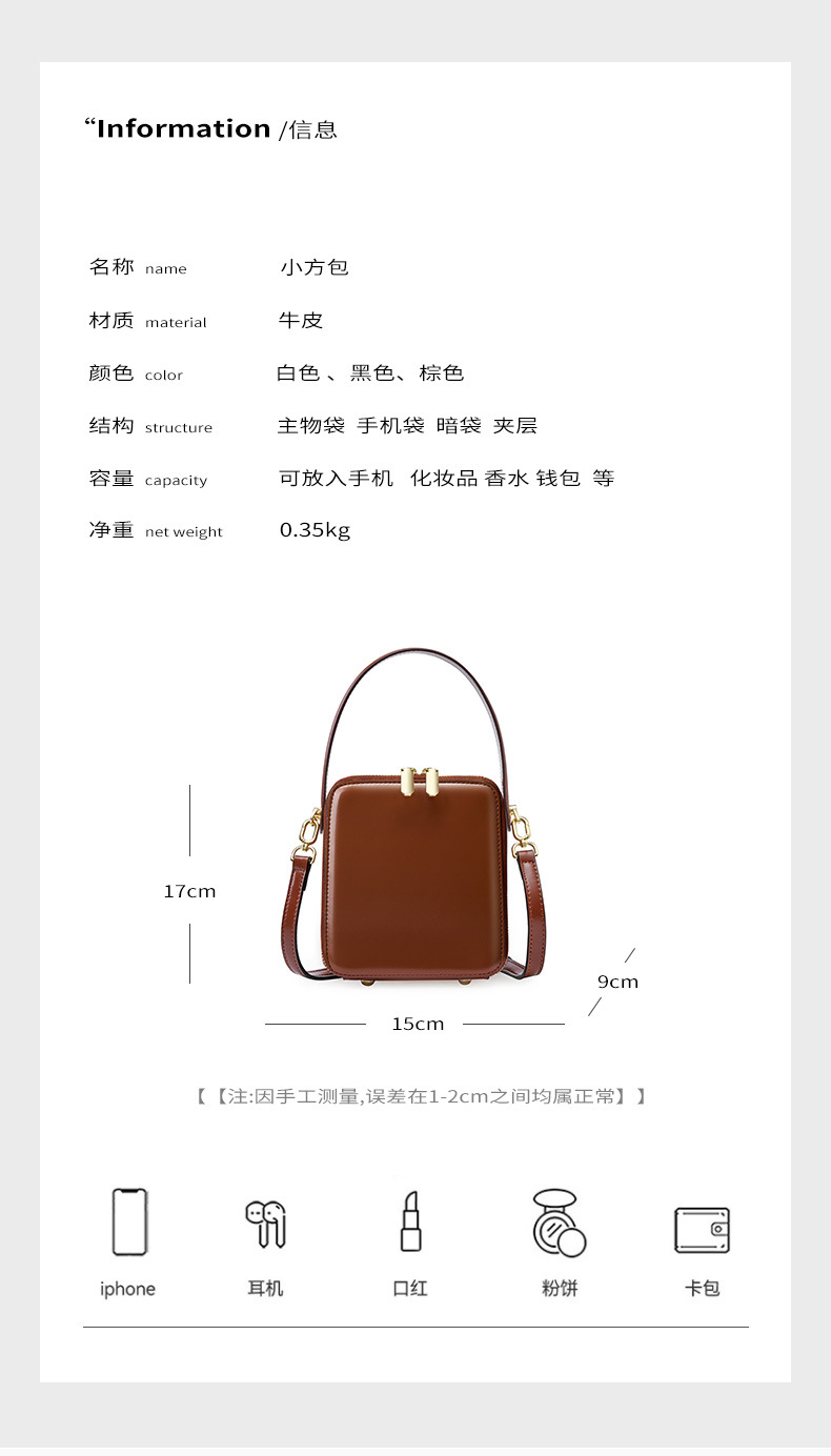 Chiếc túi xách mới dành cho nữ với thiết kế hộp vuông vắn, thanh lịch. Sản phẩm được làm từ chất liệu da thật, cho cảm giác mềm mại và bền bỉ. Bạn có thể dễ dàng phối đồ nhờ kiểu dáng đeo chéo, xách tay hoặc mang v linh hoạt. Kích thước nhỏ gọn nhưng vẫn đủ để đựng các vật dụng cần thiết hằng ngày như ví, điện thoại và một ít mỹ phẩm. Rất phù hợp cho cả những buổi đi làm, đi chơi hay dự tiệc. | Tên sản phẩm: Túi Xách Nữ Chất Liệu Da Bò - Túi Ví Nữ | Mã sản phẩm: A6797 - Giá: 1.140.000đ | Mã nhà sản xuất: GUDEA-G04Hình ảnh sản phẩm