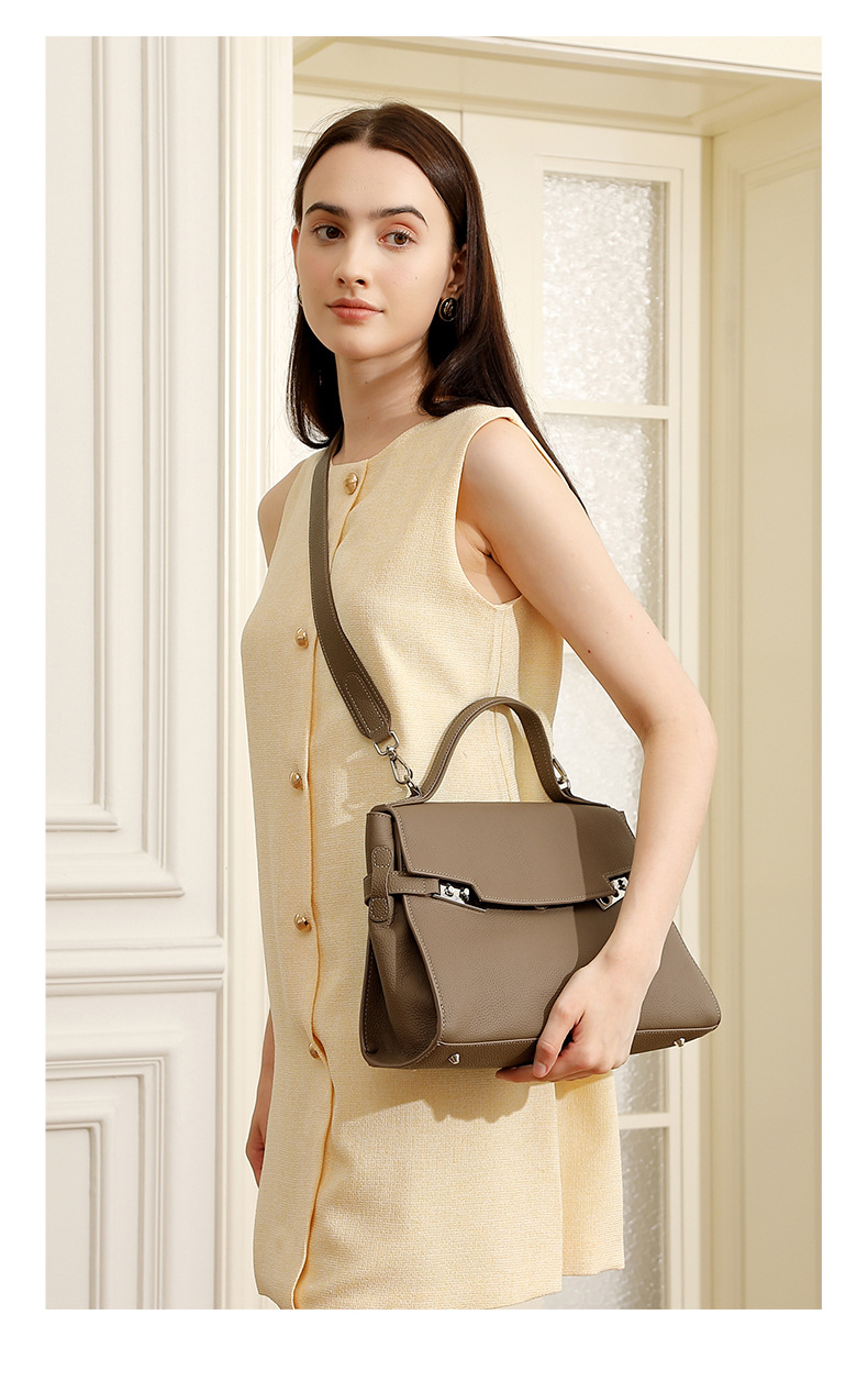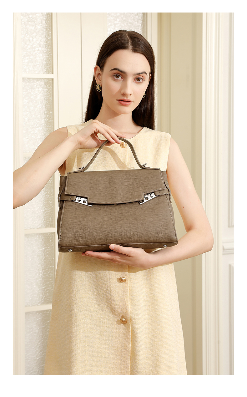 Túi xách tay dành cho nữ, kiểu dáng mới cho mùa thu. Sản phẩm được làm từ chất liệu da thật, mang đến cảm giác mềm mại và bền đẹp. Thiết kế đơn giản, phong cách trẻ trung và dễ phối đồ. Túi có không gian rộng rãi, đựng được nhiều vật dụng cá nhân cần thiết. Bạn có thể xách tay hoặc khoác v một cách thoải mái. Sản phẩm phù hợp cho việc đi làm, đi chơi hoặc dạo phố hàng ngày. | Tên sản phẩm: Túi Xách Nữ Chất Liệu Da Bò Hàng Mùa Xuân Thu Đông - Túi Ví Nữ | Mã sản phẩm: A6826 - Giá: 1.520.000đ | Mã nhà sản xuất: GUDEA-G04Hình ảnh sản phẩm