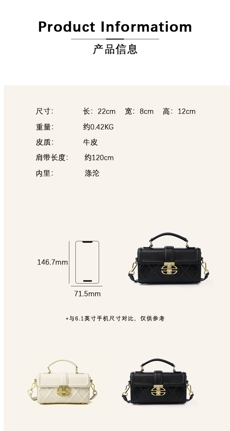 Túi xách nữ tính với kiểu dáng túi nhỏ đeo chéo thời thượng. Mặt túi điểm xuyến họa tiết ô vuông nổi tinh tế, tạo điểm nhấn ấn tượng. Chất liệu bằng da thật cho cảm giác mềm mại và bền bỉ theo thời gian. Thiết kế nhỏ gọn nhưng vẫn đựng vừa ví, điện thoại và một số vật dụng cá nhân cần thiết. Dây đeo có thể điều chỉnh linh hoạt, phù hợp để mang theo trong nhiều dịp khác nhau. | Tên sản phẩm: Túi Xách Nữ Chất Liệu Da Bò Kẻ Caro Kẻ Caro - Túi Ví Nữ | Mã sản phẩm: A6849 - Giá: 1.190.000đ | Mã nhà sản xuất: GUDEA-G04Hình ảnh sản phẩm