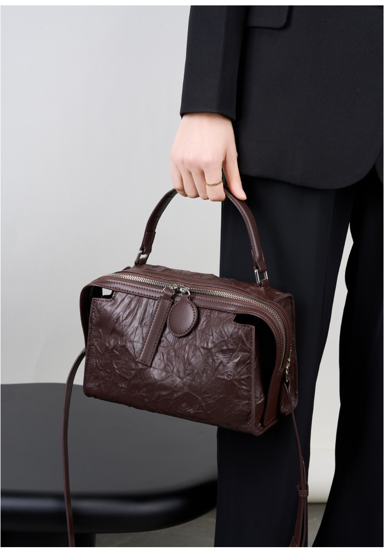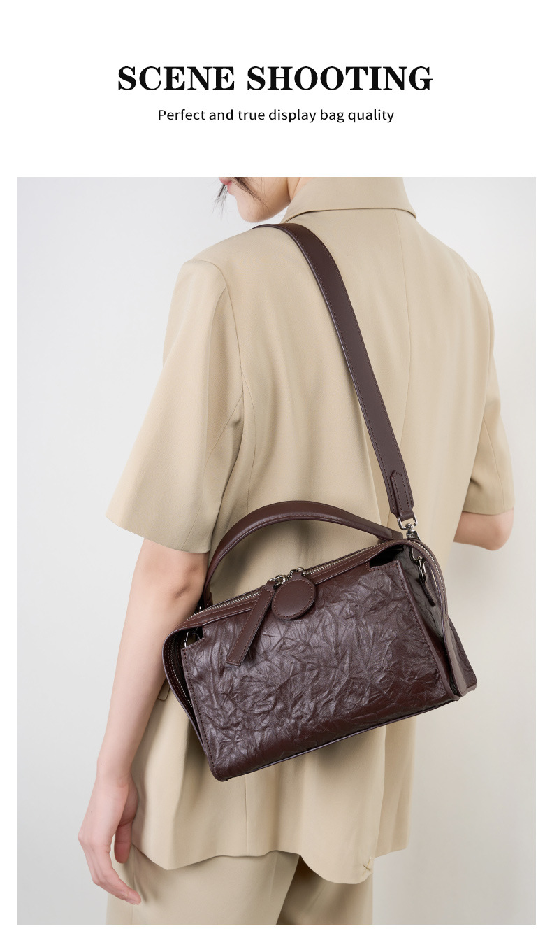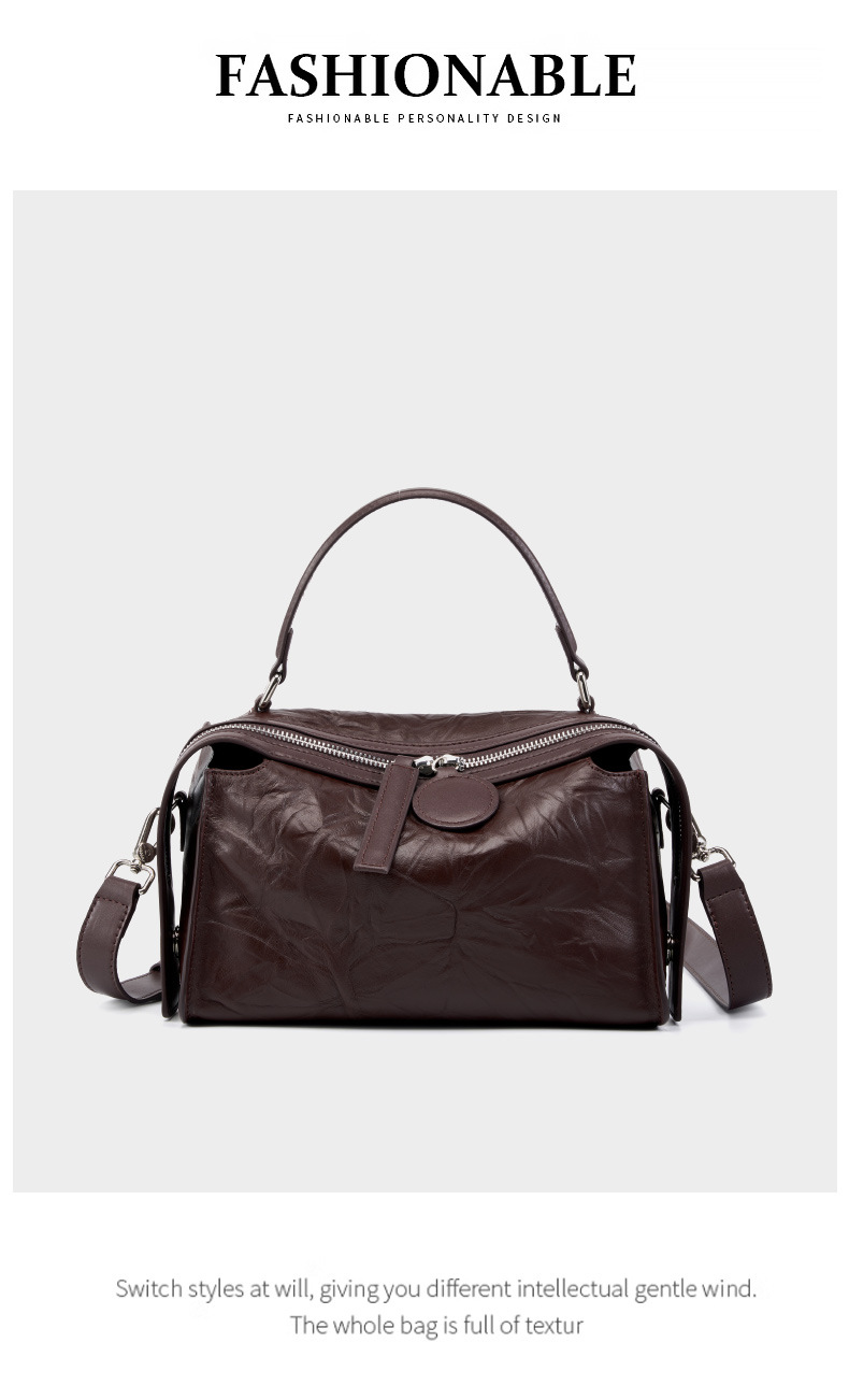Túi xách kiểu dáng Boston mới ra mắt, được làm từ chất liệu da bò thật với bề mặt vân nhăn tự nhiên tạo cảm giác mềm mại như gối. Thiết kế phù hợp cho cả mùa ấm và mùa mát. Dáng túi ôm khít, kèm qu xách và qu đeo tay linh hoạt. Bên trong rộng rãi, đựng được nhiều vật dụng cá nhân như ví, điện thoại. Có thể dùng làm túi đi làm hoặc túi xách hằng ngày. | Tên sản phẩm: Túi Xách Nữ Chất Liệu Da Bò Hàng Mùa Hè - Túi Ví Nữ | Mã sản phẩm: A6860 - Giá: 1.250.000đ | Mã nhà sản xuất: GUDEA-G04Hình ảnh sản phẩm