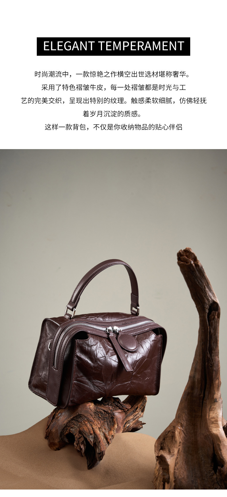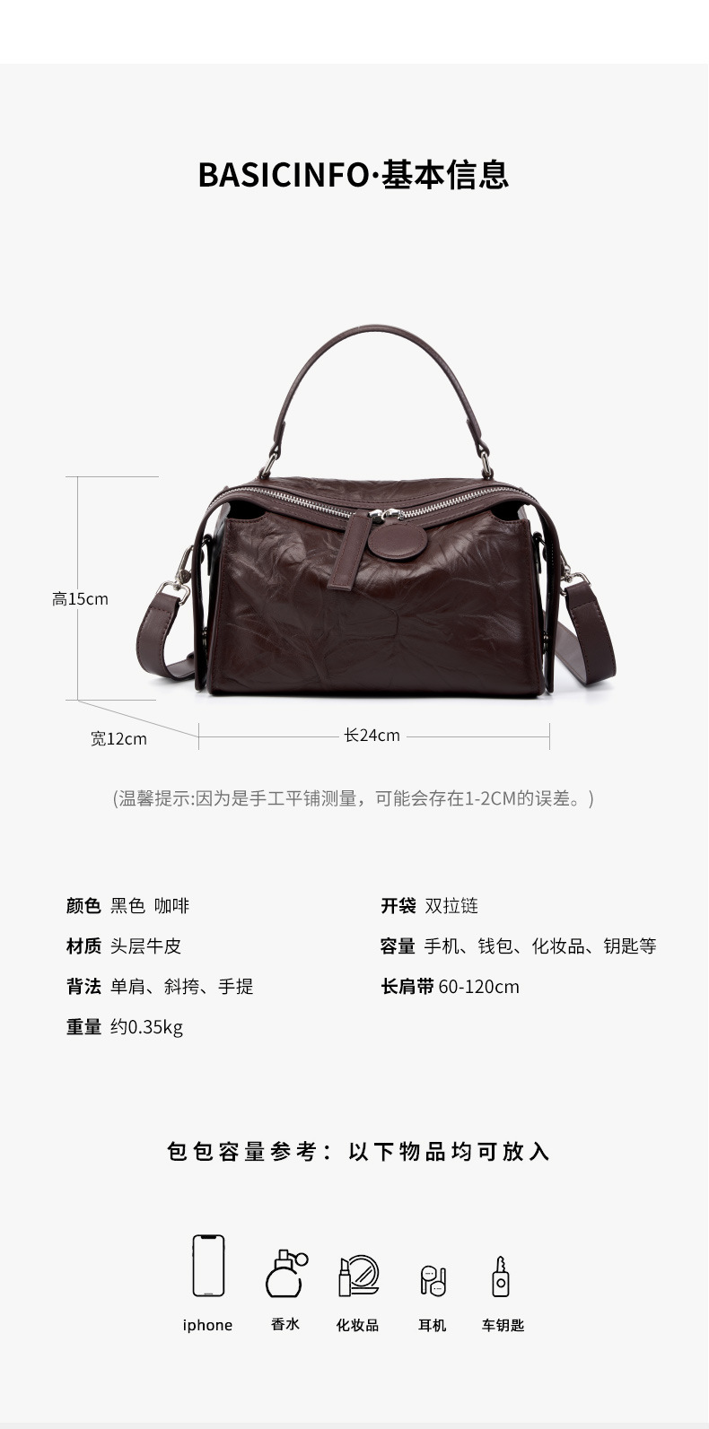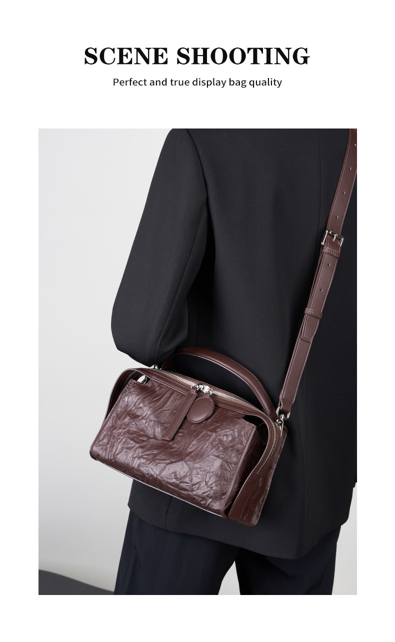 Túi xách kiểu dáng Boston mới ra mắt, được làm từ chất liệu da bò thật với bề mặt vân nhăn tự nhiên tạo cảm giác mềm mại như gối. Thiết kế phù hợp cho cả mùa ấm và mùa mát. Dáng túi ôm khít, kèm qu xách và qu đeo tay linh hoạt. Bên trong rộng rãi, đựng được nhiều vật dụng cá nhân như ví, điện thoại. Có thể dùng làm túi đi làm hoặc túi xách hằng ngày. | Tên sản phẩm: Túi Xách Nữ Chất Liệu Da Bò Hàng Mùa Hè - Túi Ví Nữ | Mã sản phẩm: A6860 - Giá: 1.250.000đ | Mã nhà sản xuất: GUDEA-G04Hình ảnh sản phẩm