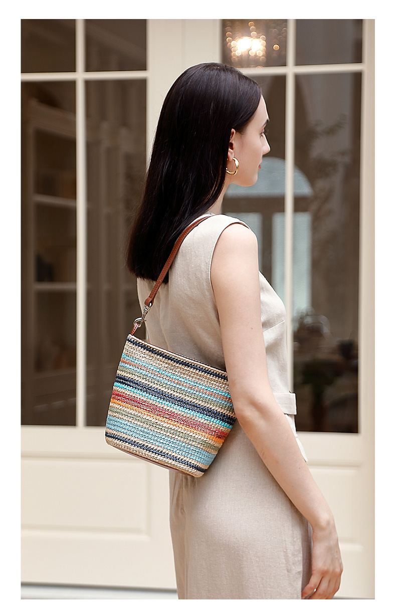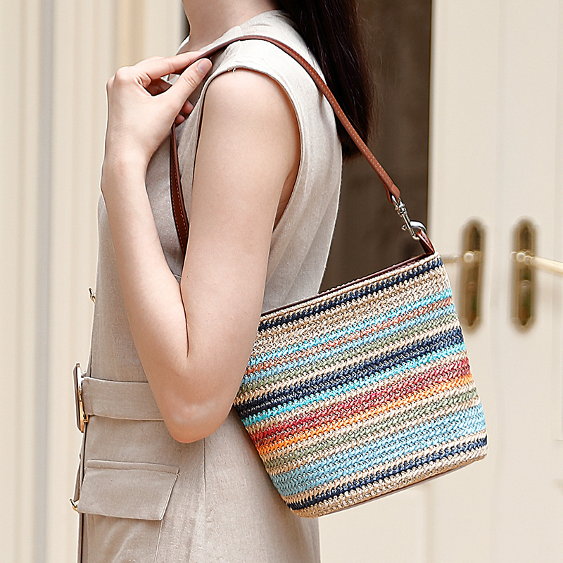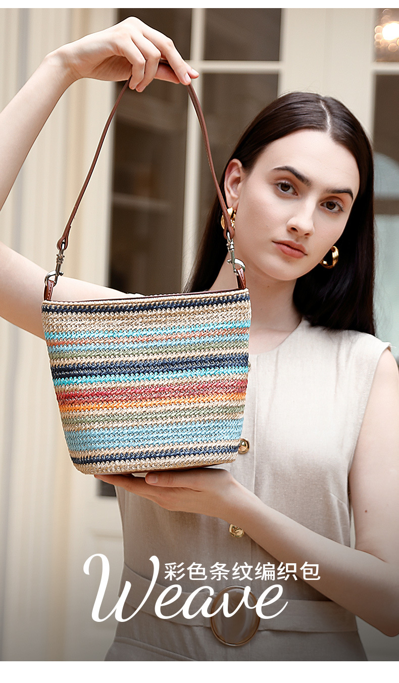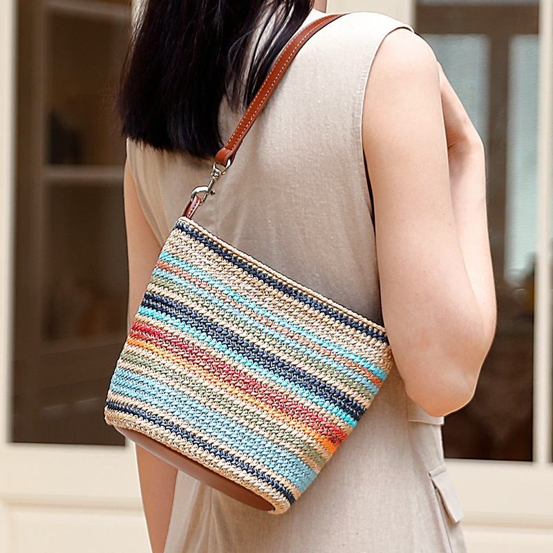 Chiếc túi mới cho mùa hè này có kiểu dáng thời trang với các mảng màu phối hợp độc đáo. Chất liệu chính từ sợi cây tự nhiên đan thủ công, điểm xuyến phần qu và viền bằng da mềm bền lâu. Thiết kế dáng túi lớn rất tiện lợi, chứa được nhiều đồ dùng cá nhân phù hợp cho việc đi làm hay dạo phố. Bạn có thể dùng như túi xách tay hoặc mang trên v. Sản phẩm kết hợp hài hòa vẻ đẹp mộc mạc và nét hiện đại. | Tên sản phẩm: Túi Xách Nữ Chất Liệu Da Bò Hàng Mùa Hè - Túi Ví Nữ | Mã sản phẩm: A6861 - Giá: 980.000đ | Mã nhà sản xuất: GUDEA-G03Hình ảnh sản phẩm
