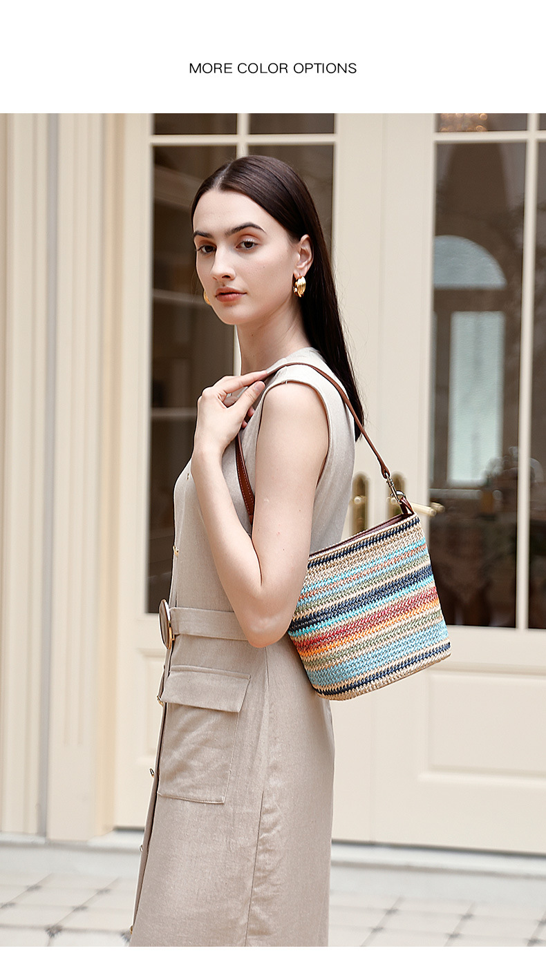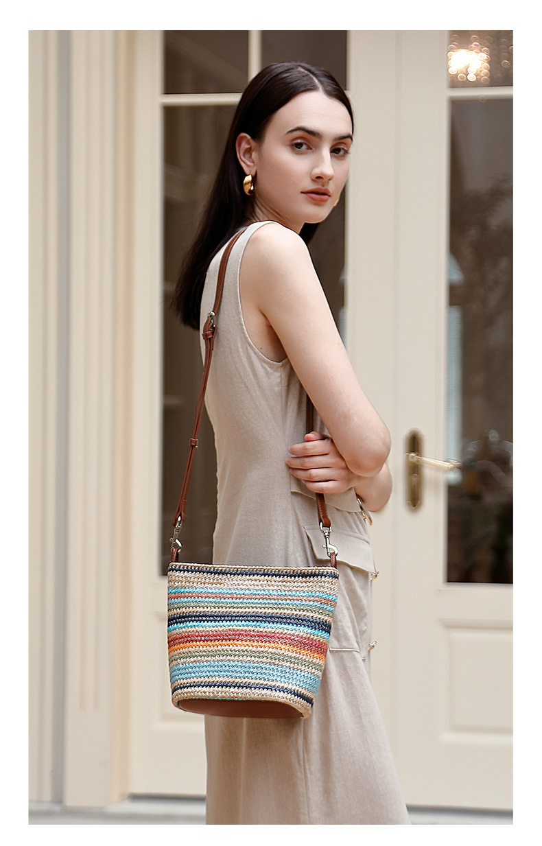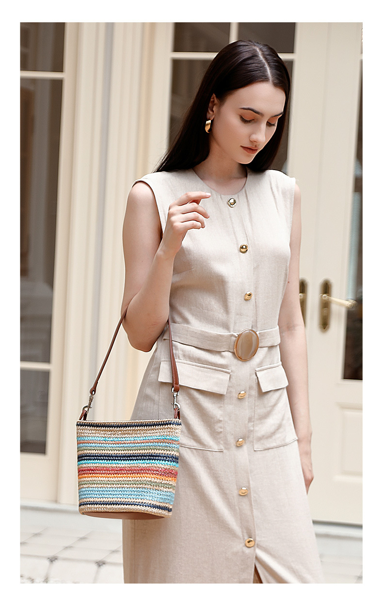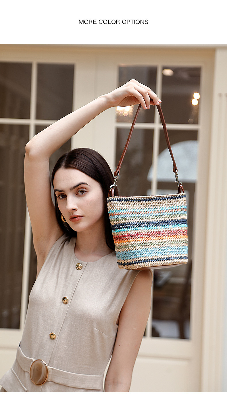 Chiếc túi mới cho mùa hè này có kiểu dáng thời trang với các mảng màu phối hợp độc đáo. Chất liệu chính từ sợi cây tự nhiên đan thủ công, điểm xuyến phần qu và viền bằng da mềm bền lâu. Thiết kế dáng túi lớn rất tiện lợi, chứa được nhiều đồ dùng cá nhân phù hợp cho việc đi làm hay dạo phố. Bạn có thể dùng như túi xách tay hoặc mang trên v. Sản phẩm kết hợp hài hòa vẻ đẹp mộc mạc và nét hiện đại. | Tên sản phẩm: Túi Xách Nữ Chất Liệu Da Bò Hàng Mùa Hè - Túi Ví Nữ | Mã sản phẩm: A6861 - Giá: 980.000đ | Mã nhà sản xuất: GUDEA-G03Hình ảnh sản phẩm