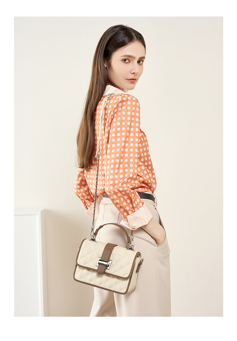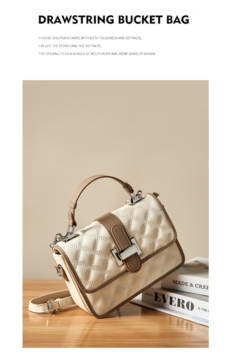 Túi xách kiểu mới, thiết kế hình thoi đan nổi bật. Dây đeo có thể điều chỉnh, đeo chéo người tiện lợi. Chất liệu bằng da thật, cảm giác cầm mềm mại và bền chắc. Túi nhẹ nhàng, đựng vừa ví, điện thoại và một số vật dụng cá nhân. Phù hợp dùng khi đi chơi, đi làm hay dự tiệc. Là món quà tặng ý nghĩa cho người thân, bạn bè trong những dịp đặc biệt. | Tên sản phẩm: Túi Xách Nữ Chất Liệu Da Bò Kẻ Caro Kẻ Caro - Túi Ví Nữ | Mã sản phẩm: A6920 - Giá: 1.190.000đ | Mã nhà sản xuất: GUDEA-G04Hình ảnh sản phẩm
