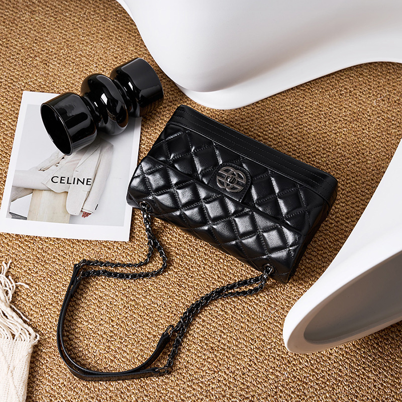 Túi xách nữ dáng vuông nhỏ, được làm từ chất da bò tự nhiên mềm mại và bền đẹp. Kiểu dáng kết hợp khóa xích và qu đeo v linh hoạt, giúp bạn dễ dàng phối đồ và mang theo trong nhiều dịp. Bề mặt túi điểm xuyết họa tiết hình thoi tinh tế, tăng thêm phần nổi bật. Đây là mẫu túi thiết kế mới, phù hợp để đựng các vật dụng cá nhân cần thiết mỗi ngày. | Tên sản phẩm: Túi Xách Nữ Chất Liệu Da Bò Kẻ Caro Kẻ Caro - Túi Ví Nữ | Mã sản phẩm: A6946 - Giá: 1.350.000đ | Mã nhà sản xuất: GUDEA-G04Hình ảnh sản phẩm