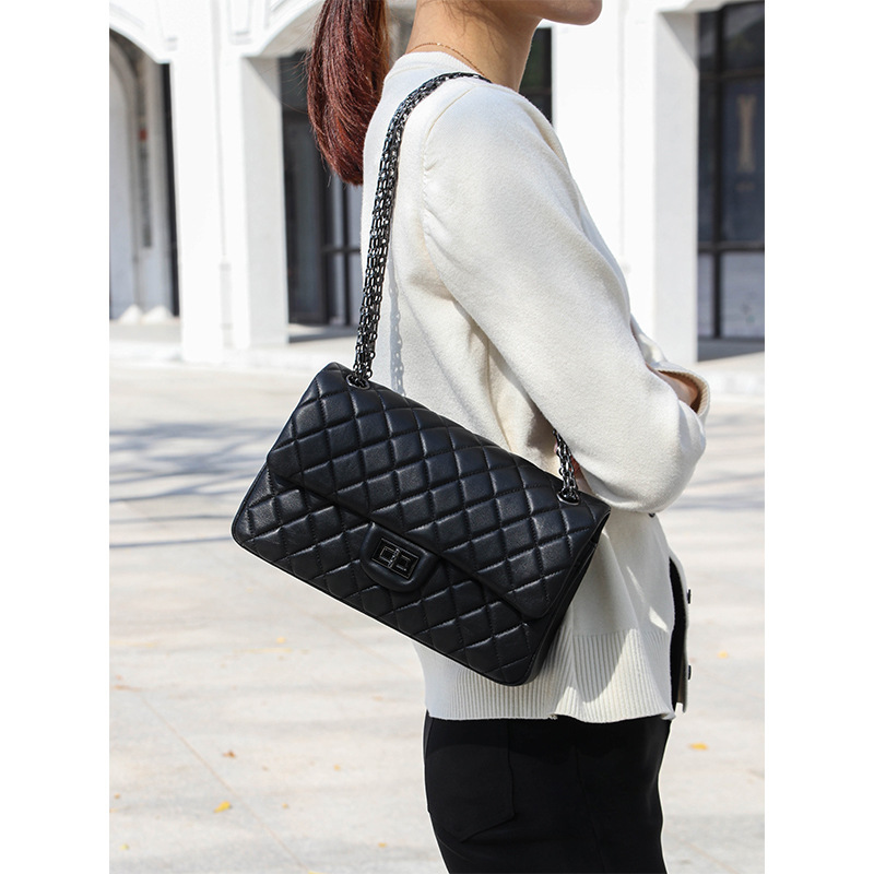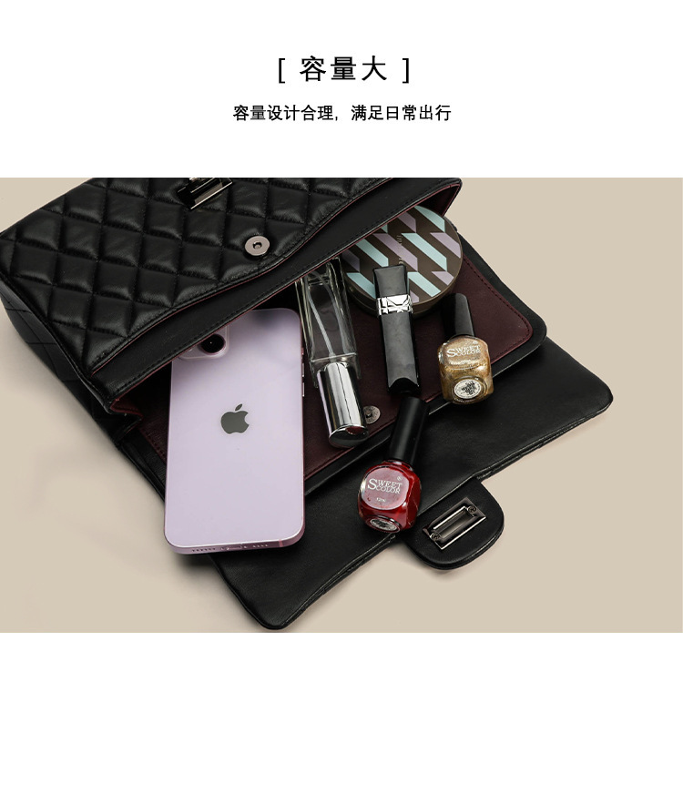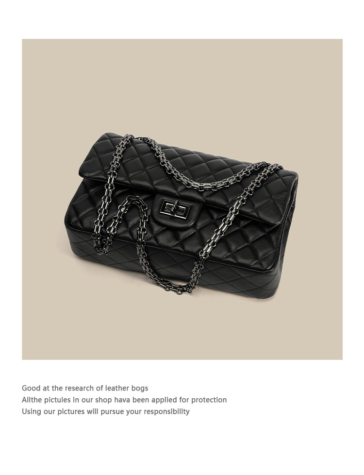 Chiếc túi xách này được làm từ chất liệu da mềm mịn, có màu đen dễ phối đồ. Kiểu dáng túi đeo chéo hoặc xách tay thanh lịch, điểm nhấn là họa tiết hình thoi nổi bật cùng dây xích chắc chắn. Bên trong túi đủ rộng để đựng các vật dụng cá nhân cần thiết như ví, điện thoại. Bạn có thể điều chỉnh dây xích để đeo theo nhiều cách khác nhau, phù hợp cho nhiều dịp sử dụng. | Tên sản phẩm: Túi Đeo Vai Nữ Chất Liệu Da Bò Kẻ Caro Kẻ Caro - Túi Ví Nữ | Mã sản phẩm: A6964 - Giá: 1.350.000đ | Mã nhà sản xuất: GUDLE-G04Hình ảnh sản phẩm