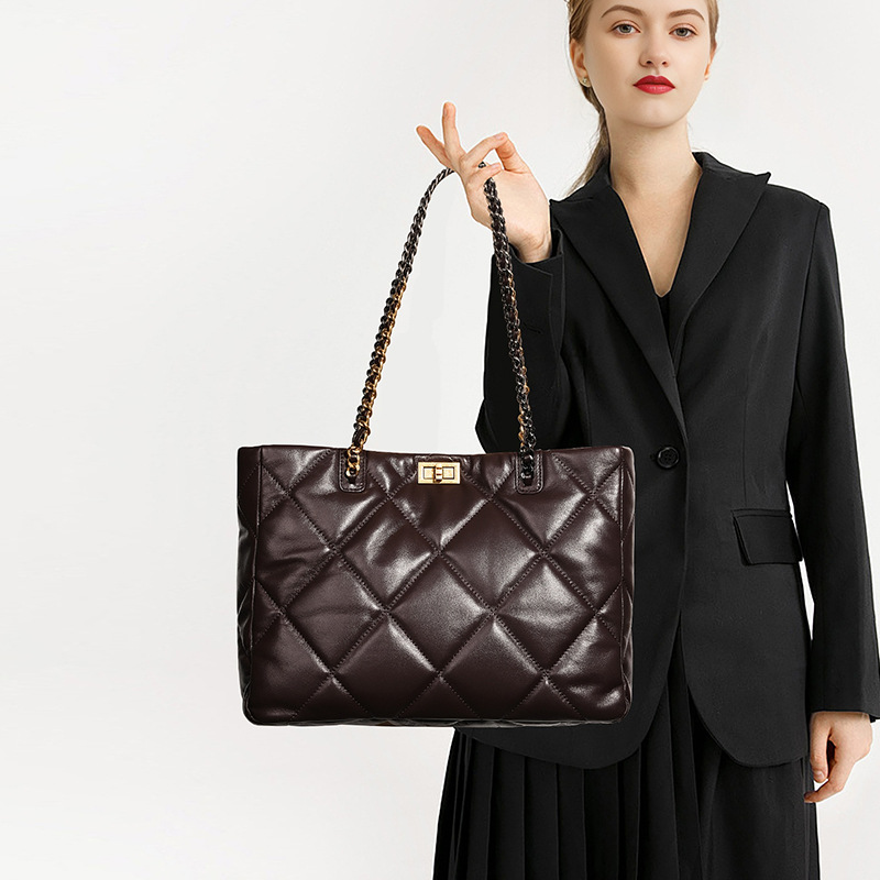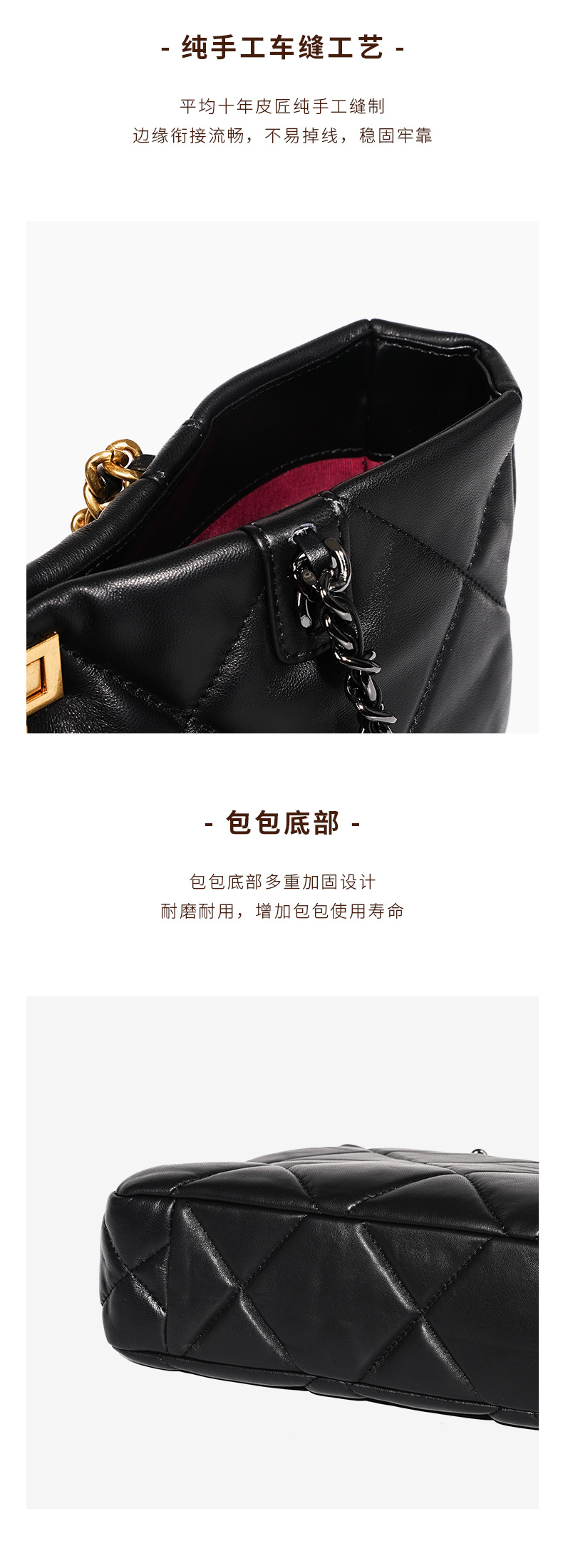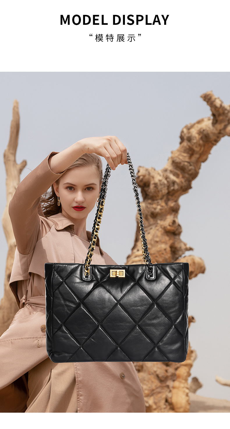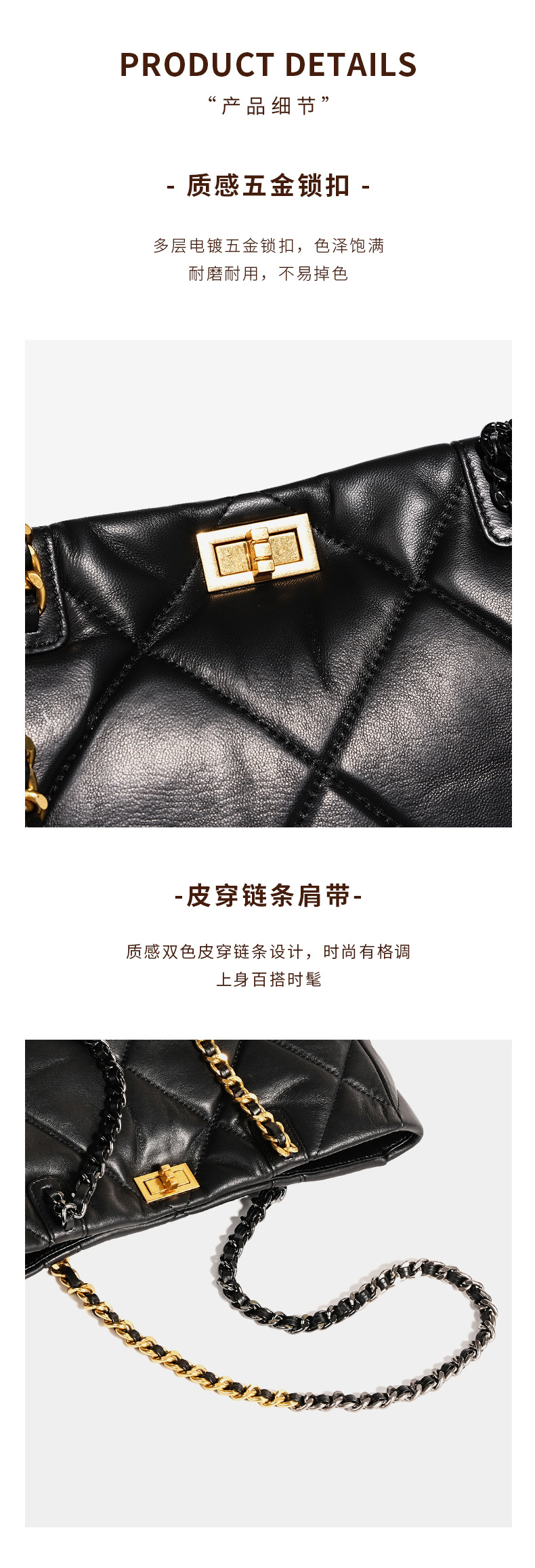 Túi xách nữ dáng túi đeo chéo, thiết kế theo phong cách thanh lịch nhẹ nhàng. Sản phẩm có kiểu dáng họa tiết hình thoi đặc trưng kết hợp cùng dây đeo chuỗi vòng. Bên trong túi rộng rãi, đựng được nhiều vật dụng cá nhân cần thiết. Chất liệu da thật mang đến cảm giác mềm mại và bền bỉ. Có thể đeo trên v hoặc xách tay một cách dễ dàng, phù hợp cho nhiều dịp sử dụng khác nhau. | Tên sản phẩm: Túi Đeo Vai Nữ Chất Liệu Da Bò Kẻ Caro Kẻ Caro - Túi Ví Nữ | Mã sản phẩm: A6968 - Giá: 1.900.000đ | Mã nhà sản xuất: GUDLE-G05Hình ảnh sản phẩm