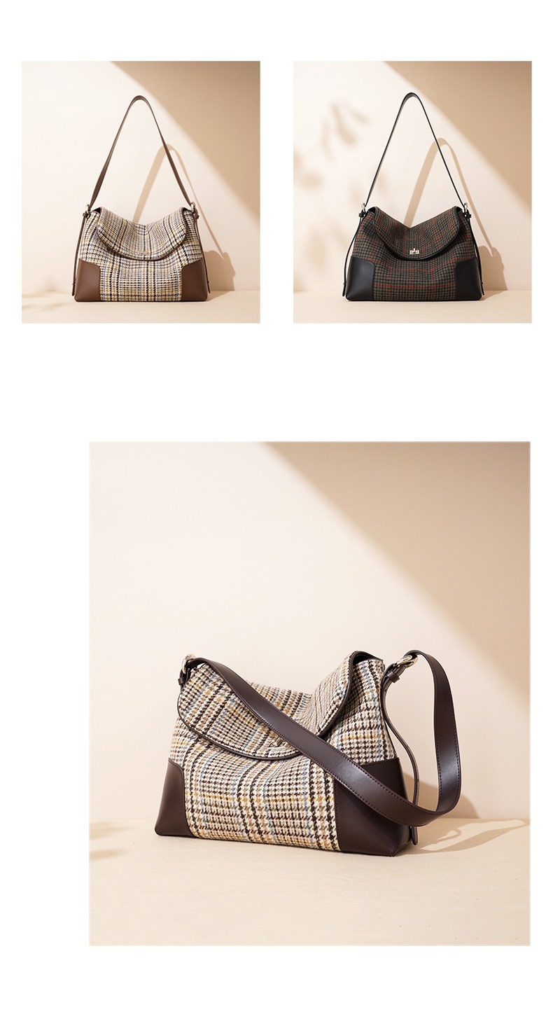 Chiếc túi xách tay dành cho nữ với họa tiết caro đặc trưng, được làm từ chất liệu len dệt mềm mại kết hợp điểm xuyến da bò tự nhiên ở phần qu đeo. Kiểu dáng túi đeo chéo một v hoặc khoác dưới cánh tay, mang phong cách trẻ trung nhưng vẫn rất điềm đạm. Thiết kế có không gian rộng rãi, giúp bạn sắp xếp gọn gàng các vật dụng hằng ngày như ví, điện thoại và một số món đồ cá nhân. Rất phù hợp để sử dụng khi đi làm, đi chơi hoặc dạo phố. | Tên sản phẩm: Túi Đeo Vai Nữ Chất Liệu Da Bò Kẻ Caro Kẻ Caro - Túi Ví Nữ | Mã sản phẩm: A7002 - Giá: 1.490.000đ | Mã nhà sản xuất: GUDLE-G04Hình ảnh sản phẩm