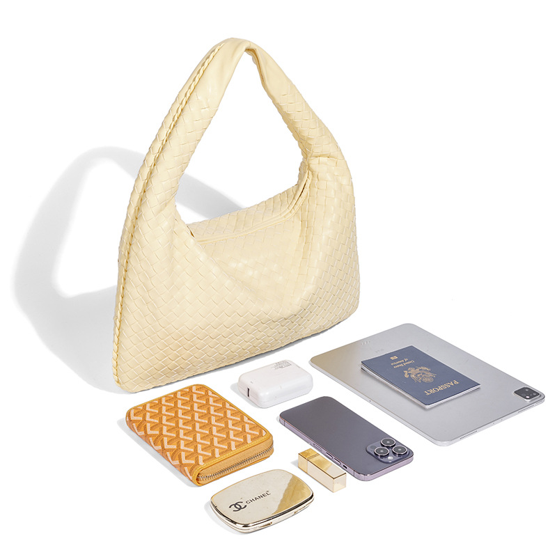 Túi xách nữ được làm hoàn toàn bằng phương pháp đan thủ công, tạo nên vẻ ngoài độc đáo và thoáng mát. Kiểu dáng kết hợp giữa đeo v, xách tay và cắp nách một cách linh hoạt. Thiết kế rộng rãi bên trong giúp bạn dễ dàng sắp xếp các vật dụng cá nhân cần thiết mỗi khi ra ngoài. Sản phẩm có phong cách trẻ trung, phù hợp để sử dụng trong nhiều dịp khác nhau, từ đi làm, đi chơi đến dạo phố. | Tên sản phẩm: Túi Xách Nữ Phong Cách Âu Mỹ - Túi Ví Nữ | Mã sản phẩm: A7062 - Giá: 780.000đ | Mã nhà sản xuất: GUD&-G02Hình ảnh sản phẩm