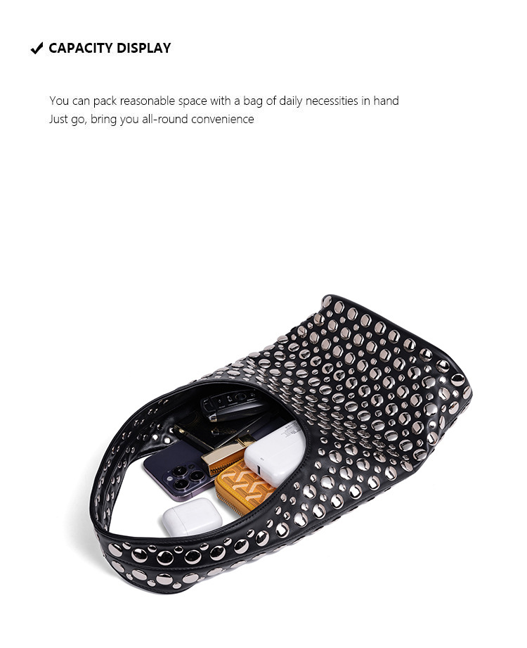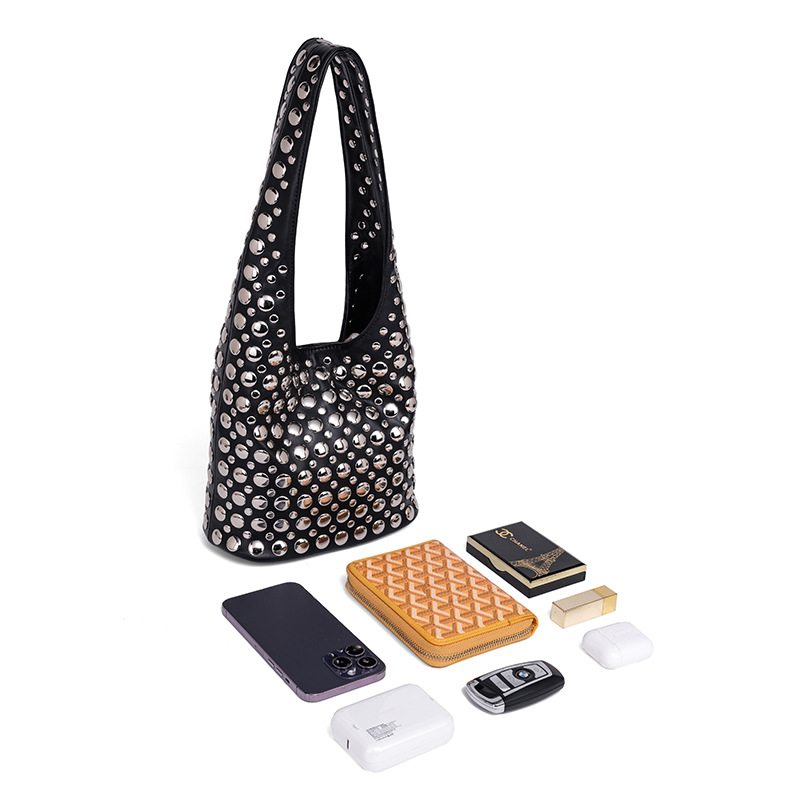 Túi xách một qu kiểu mới với họa tiết chấm bi kết hợp đinh tán cá tính. Thiết kế túi to tiện dụng, đựng được nhiều đồ dùng cá nhân như sổ tay, ô hay các vật dụng cần thiết khác. Kiểu dáng dễ phối đồ, phù hợp cho nhiều dịp sử dụng hằng ngày. Khi dùng, chỉ cần đeo túi lên v, điều chỉnh qu cho vừa vặn là có thể mang ra ngoài. | Tên sản phẩm: Túi Đeo Vai Nữ - Túi Ví Nữ | Mã sản phẩm: A7067 - Giá: 670.000đ | Mã nhà sản xuất: GUD&-G02Hình ảnh sản phẩm