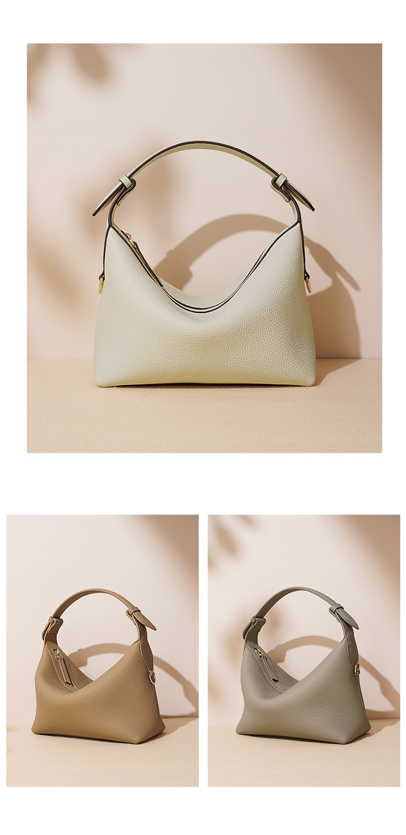 Túi được làm từ chất liệu da mềm, có kiểu dáng ôm gọn như chiếc bánh bao, dễ dàng mang dưới cánh tay hoặc khoác v. Thiết kế này rất phù hợp cho việc đi làm hay dạo phố hàng ngày. Bên trong túi rộng rãi, đựng vừa nhiều món đồ cần thiết như ví, điện thoại và các vật dụng cá nhân. Bạn có thể xách tay hoặc dùng dây dài để đeo chéo người một cách thoải mái và tiện lợi. | Tên sản phẩm: Túi Xách Nữ Hàng Mùa Xuân Thu Đông - Túi Ví Nữ | Mã sản phẩm: A7107 - Giá: 1.250.000đ | Mã nhà sản xuất: GUDEA-G04Hình ảnh sản phẩm