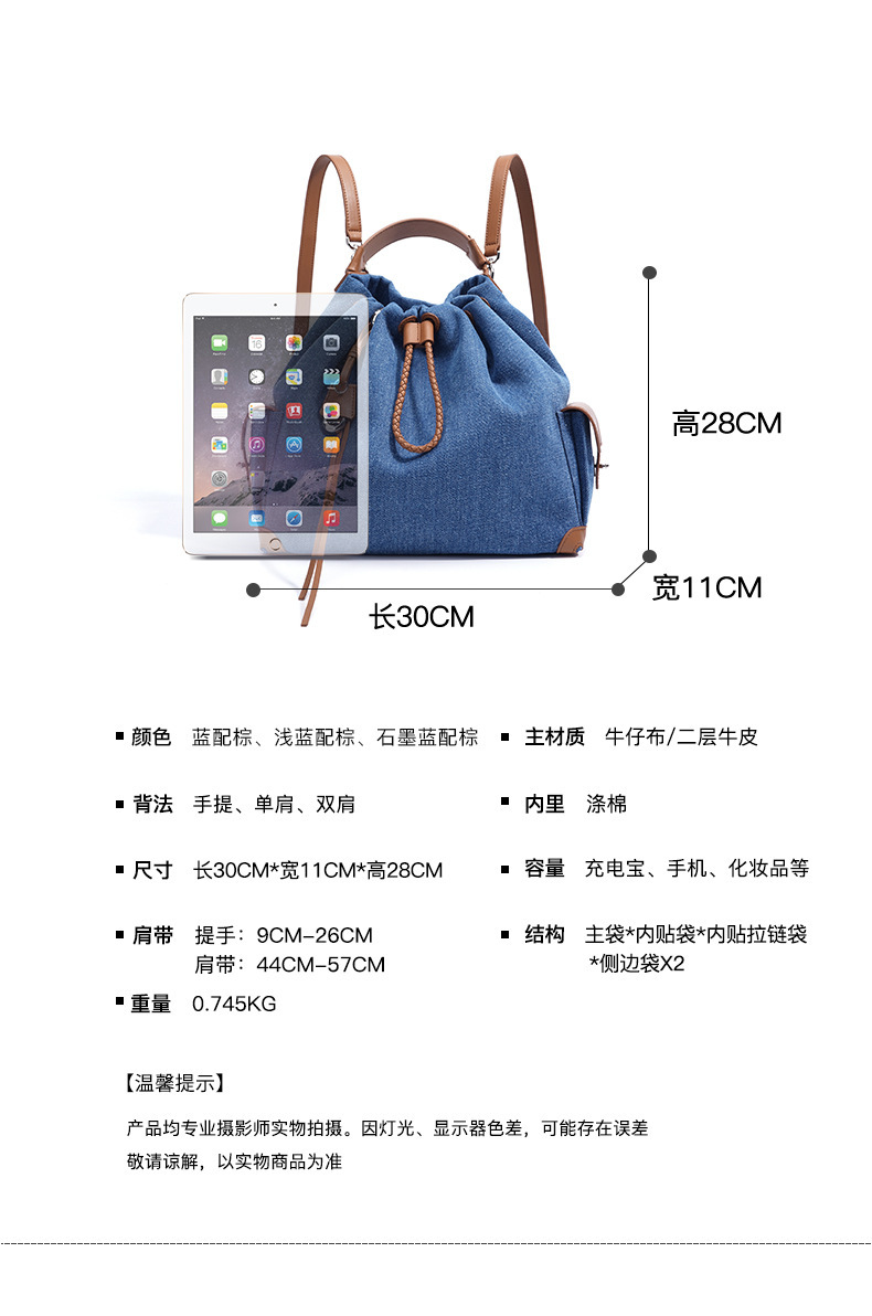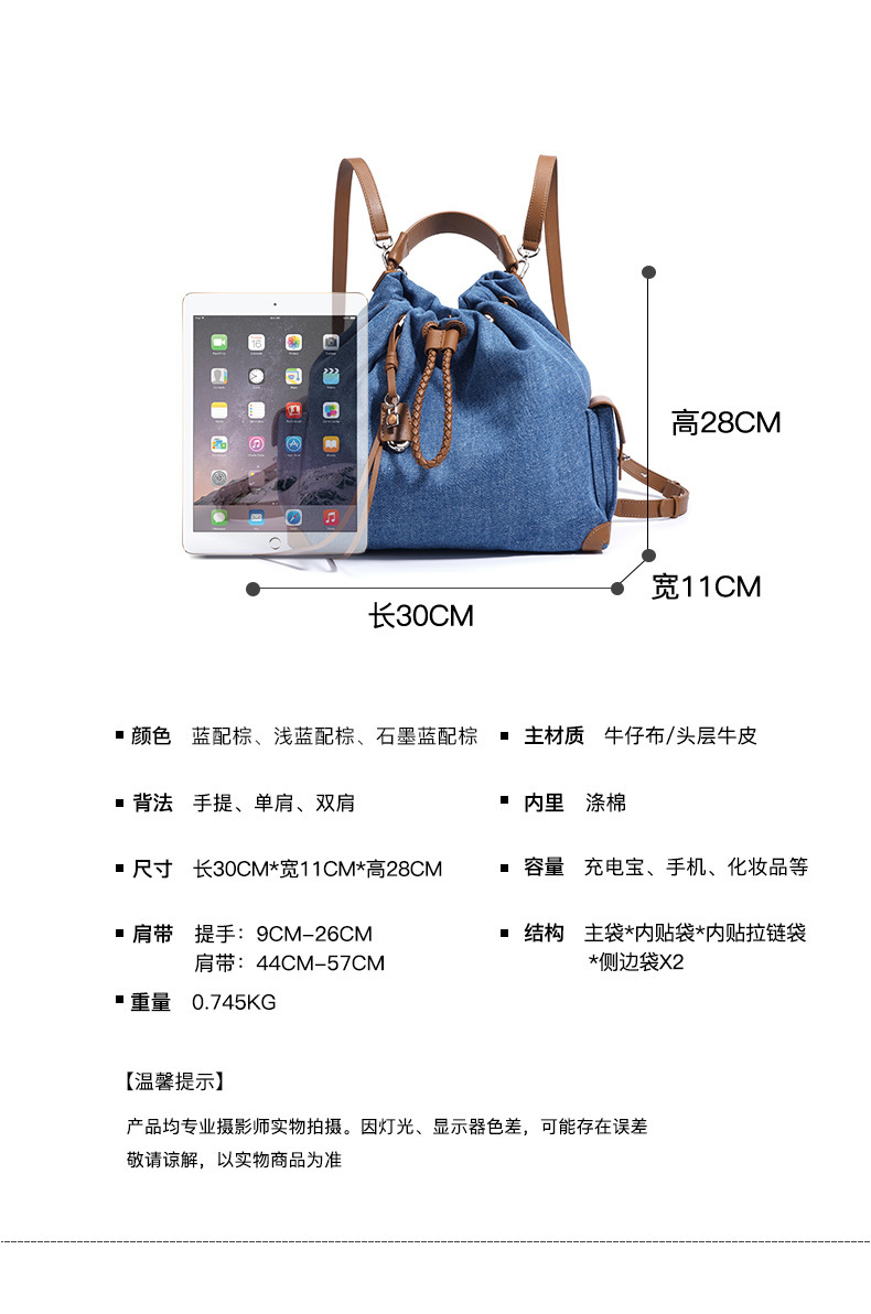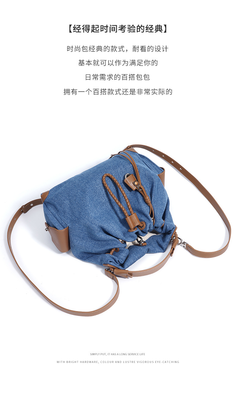 Túi được thiết kế với phong cách kết hợp nhiều mảng vải, tạo nên vẻ đẹp cổ điển mà vẫn hợp thời. Sản phẩm có hai cách đeo linh hoạt: làm túi đeo chéo hoặc ba lô. Với chất liệu vải bền chắc, túi có sức chứa lớn, rất phù hợp cho những chuyến đi chơi hay dạo phố vào mùa hè. Bạn chỉ cần kéo dây rút để đóng mở túi một cách dễ dàng và nhanh chóng. | Tên sản phẩm: Túi Đeo Vai Nữ Chất Liệu Jean Bò Hàng Mùa Hè Phục Cổ Cổ Điển - Túi Ví Nữ | Mã sản phẩm: A7207 - Giá: 1.520.000đ | Mã nhà sản xuất: GUDEA-G04Hình ảnh sản phẩm