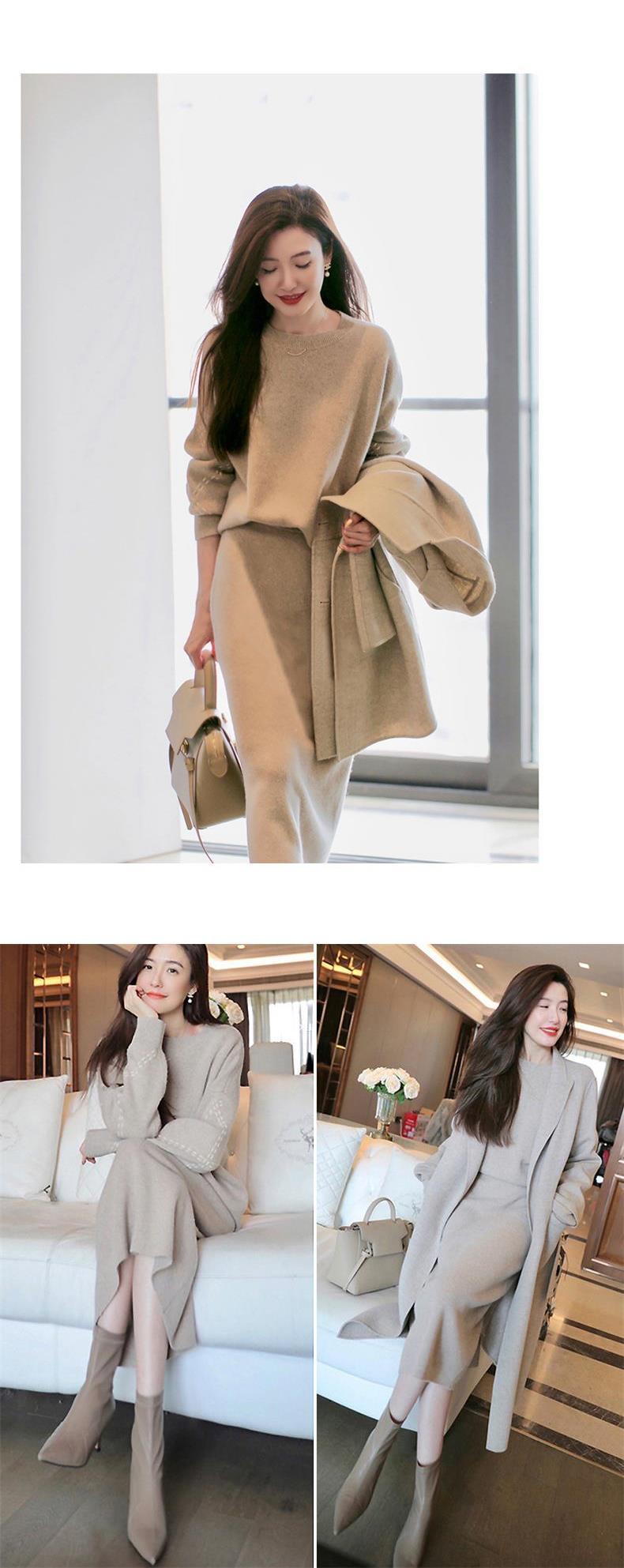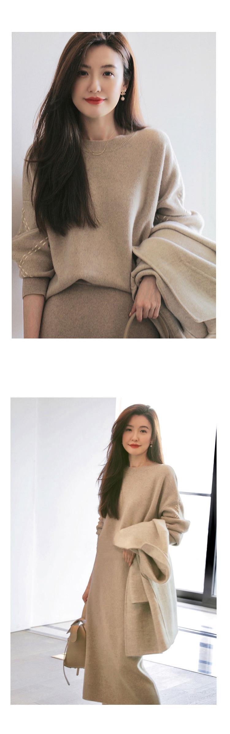 Bộ trang phục hai mảnh này gồm áo len và chân váy, mang đến vẻ ngoại hình nhẹ nhàng, nữ tính. Chất liệu dệt kim mềm mại giúp người mặc cảm thấy dễ chịu và ấm áp. Kiểu dáng kết hợp hài hòa giữa phần áo và chân váy, tạo nên một tổng thể cân đối. Sản phẩm phù hợp để mặc khi đi làm, gặp gỡ bạn bè hoặc trong những dịp thường ngày. Bạn có thể phối cùng giày cao gót hoặc giày đế bằng để hoàn thiện bộ trang phục. | Tên sản phẩm: Áo Len Nữ Áo Len Cả Bộ 2 Món Hàng Mùa Xuân Thu Đông - Thời Trang Nữ | Mã sản phẩm: a7214 - Giá: 720.000đ | Mã nhà sản xuất: ZHOUT-G02Hình ảnh sản phẩm